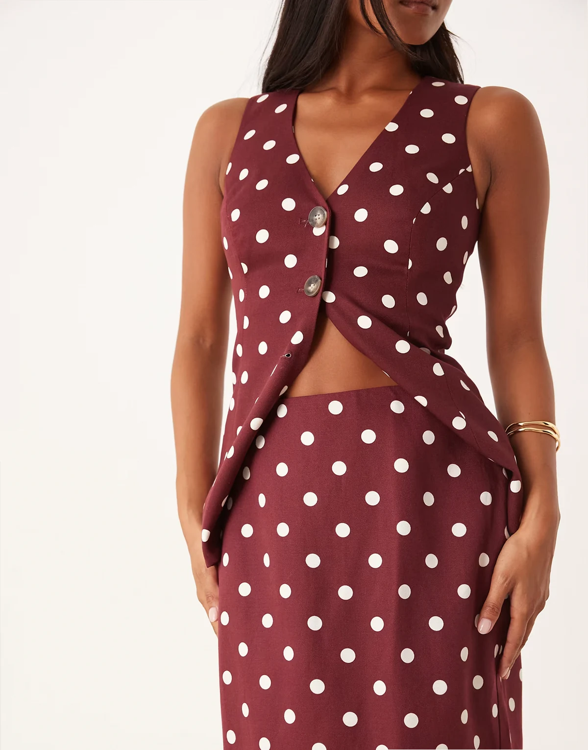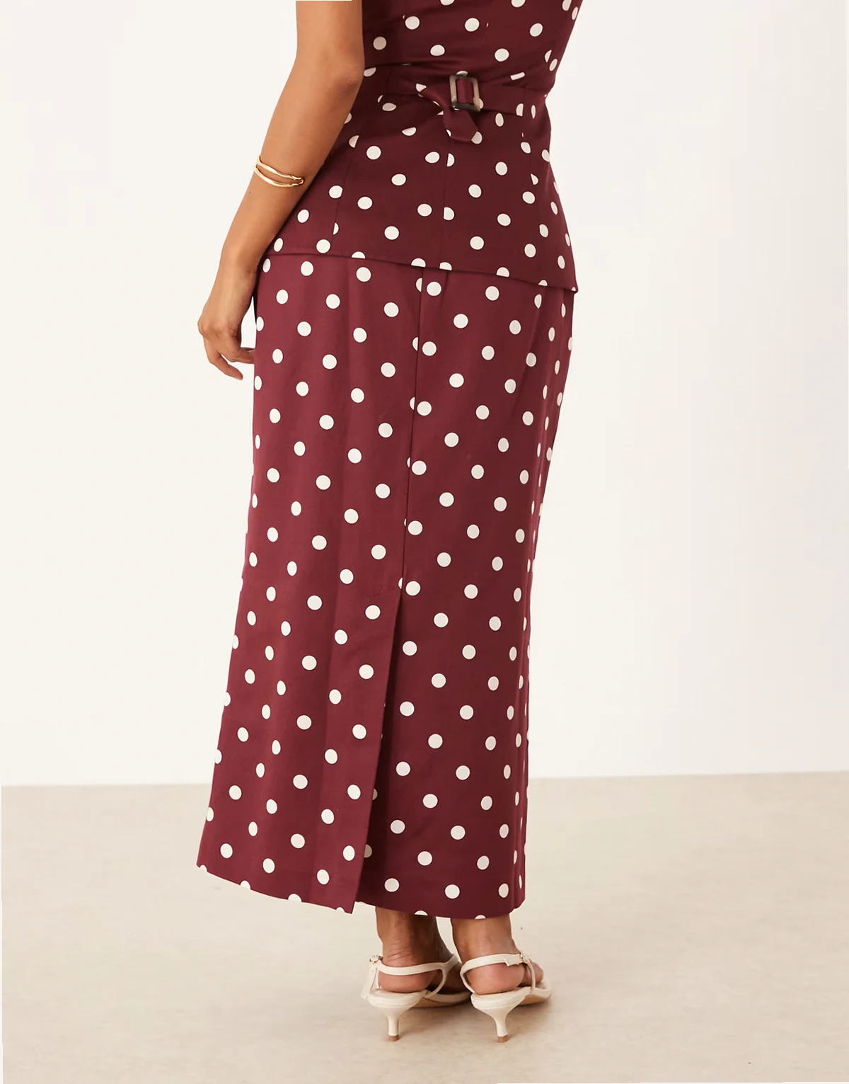 – Theta – Midirock mit braunem Punktemuster, Kombiteil
