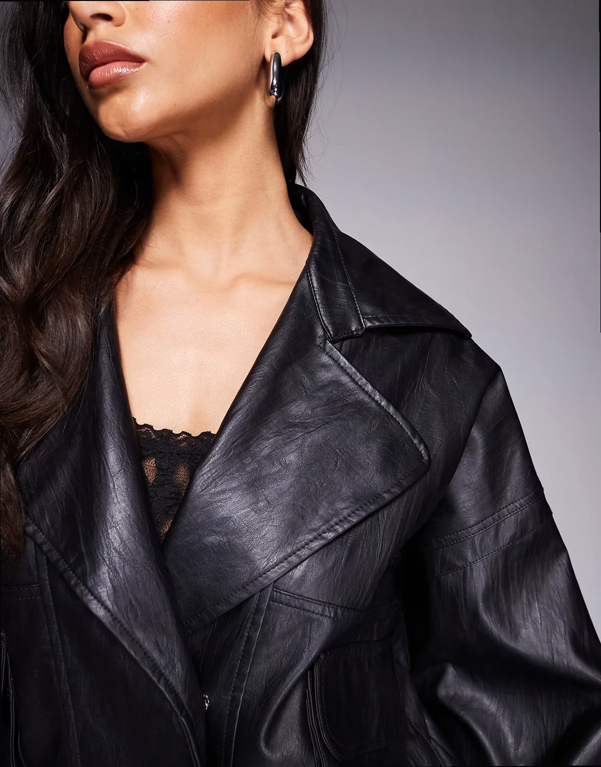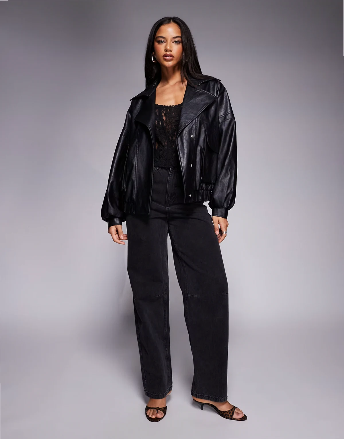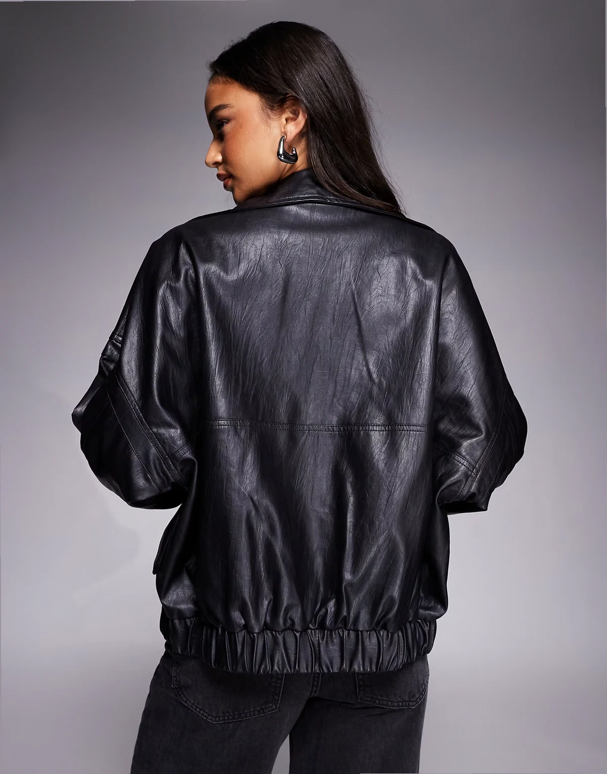 – Exklusive, strukturierte Oversize-Bomberjacke aus Kunstleder in Schwarz