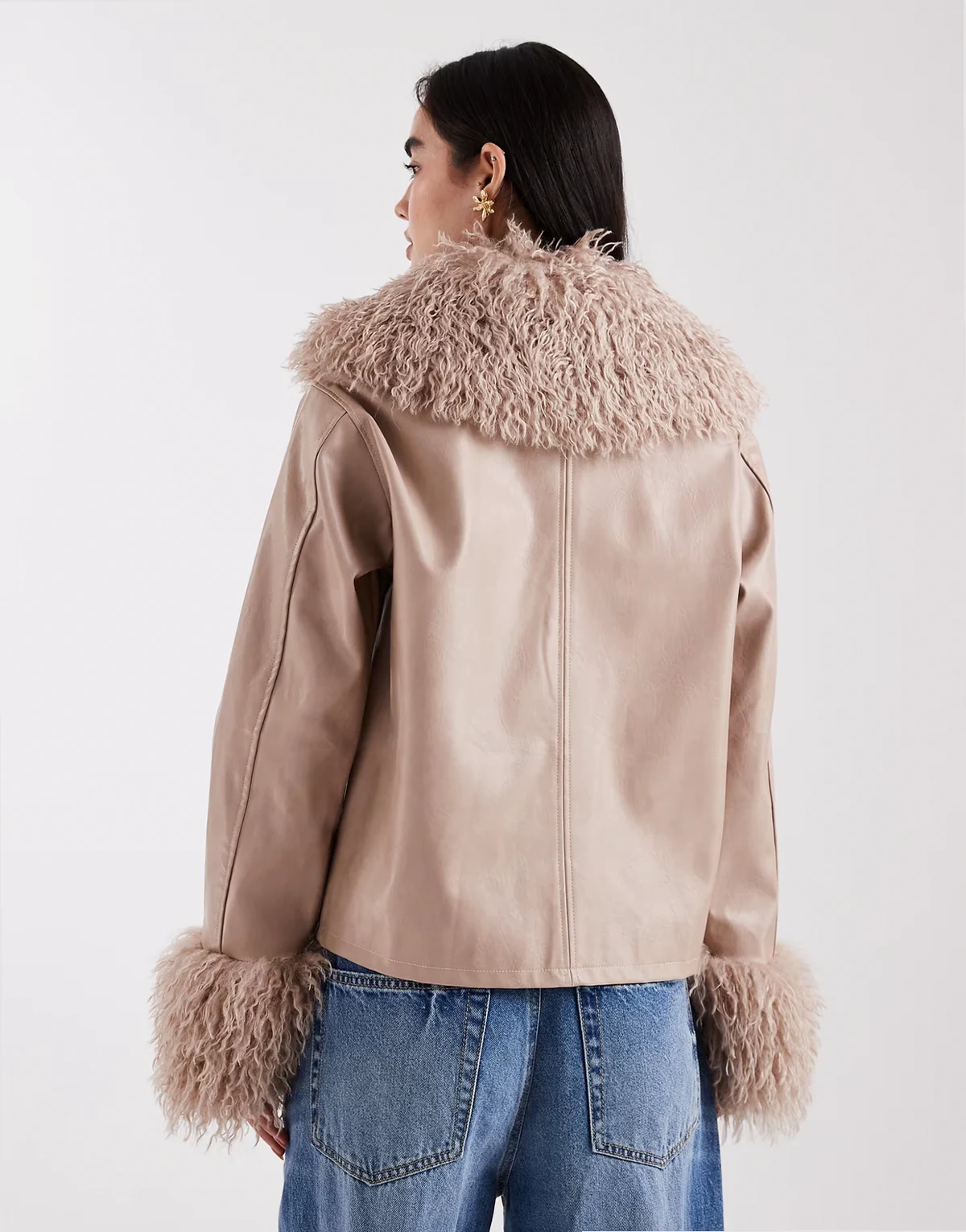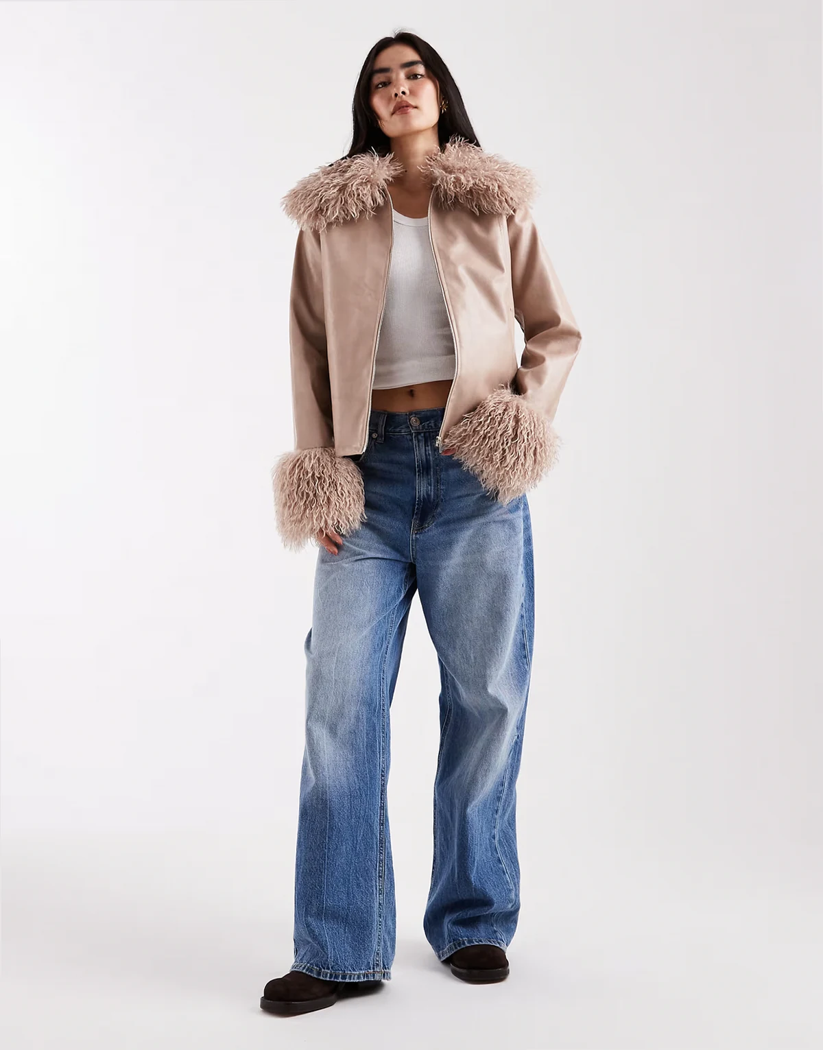 – Kastige Jacke mit Reißverschluss und Kunstpelzbesatz