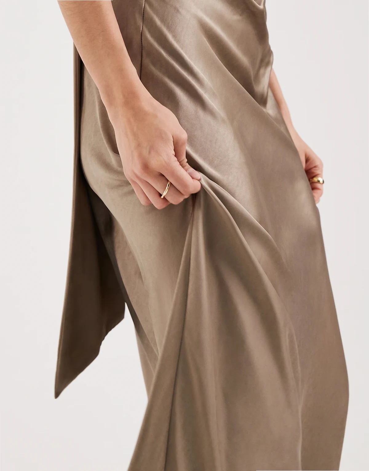 Satinähnliches Material: glänzend, drapiert und seidigglatt