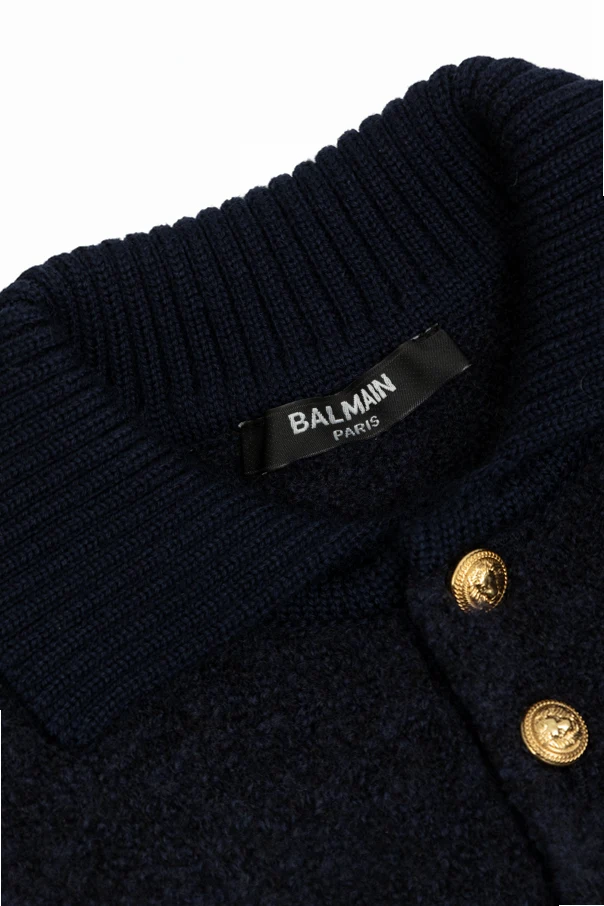 Goldene Knöpfe mit Gravur sind ein luxuriöses Detail und unverkennbares Markenzeichen von Balmain.