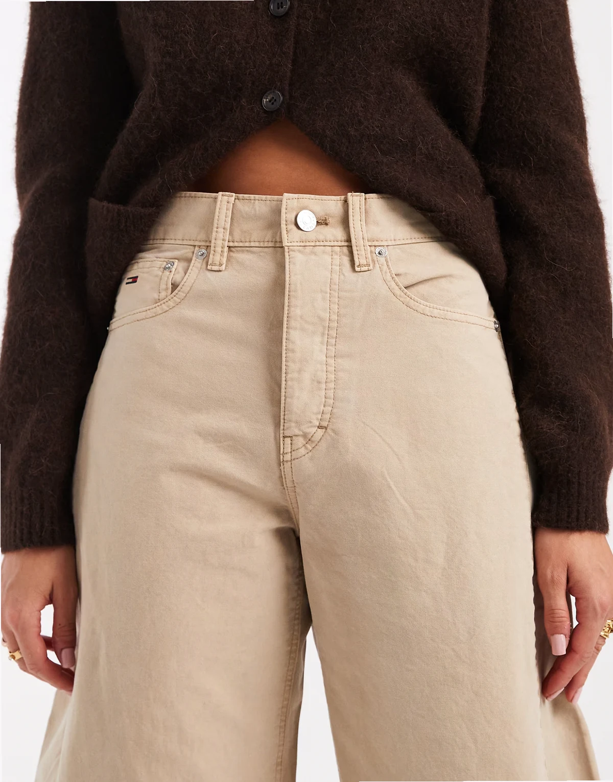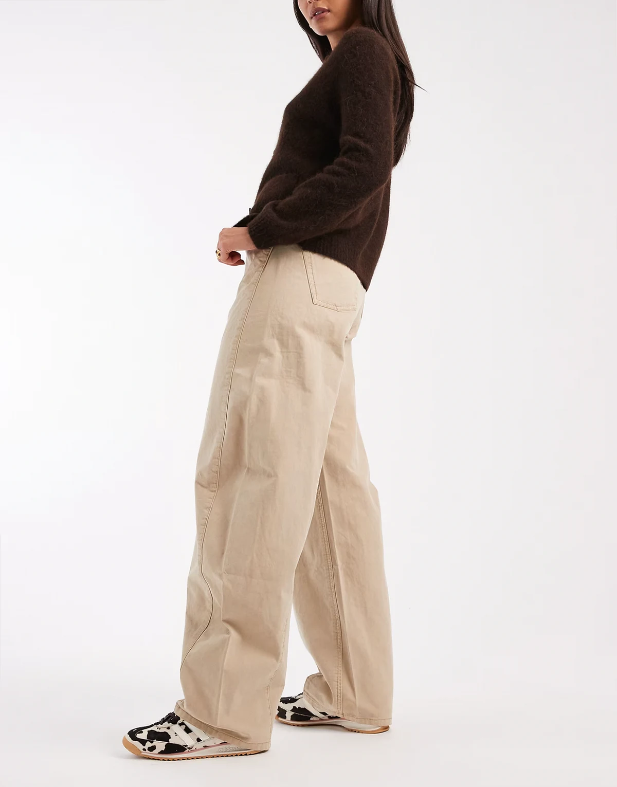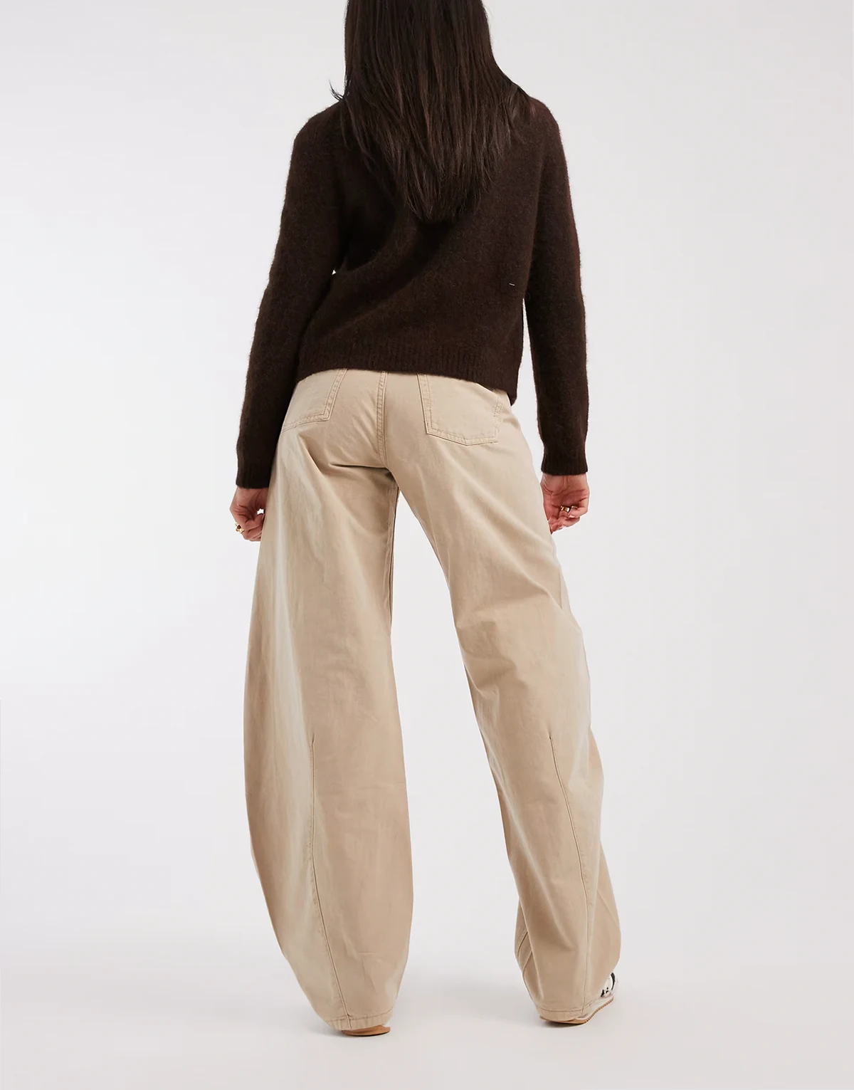 – Ella – Barrel-Jeans in Beige mit mittelhohem Bund