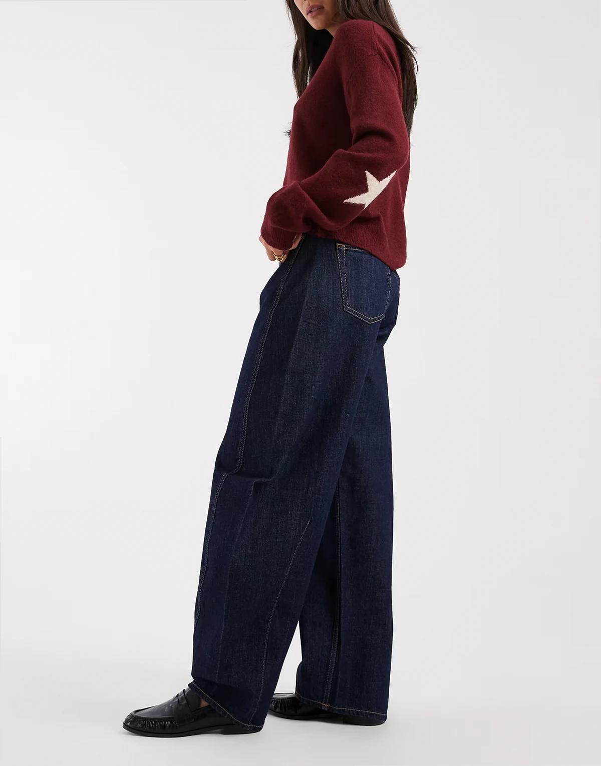 – Ella – Barrel-Jeans in dunkler Waschung mit mittelhohem Bund