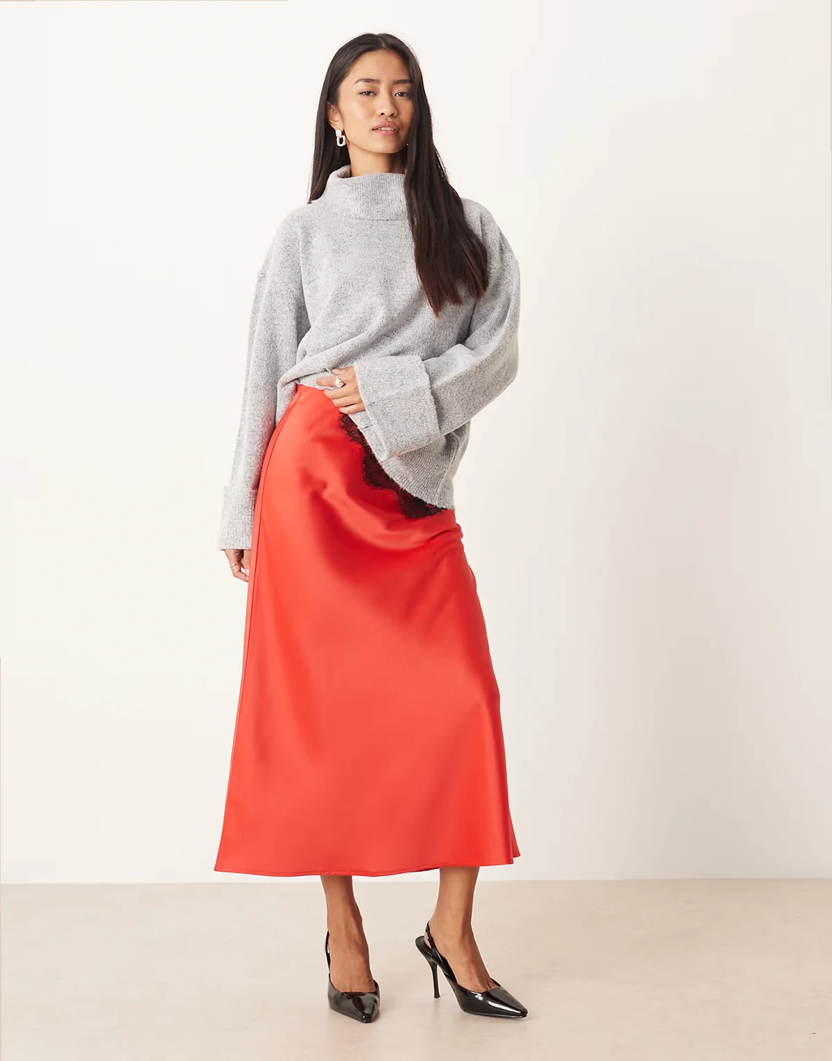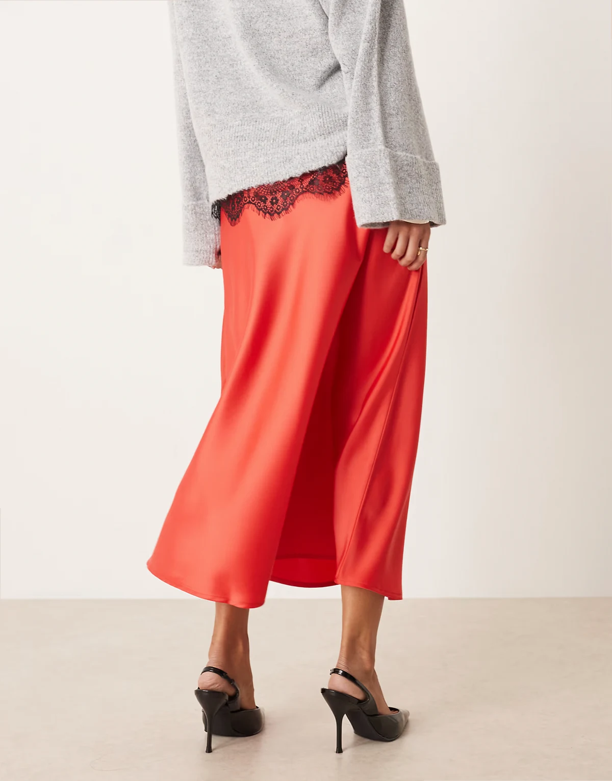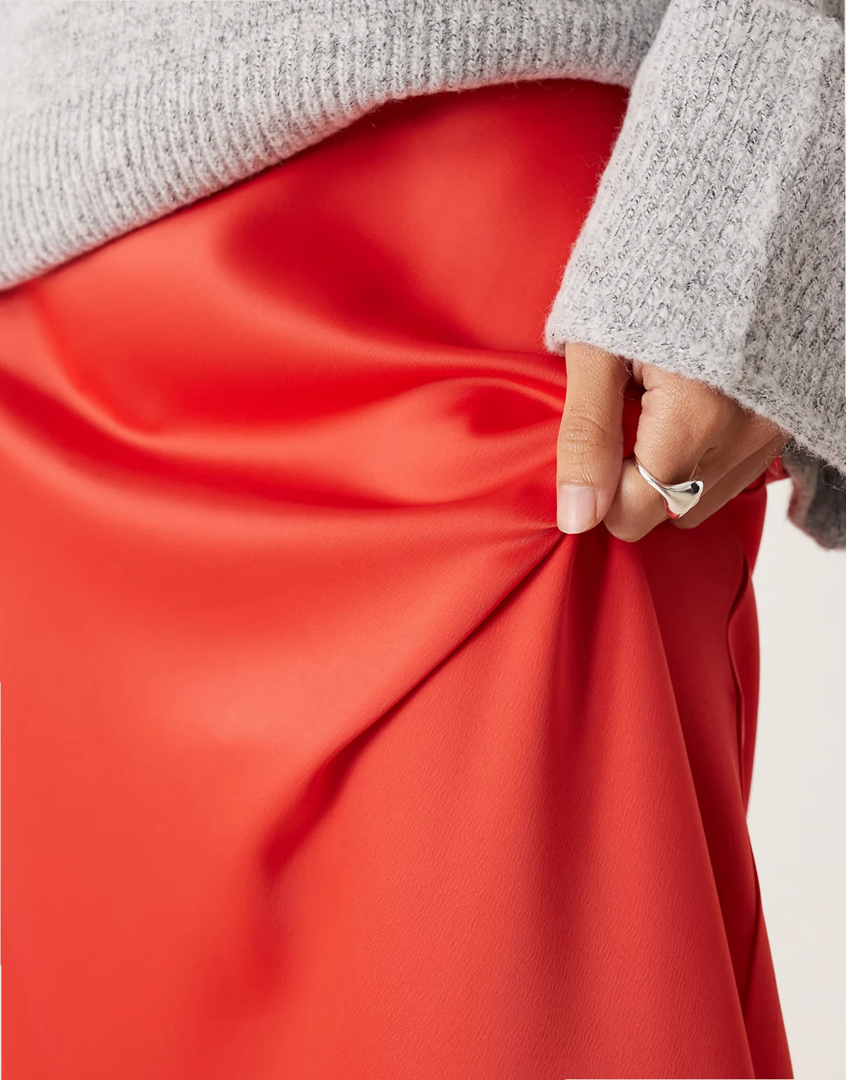 – Satin-Midirock in Weihnachtssternrot