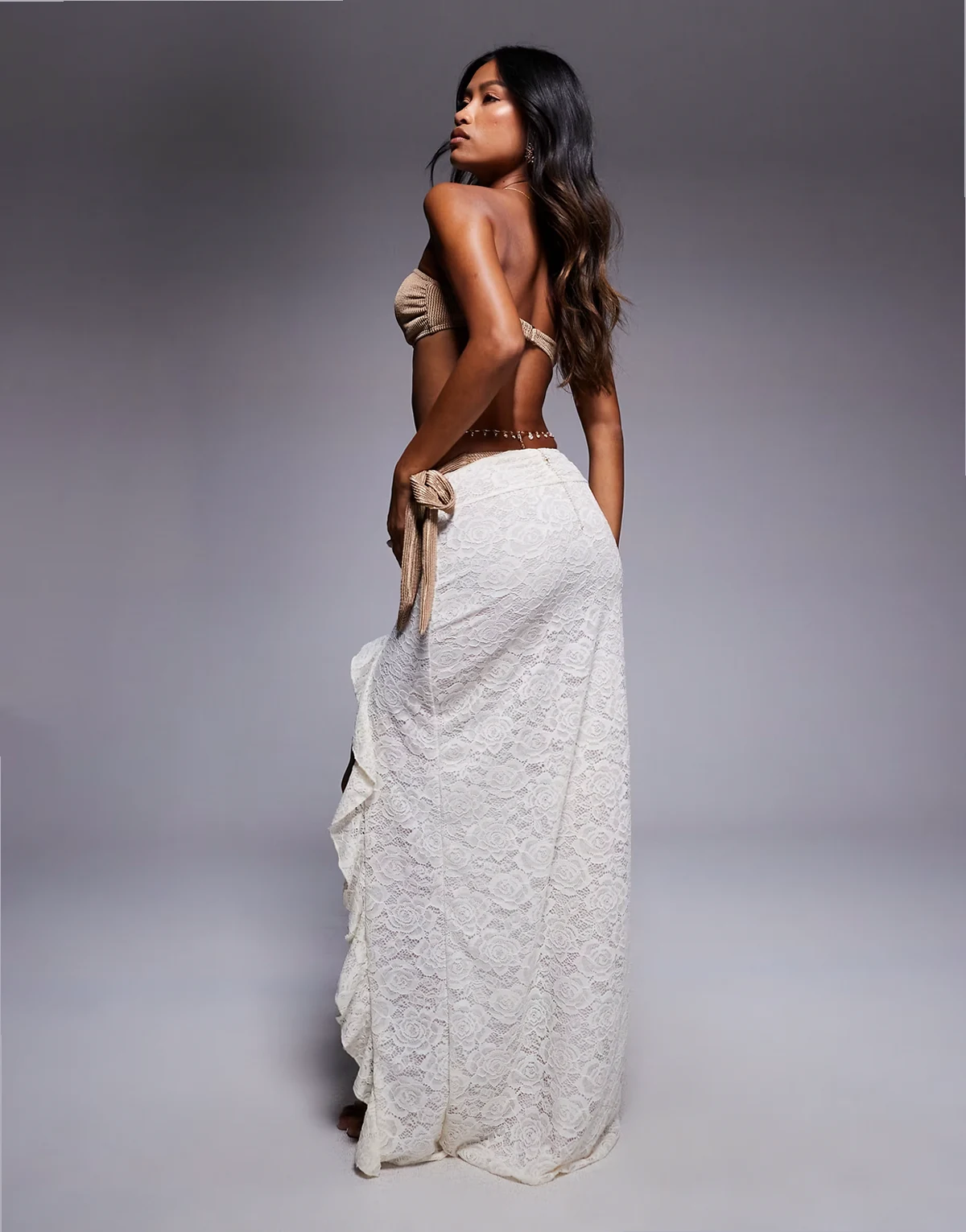 – Maxi-Strandrock aus Spitze in Cremeweiß mit Cut-out