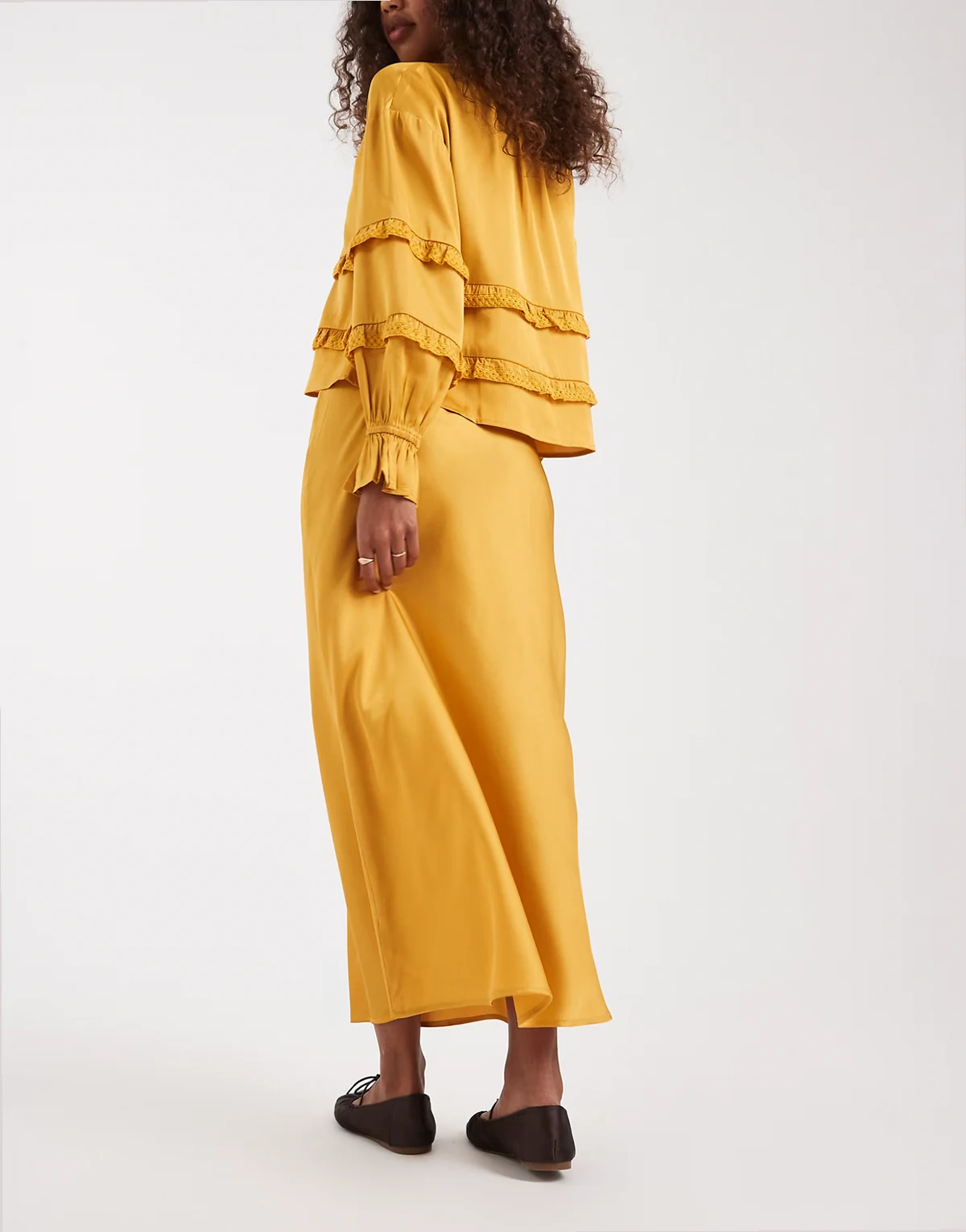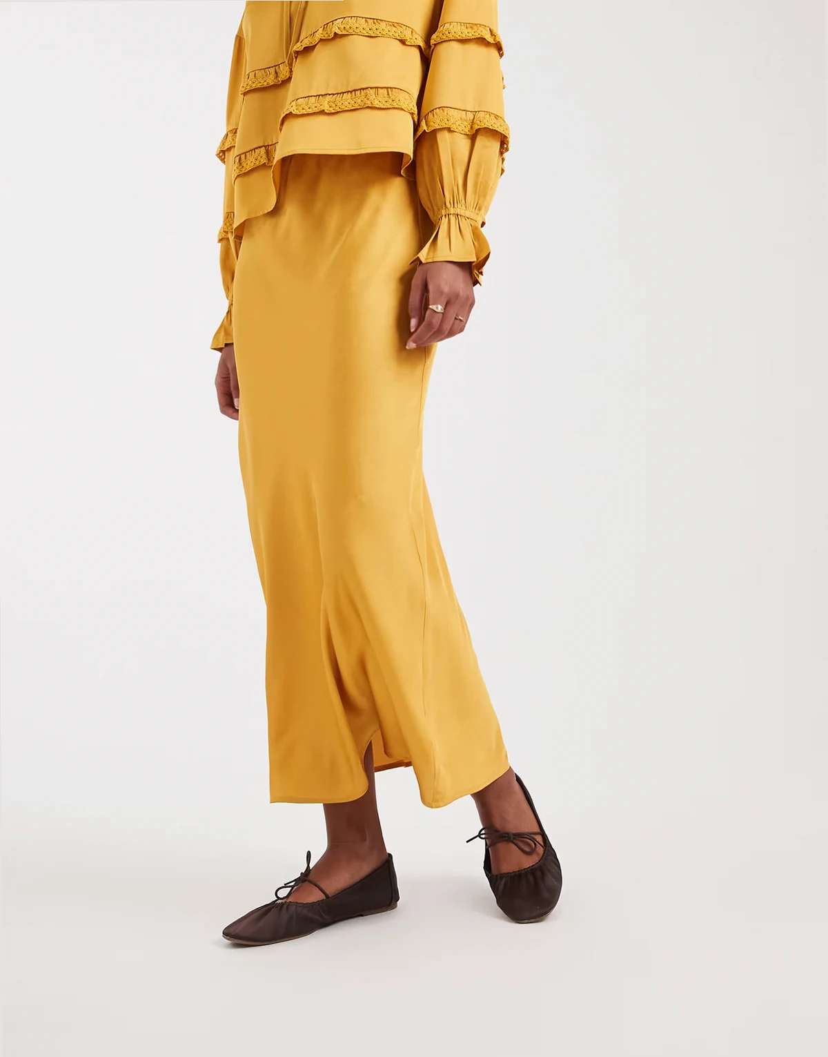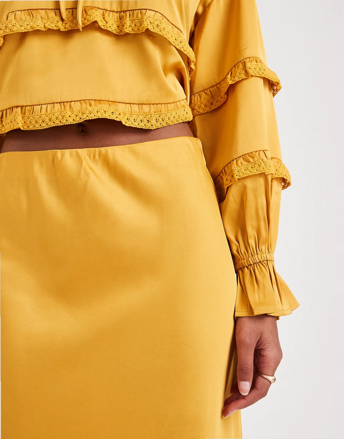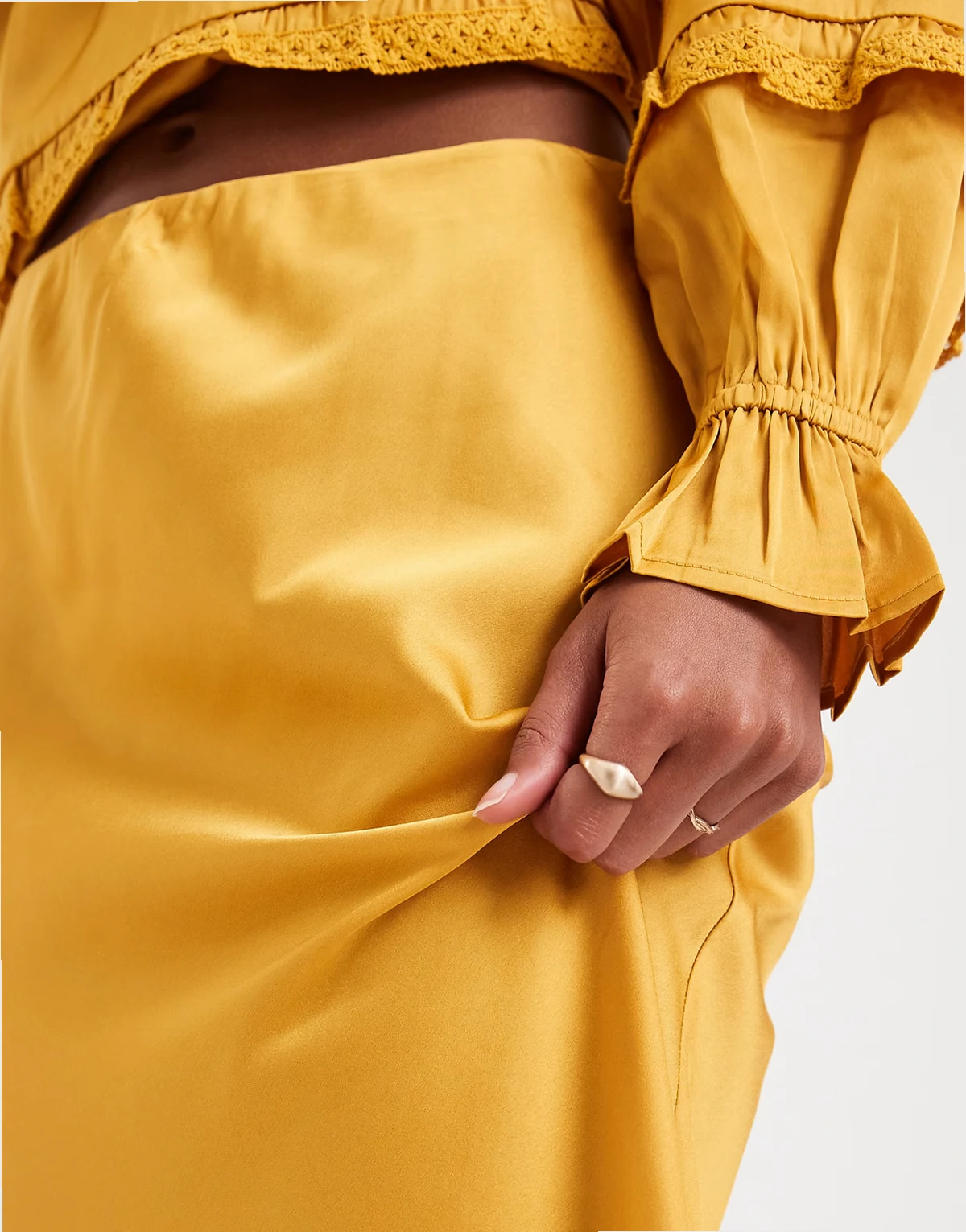 – Midaxi-Rock aus Satin in Goldbronze