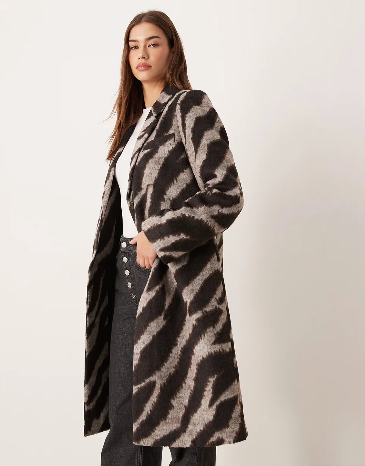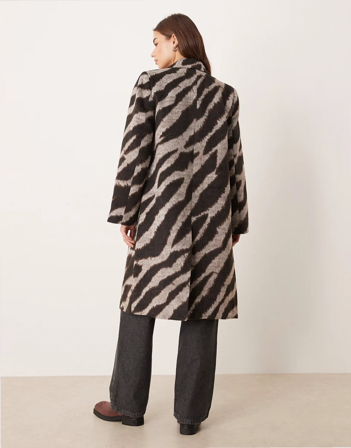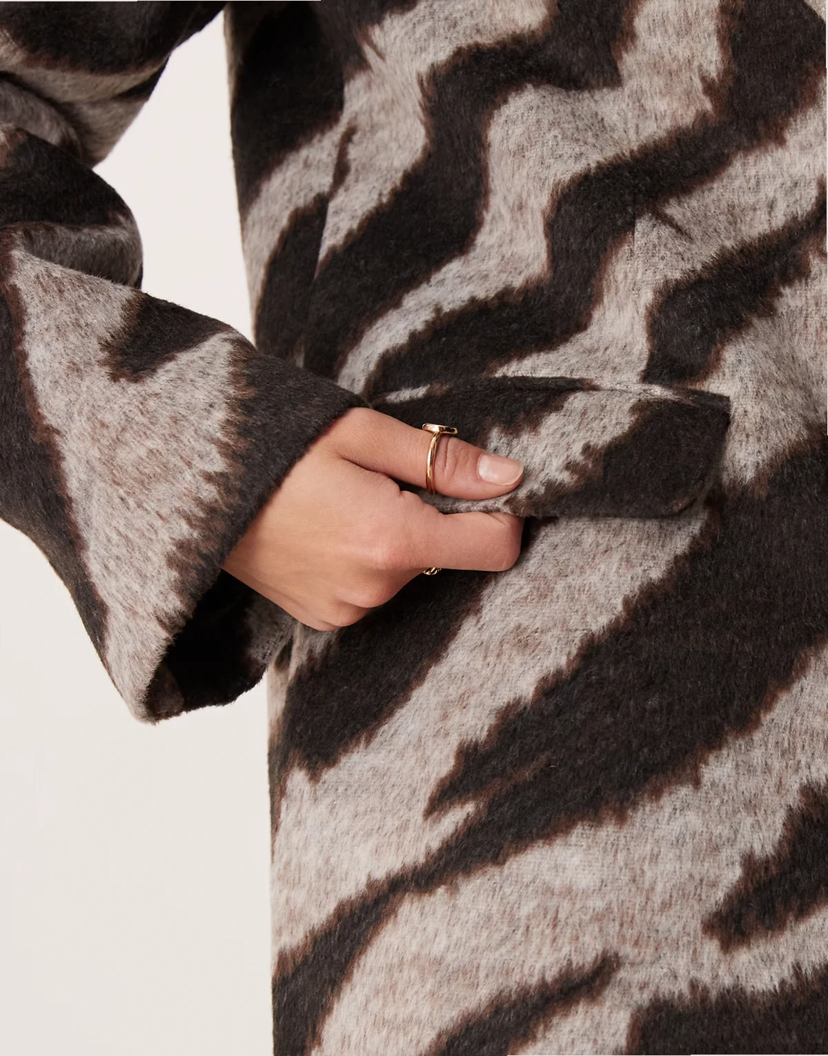 – Eleganter Mantel mit Zebramuster in Schwarz und Creme