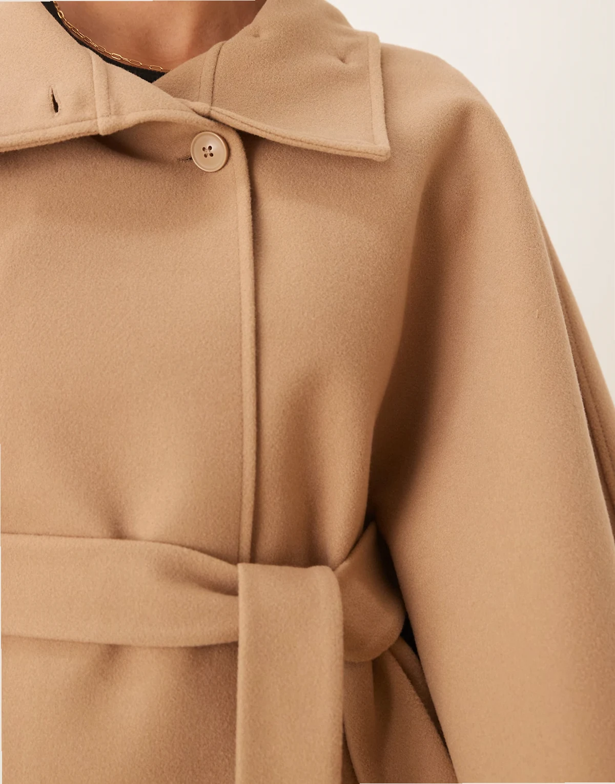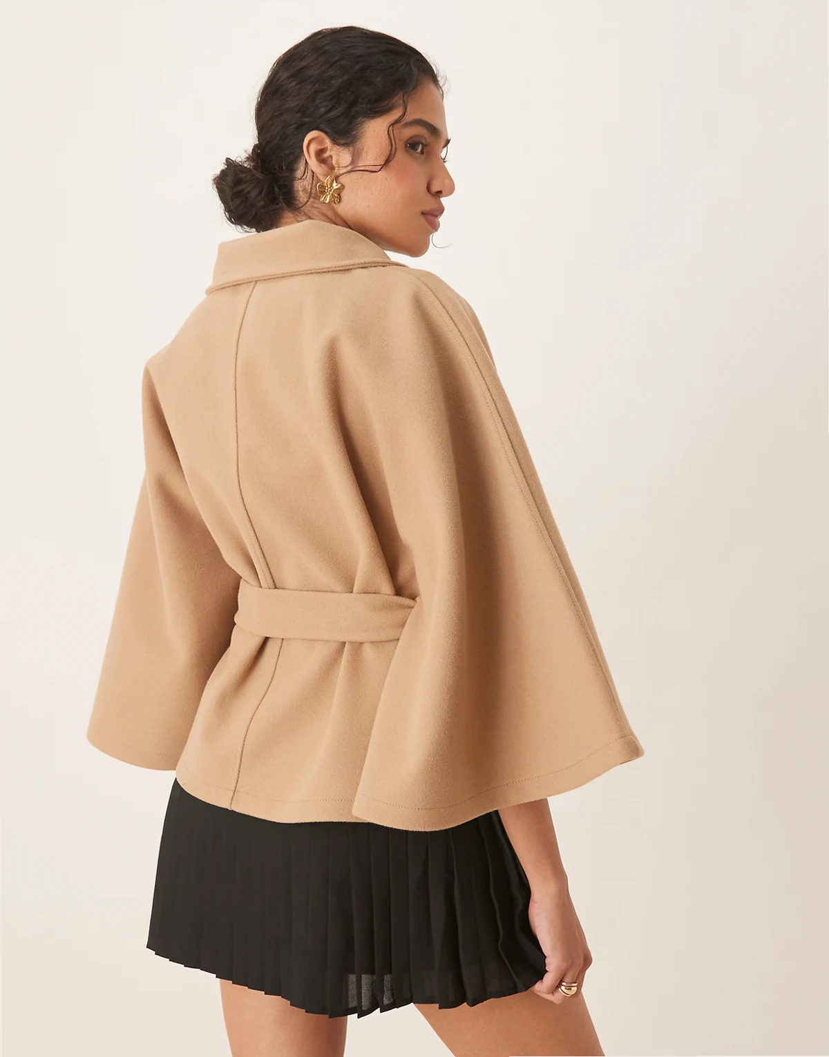 – Cape-Jacke in Beige mit Stehkragen und Bindegürtel