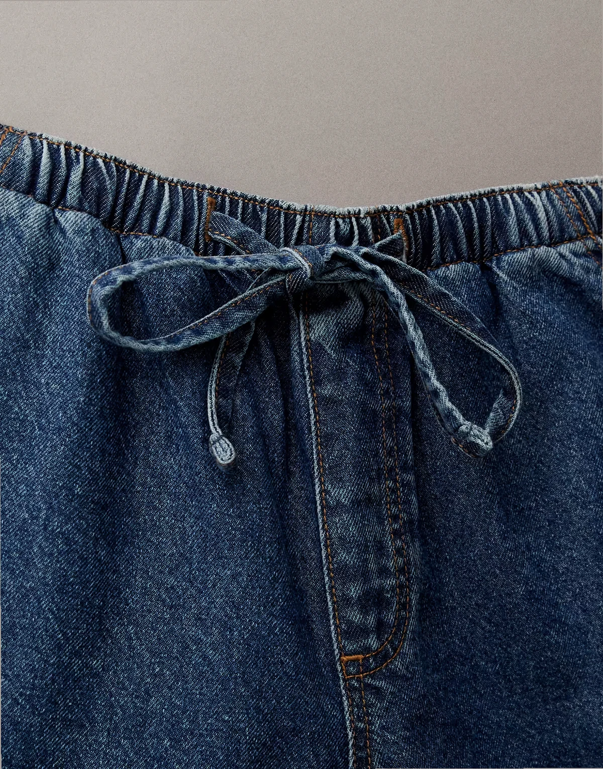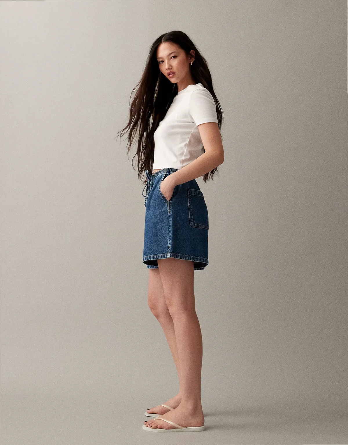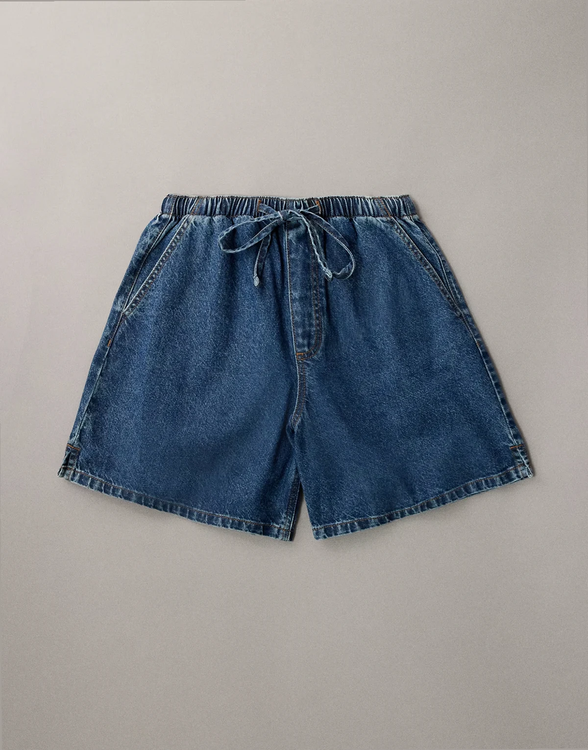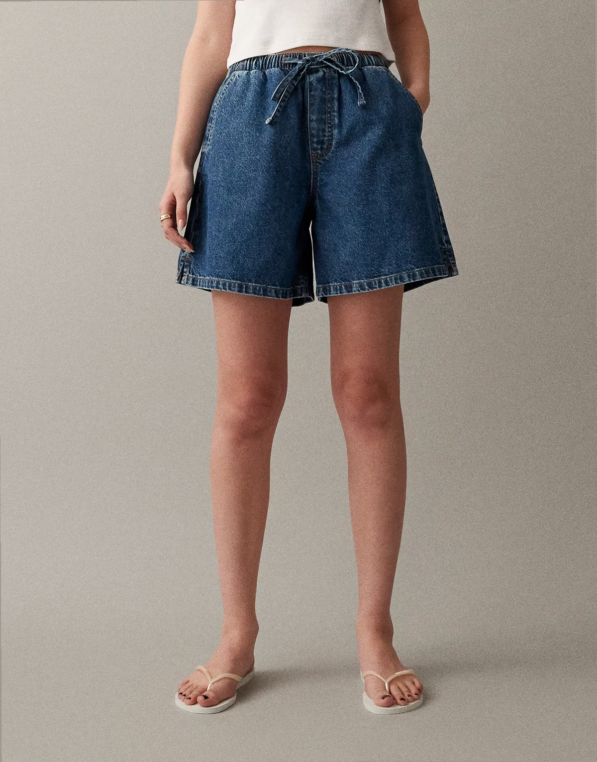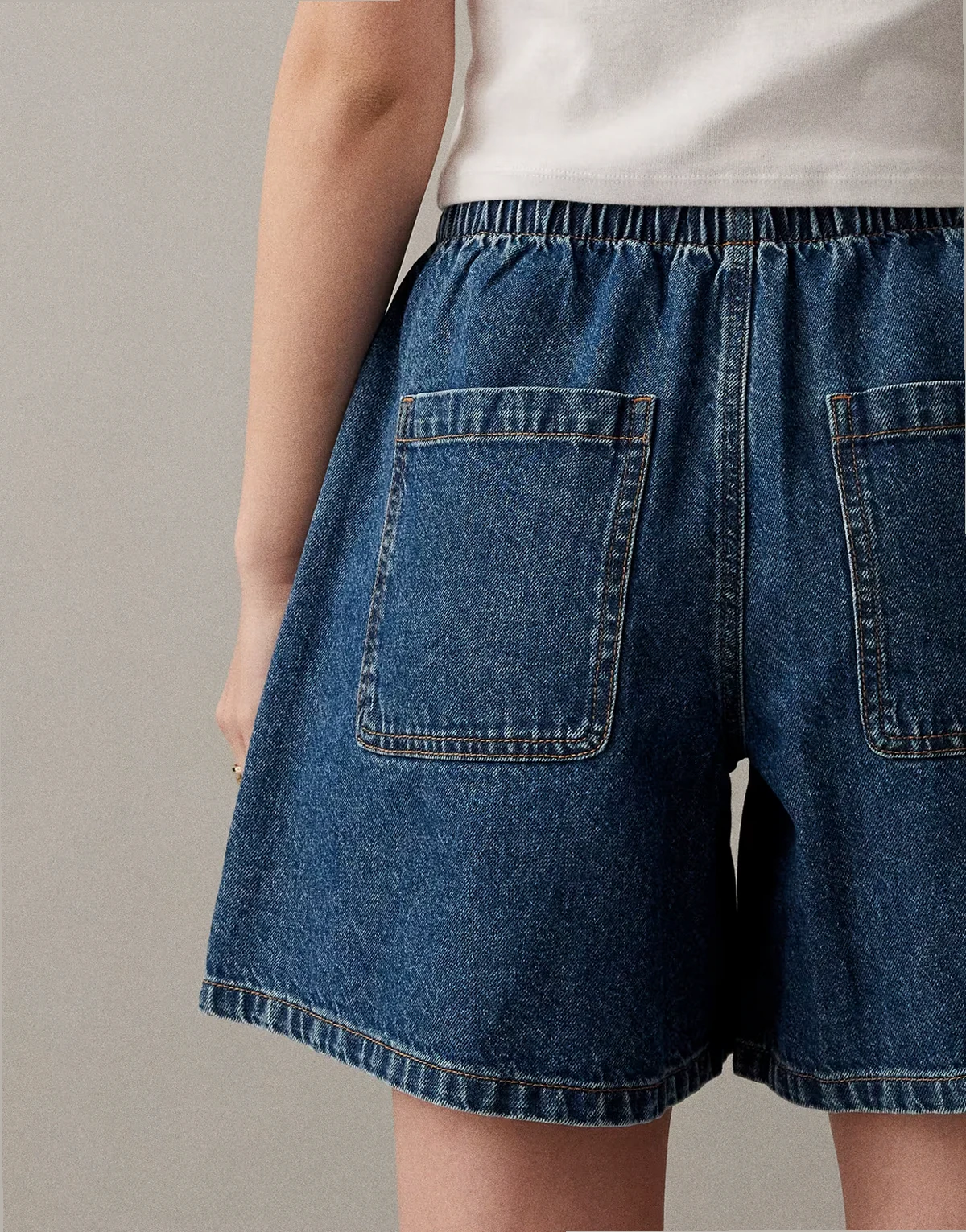 – Länger geschnittene Schlupf-Jeansshorts in Mittelblau