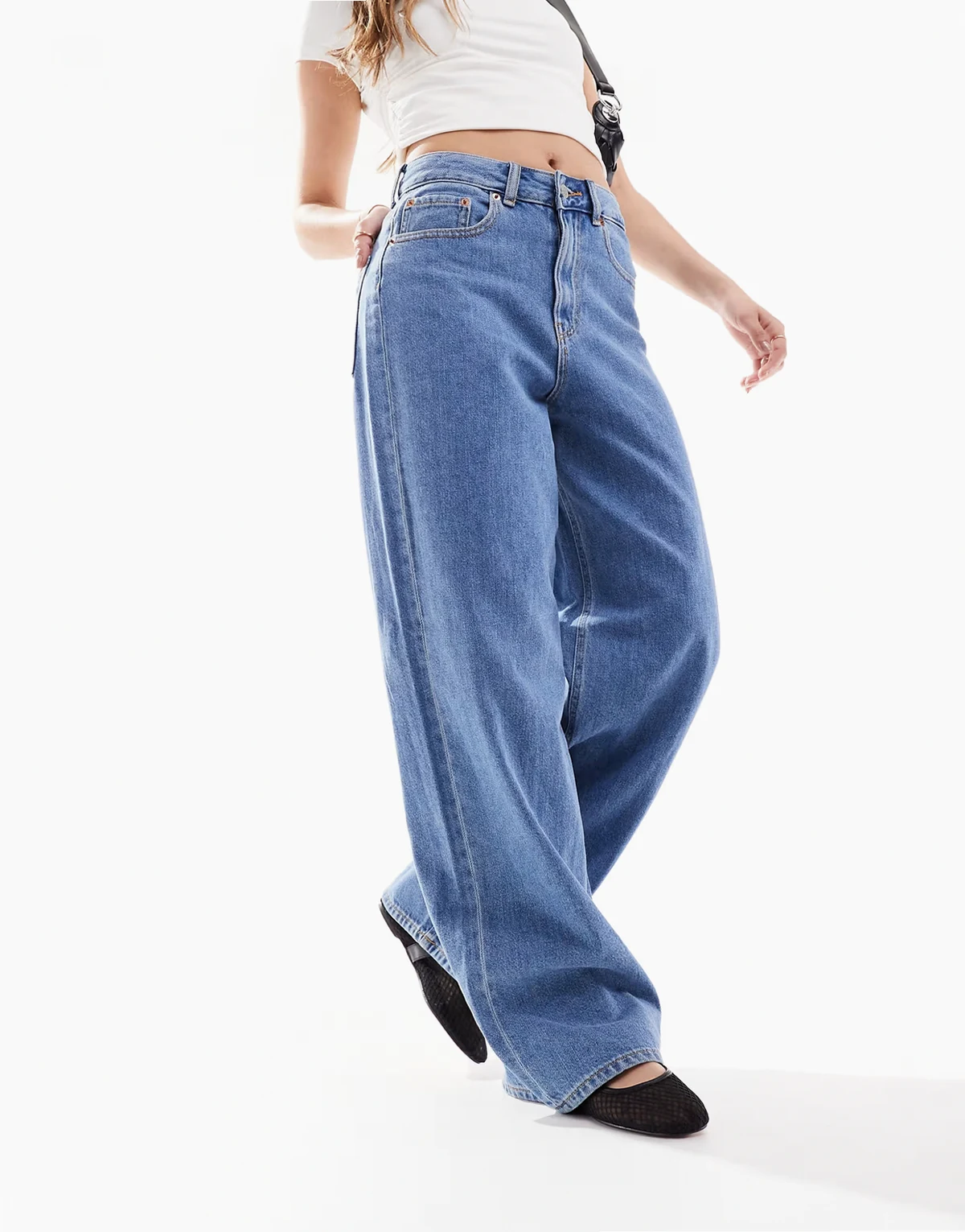 – Tokyo – Jeans in Mittelblau mit hohem Bund und weitem Schnitt