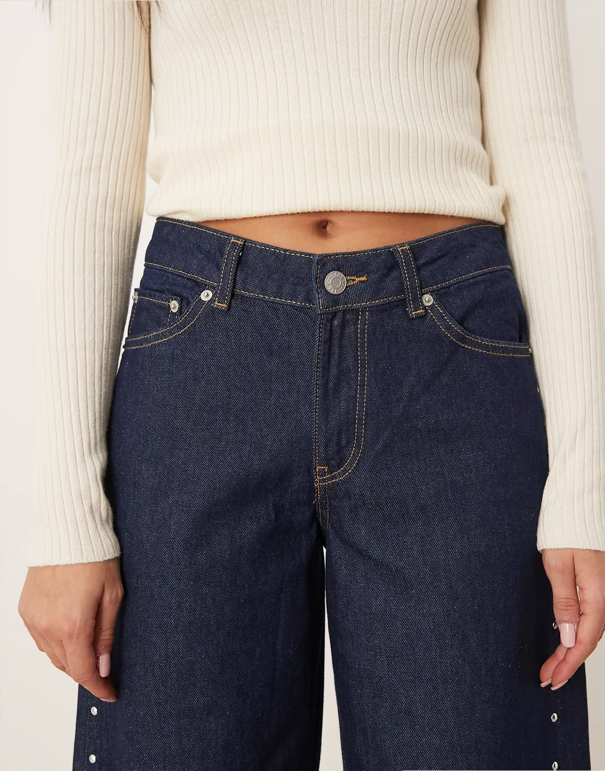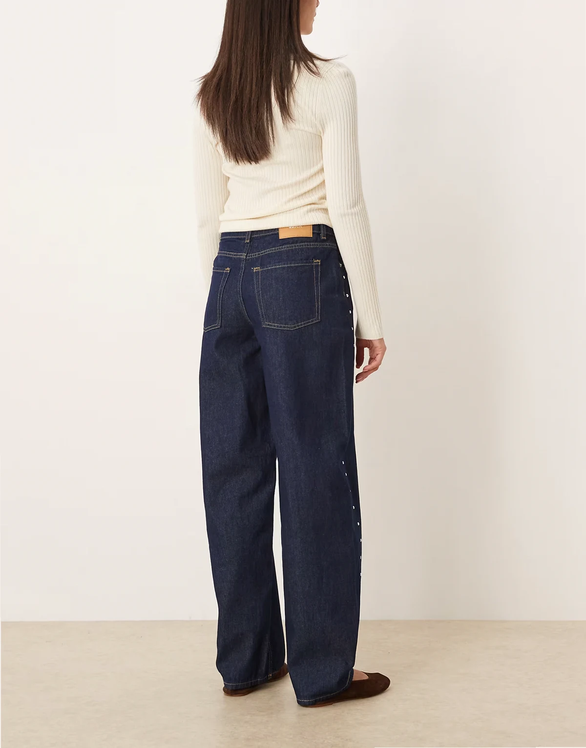 – Fuji – Jeans in dunkler Waschung mit abgerundetem Beinschnitt und Nietendetails