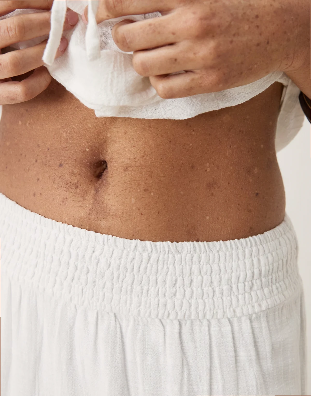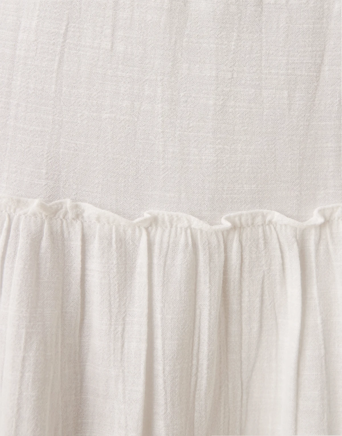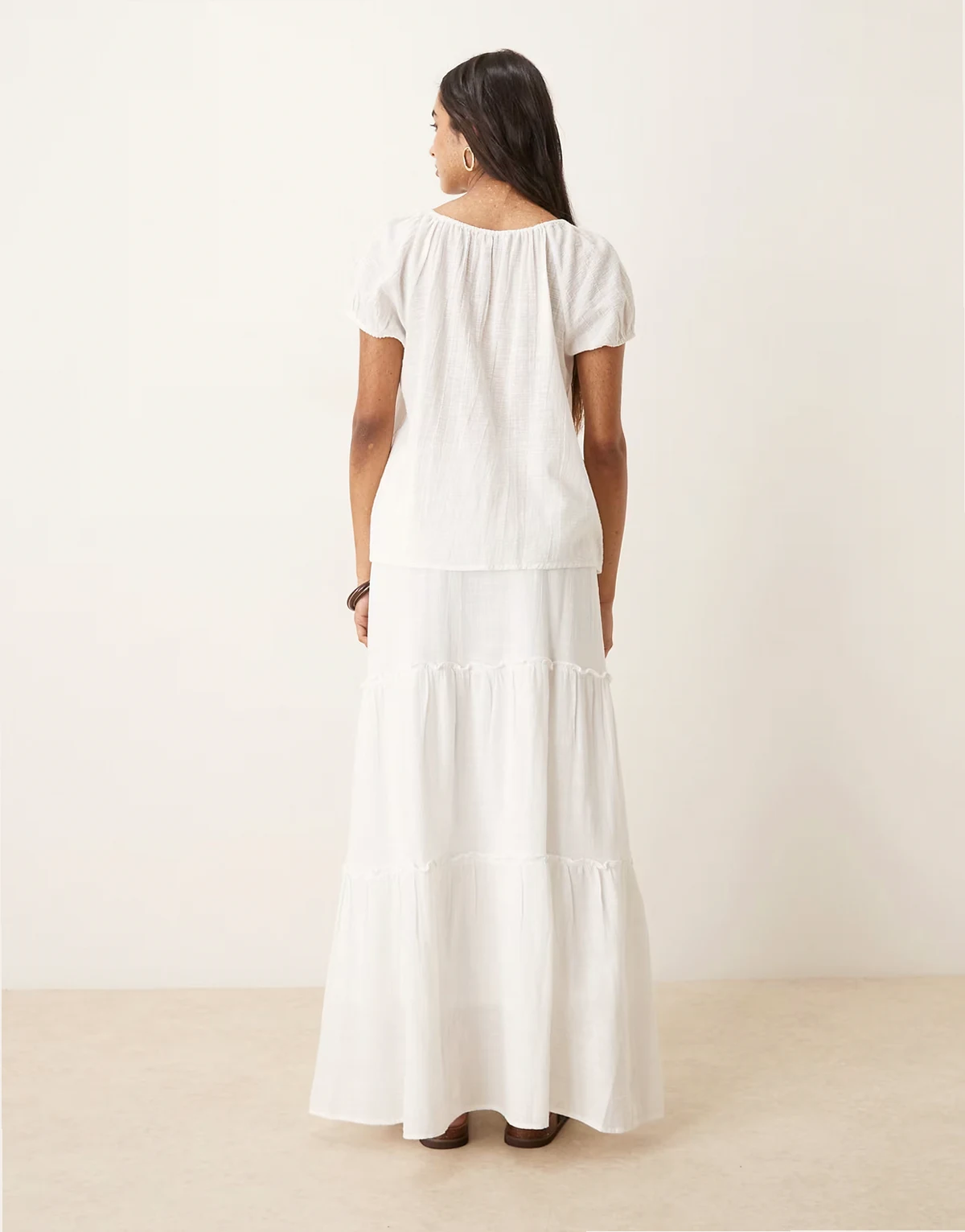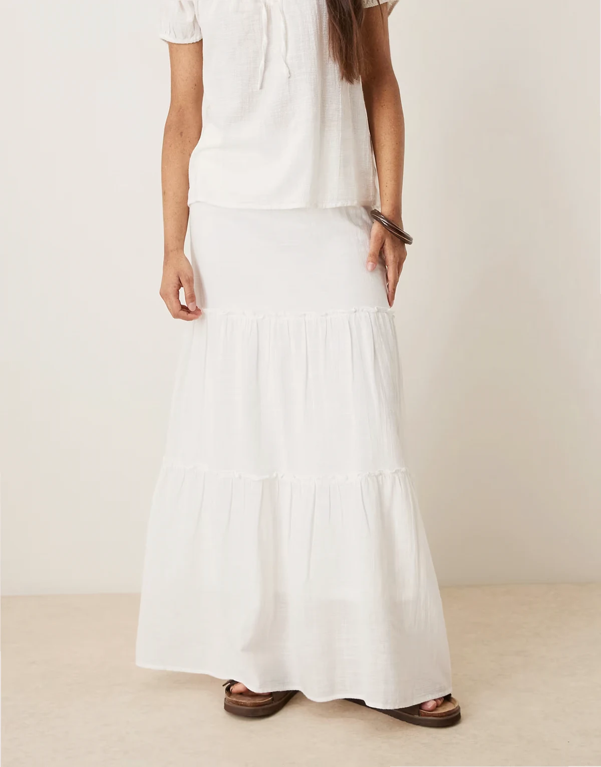 – Gestufter Boho-Maxirock in Weiß mit hohem Bund