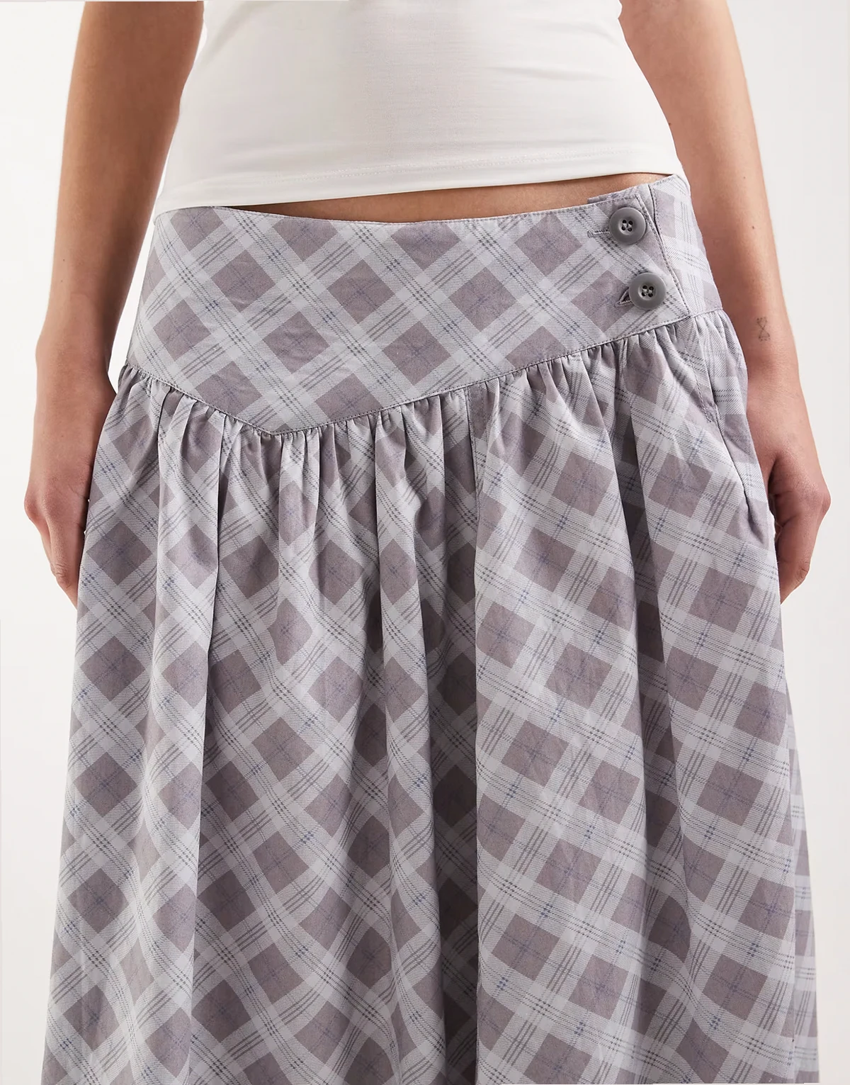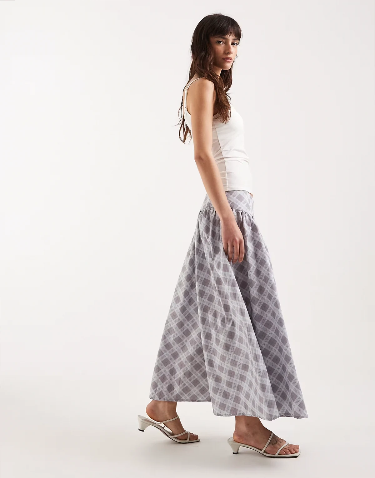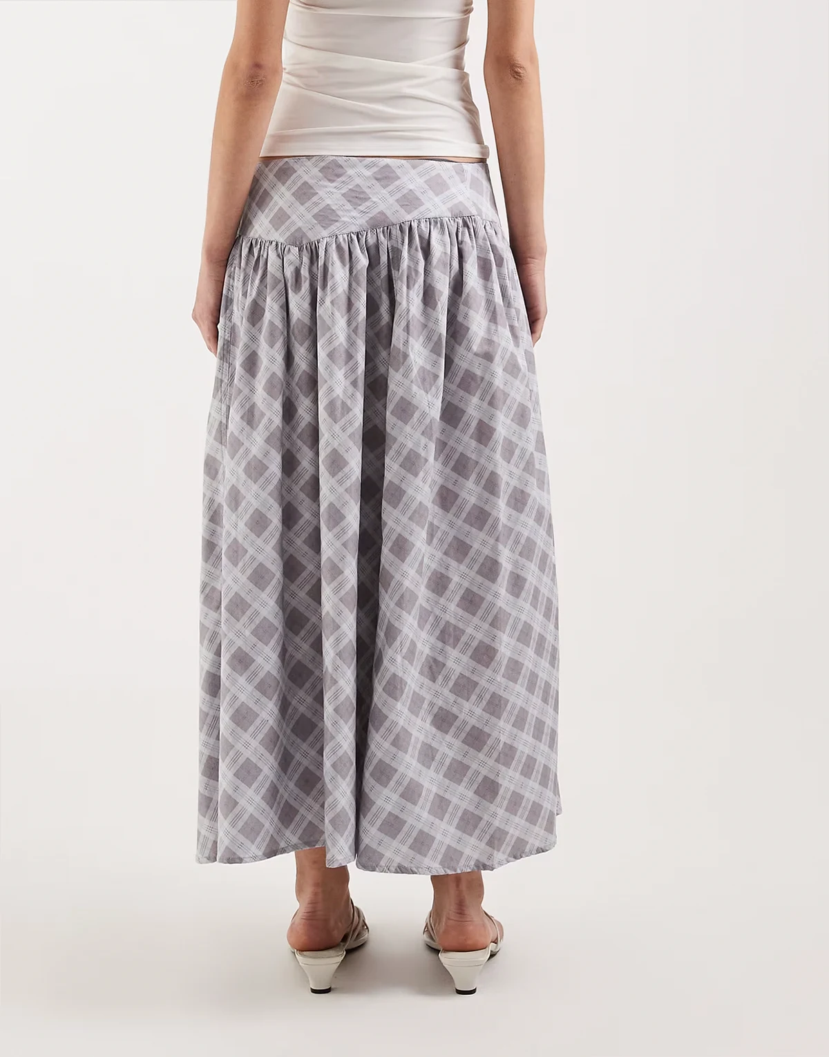 – Sanadi – Karierter Midaxi-Rock aus Popeline in Grau