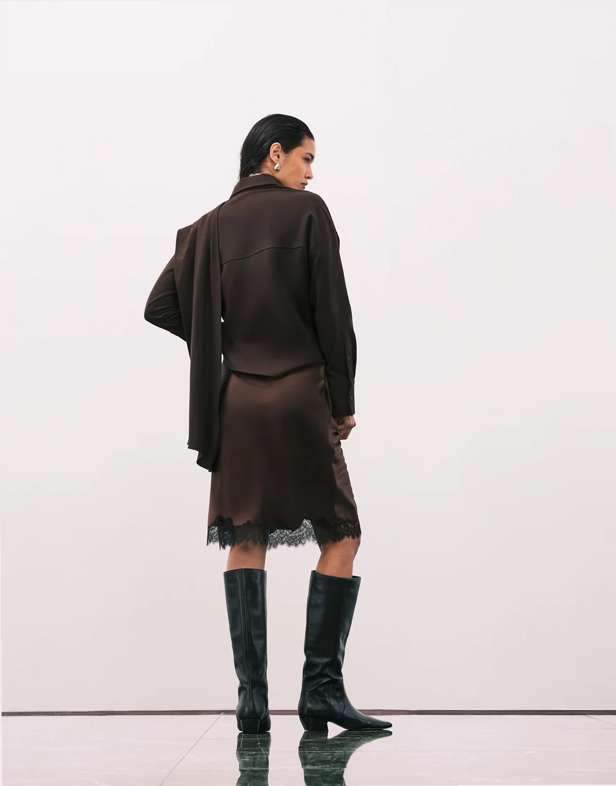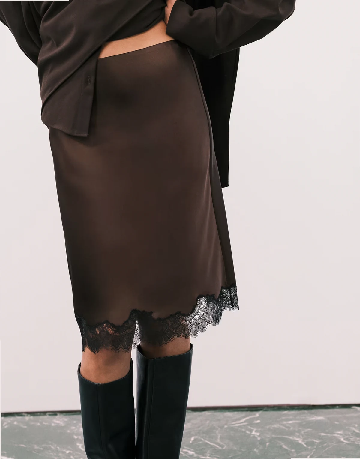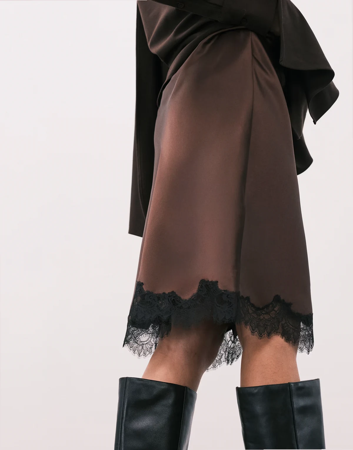 – Knielanger Rock in Braun mit Spitzensaum