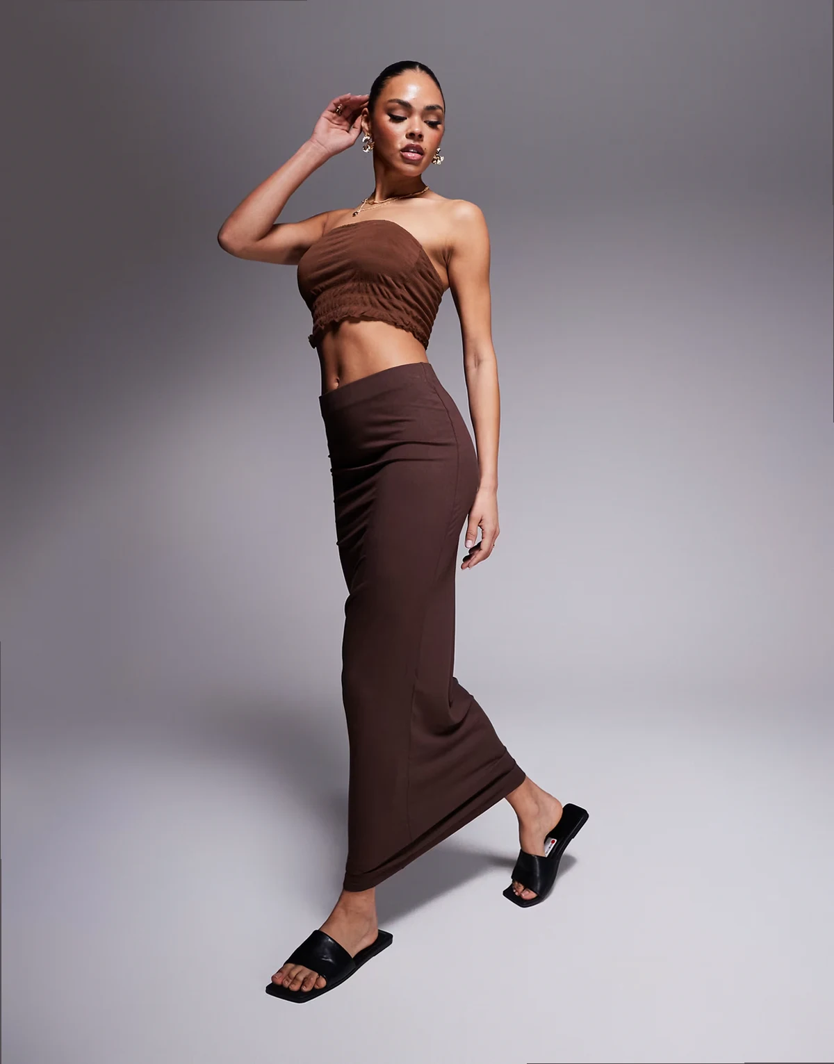 – Jersey-Maxirock in Schokobraun mit geradem Schnitt