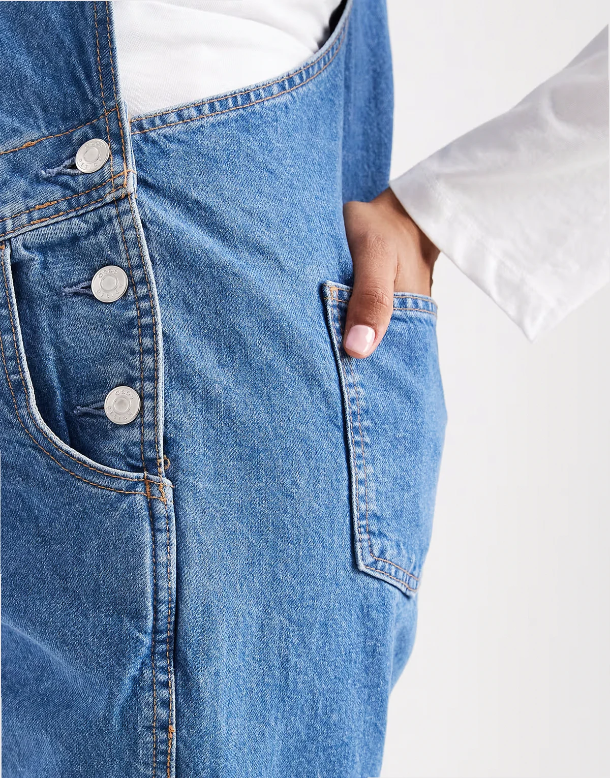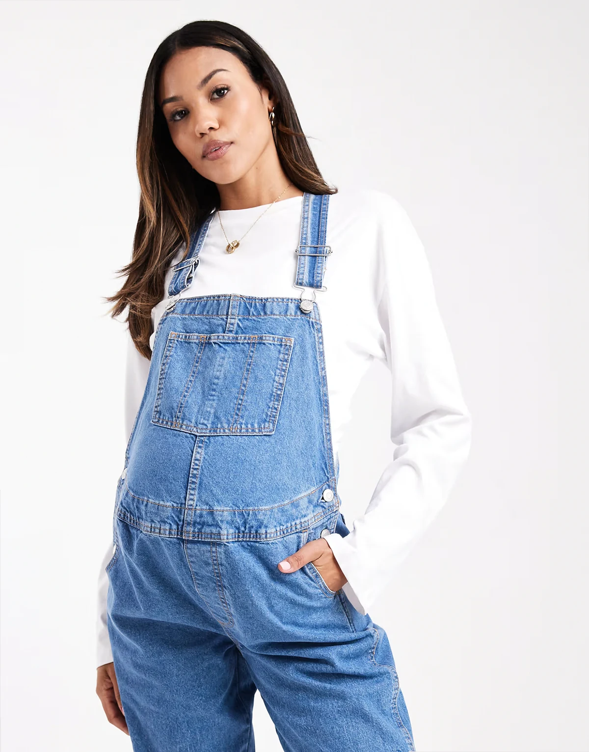 ASOS DESIGN Maternity – Jeanslatzhose in Mittelblau