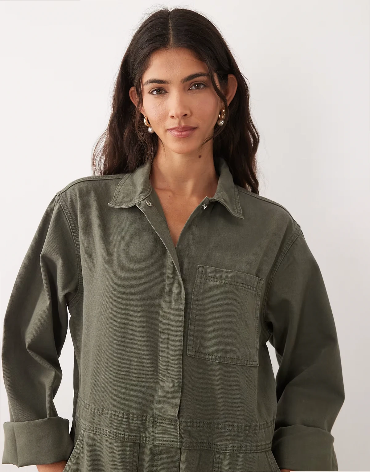 – Jeans-Overall in Khaki mit Barrel-Leg
