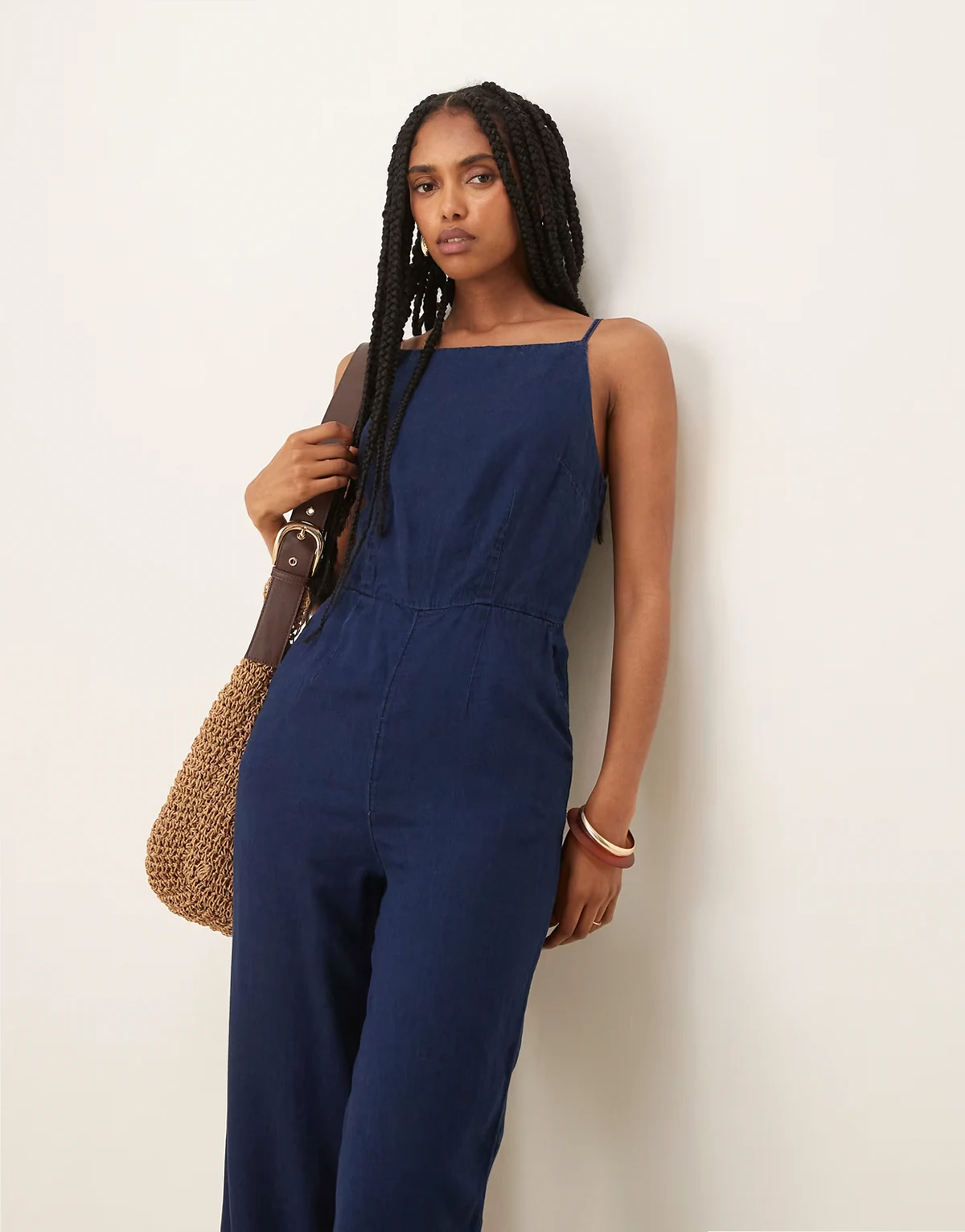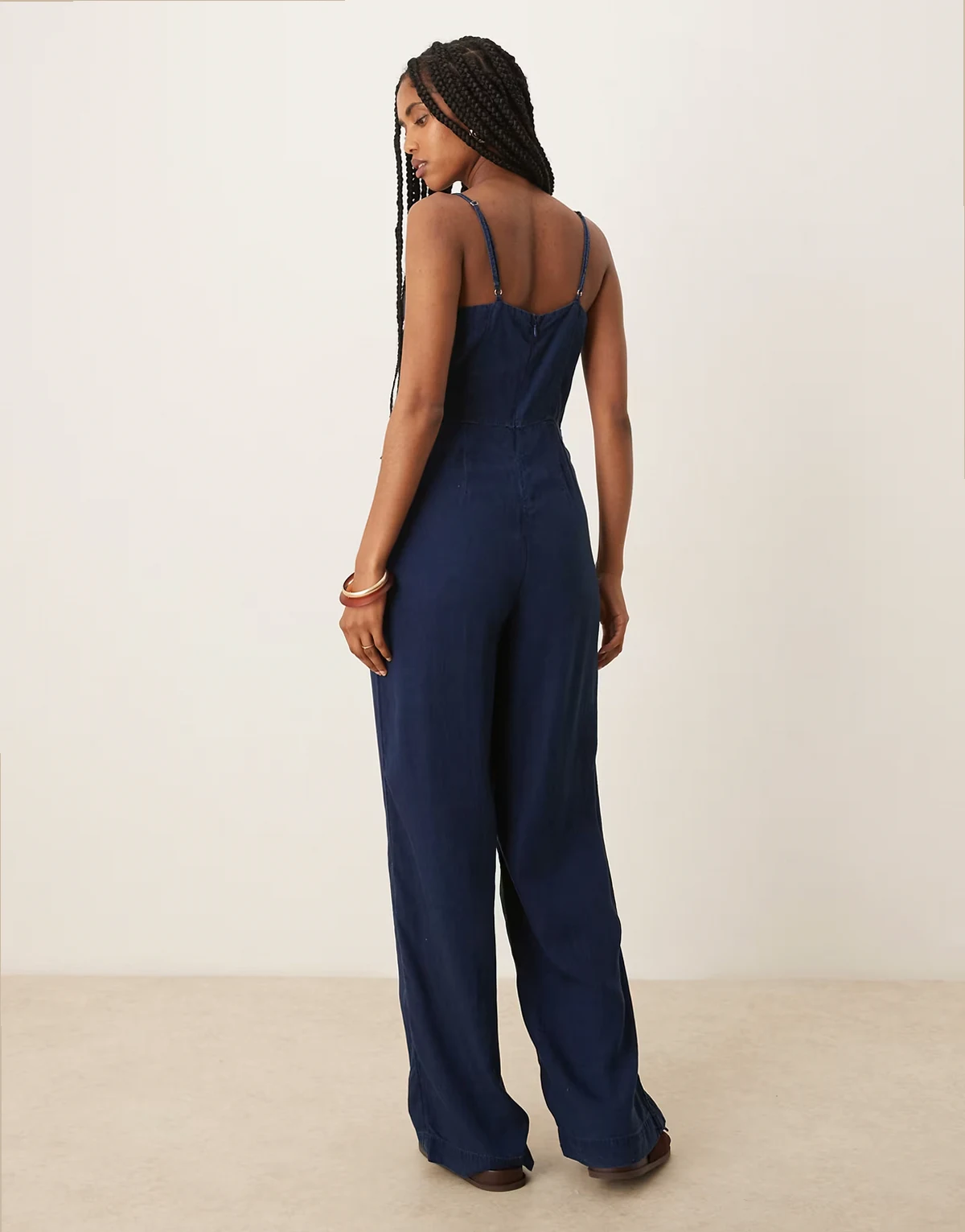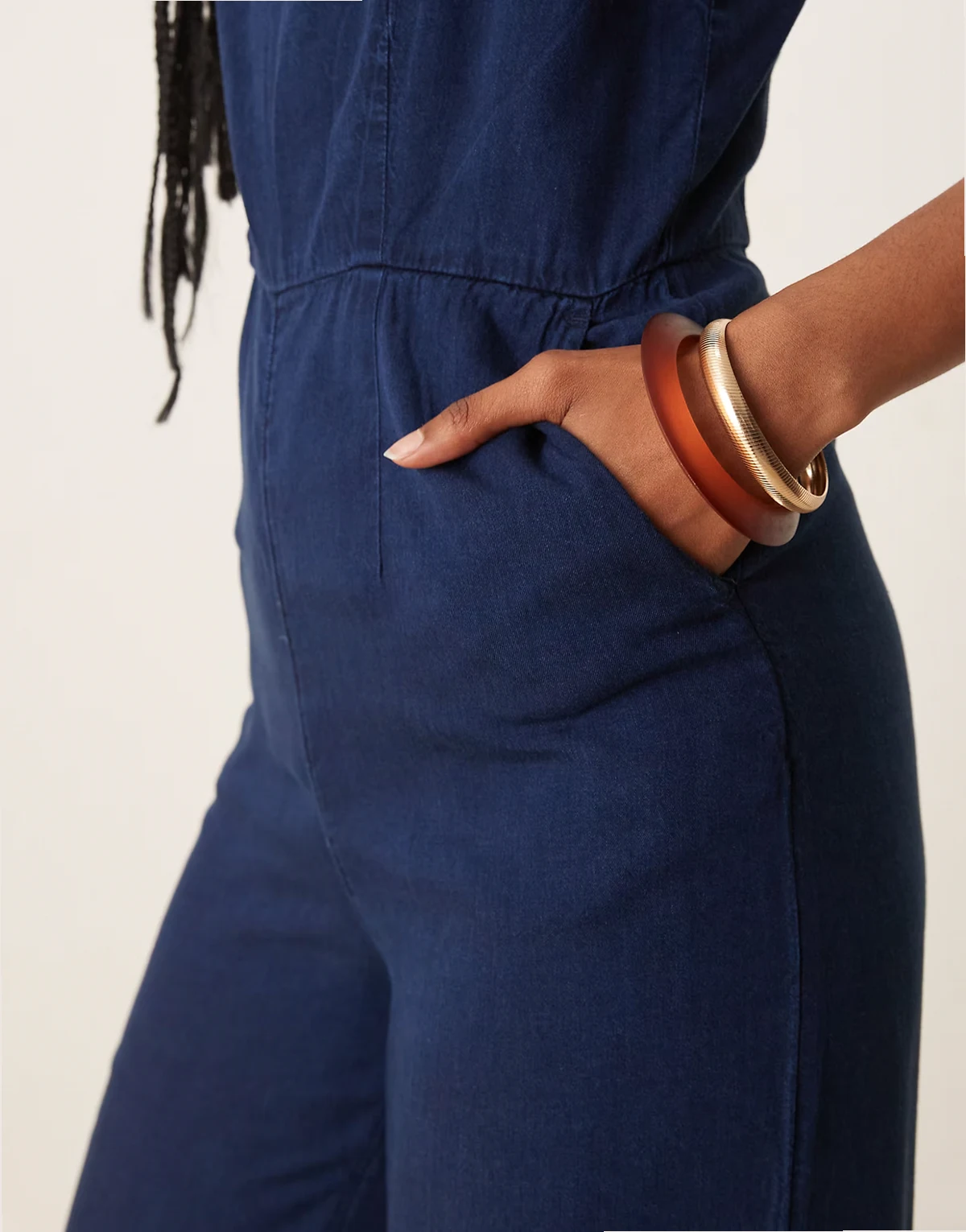 – Jumpsuit in indigoblauer Jeans-Optik mit geradem Bein