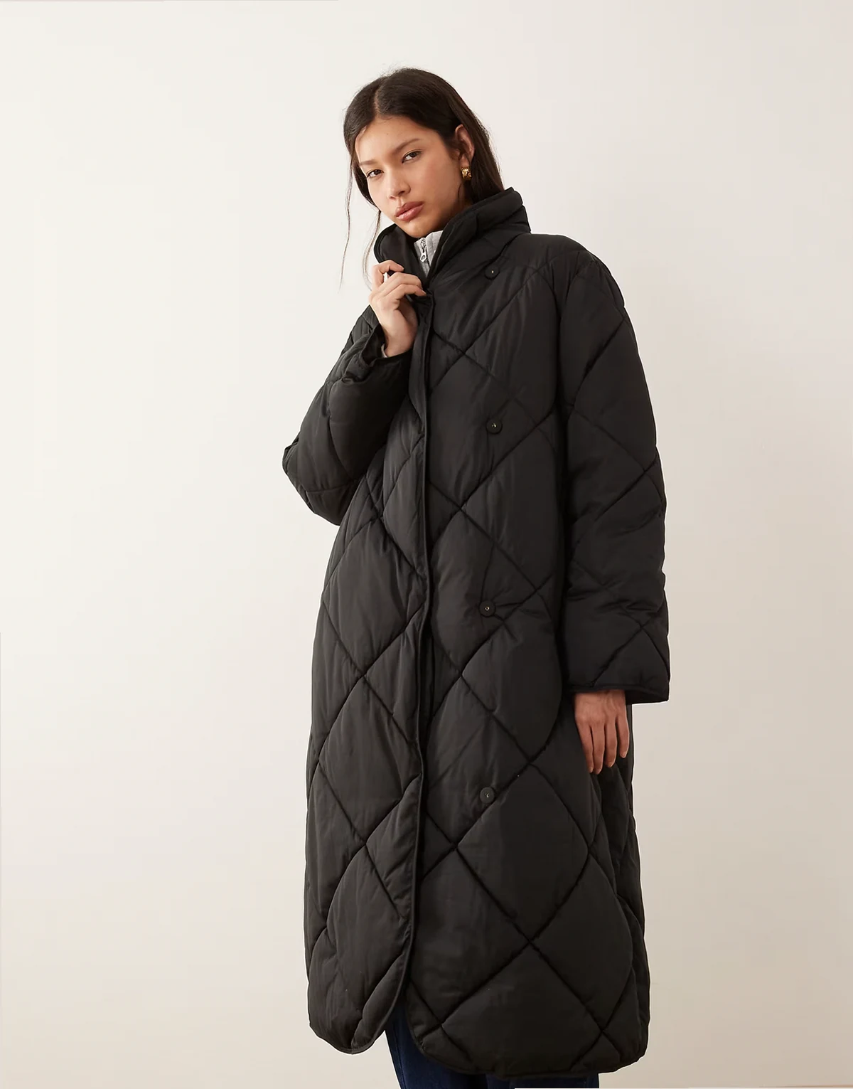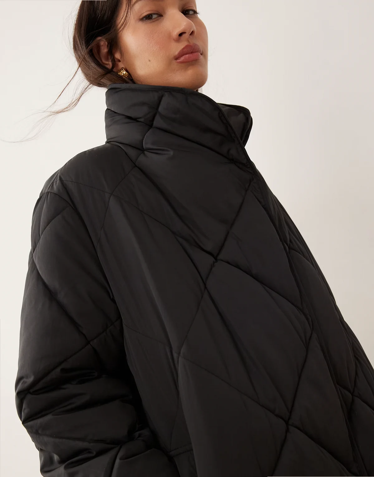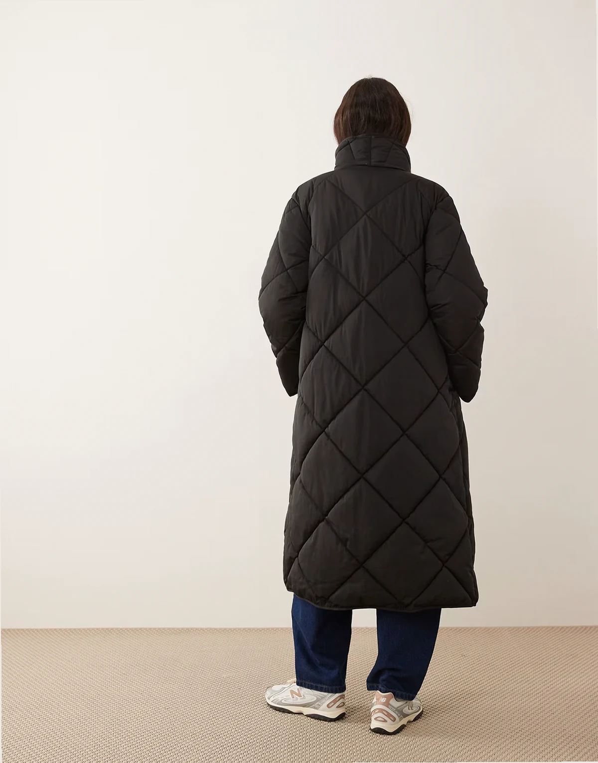 – Longline-Jacke in Schwarz mit Rautensteppmuster