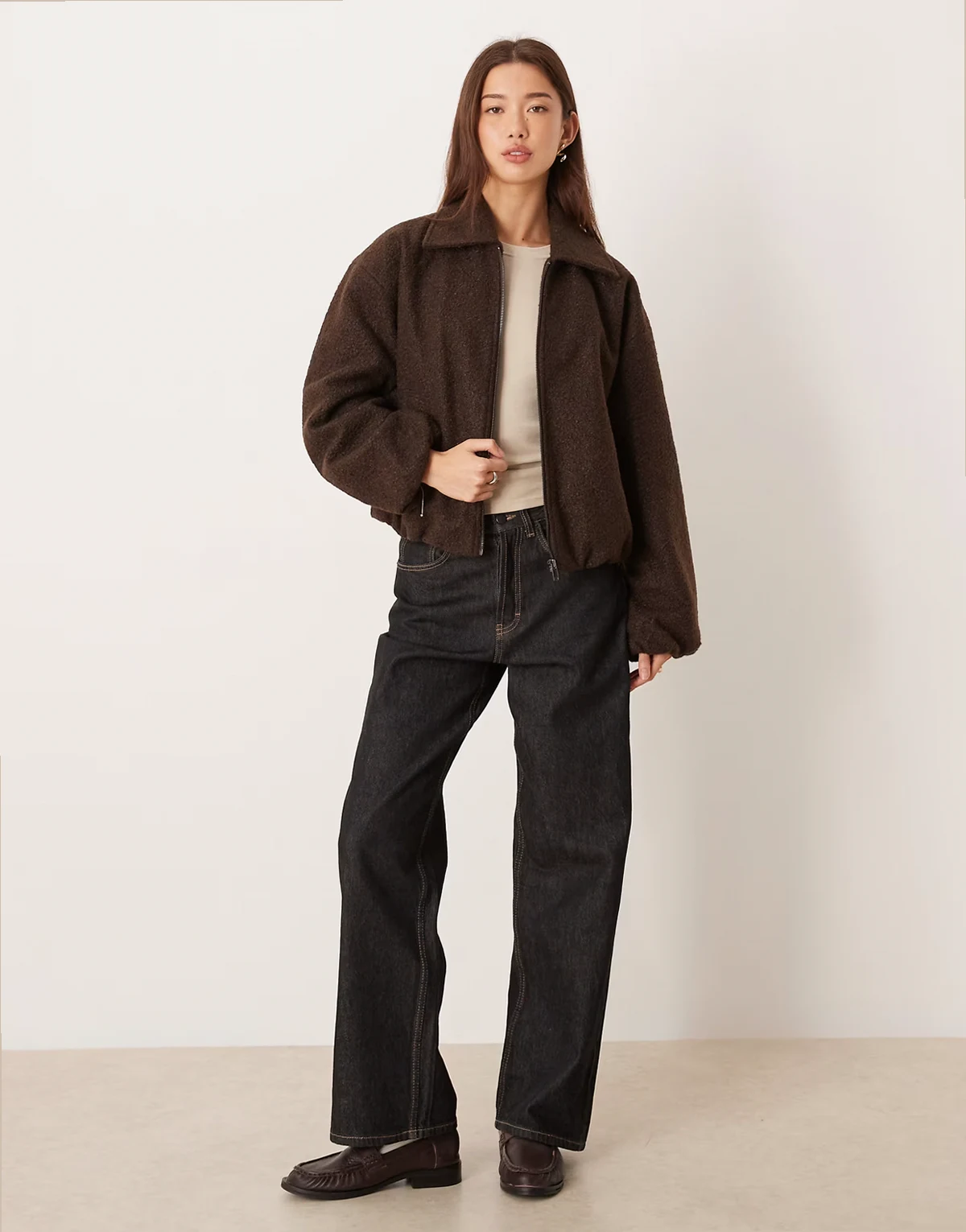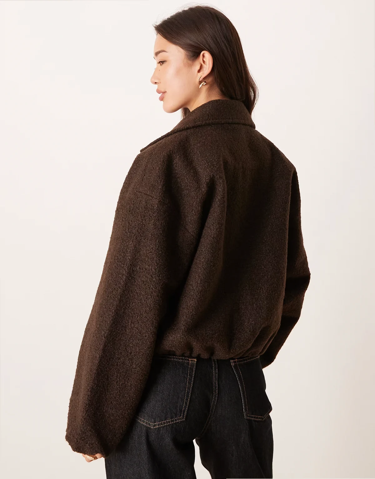 – Elegante, angeraute Bomberjacke in Schokobraun