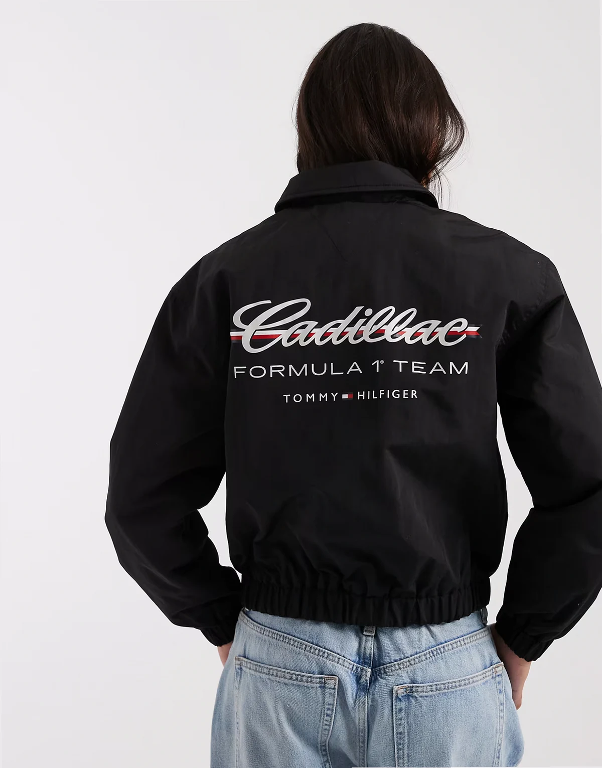 x Cadillac – Cropped-Jacke in Schwarz mit „F1“-Logo