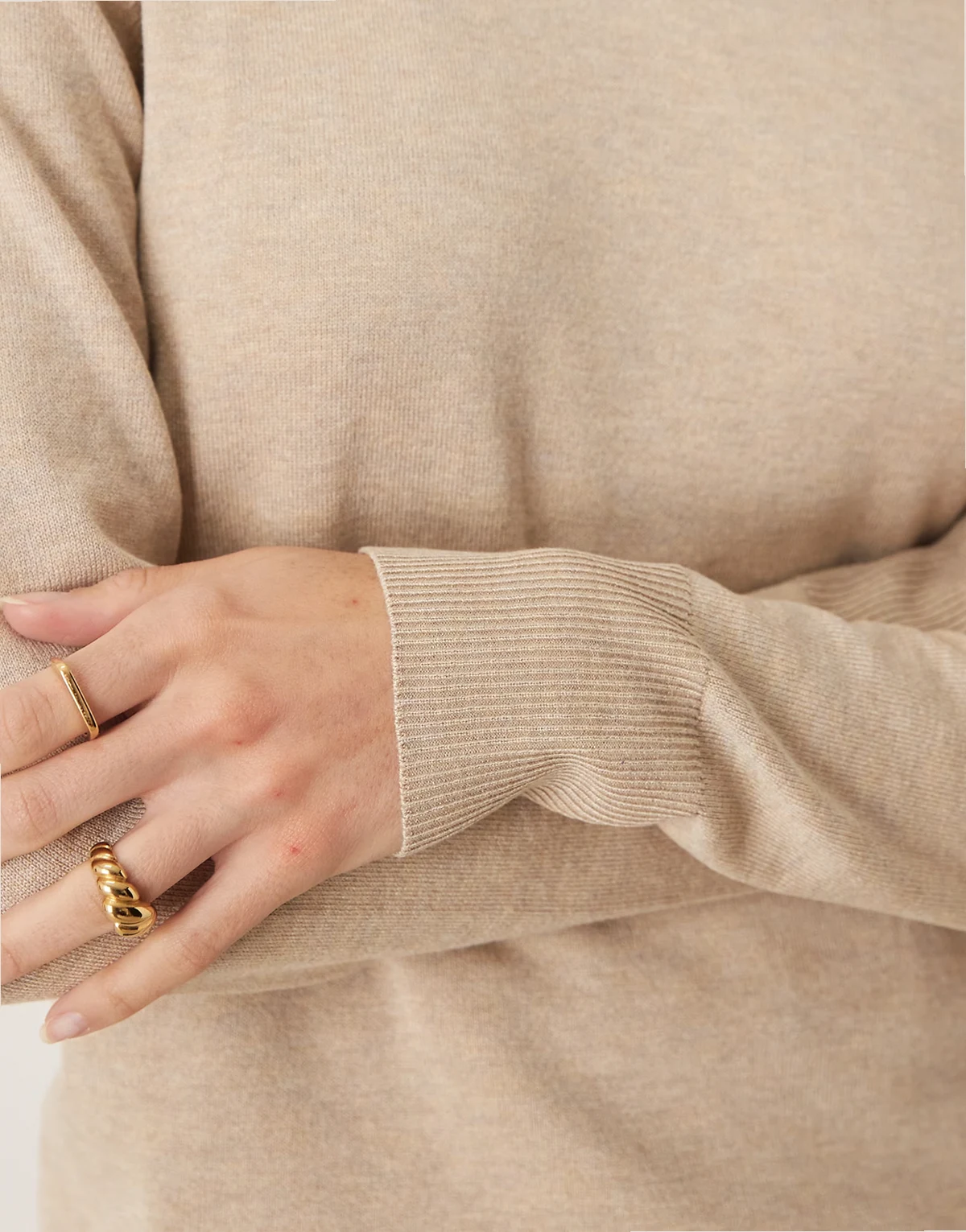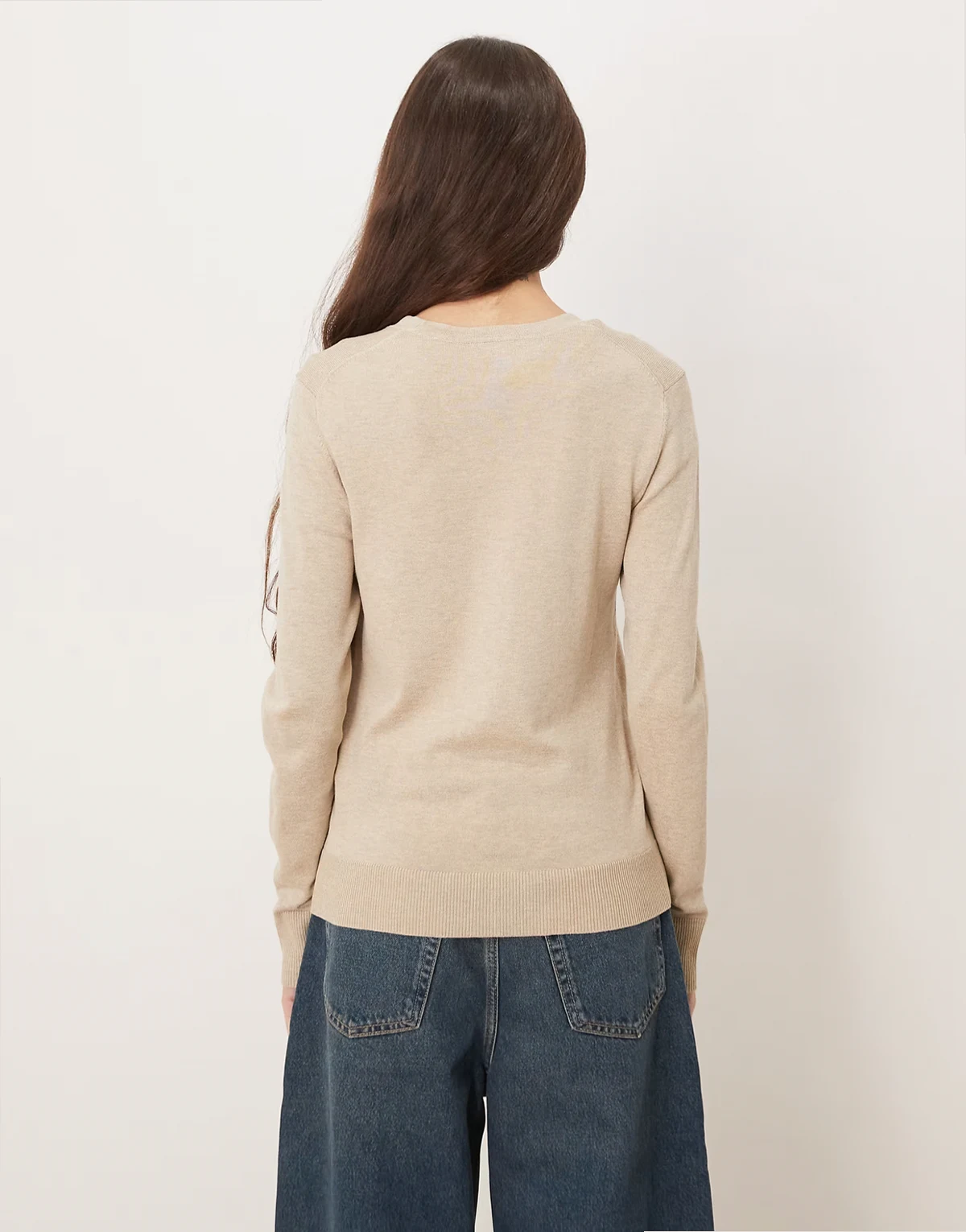 – Strickpullover in Beige mit Rundhalsausschnitt