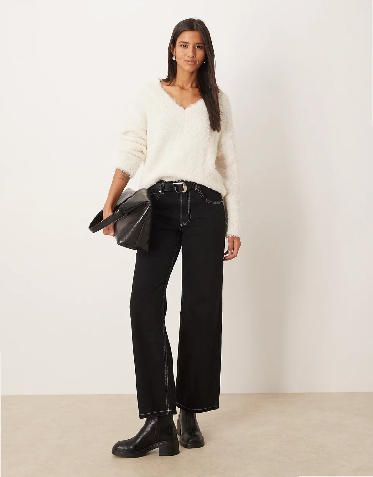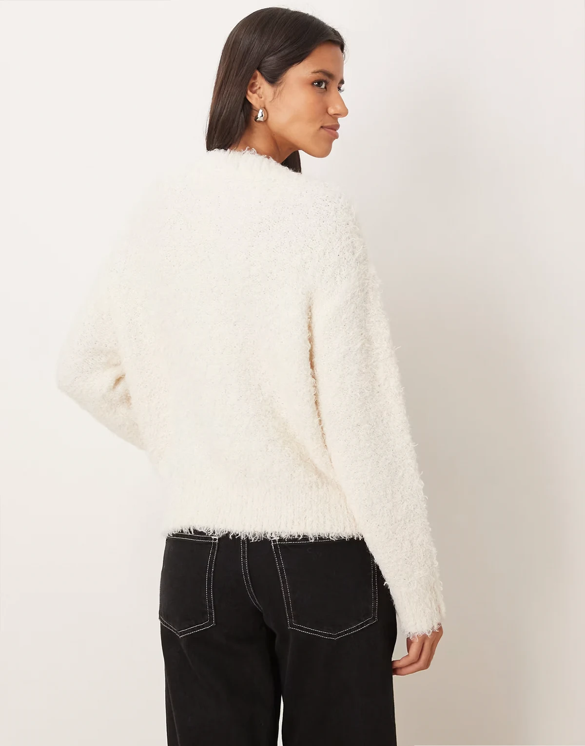 – Flauschiger Pullover in Weiß mit V-Ausschnitt
