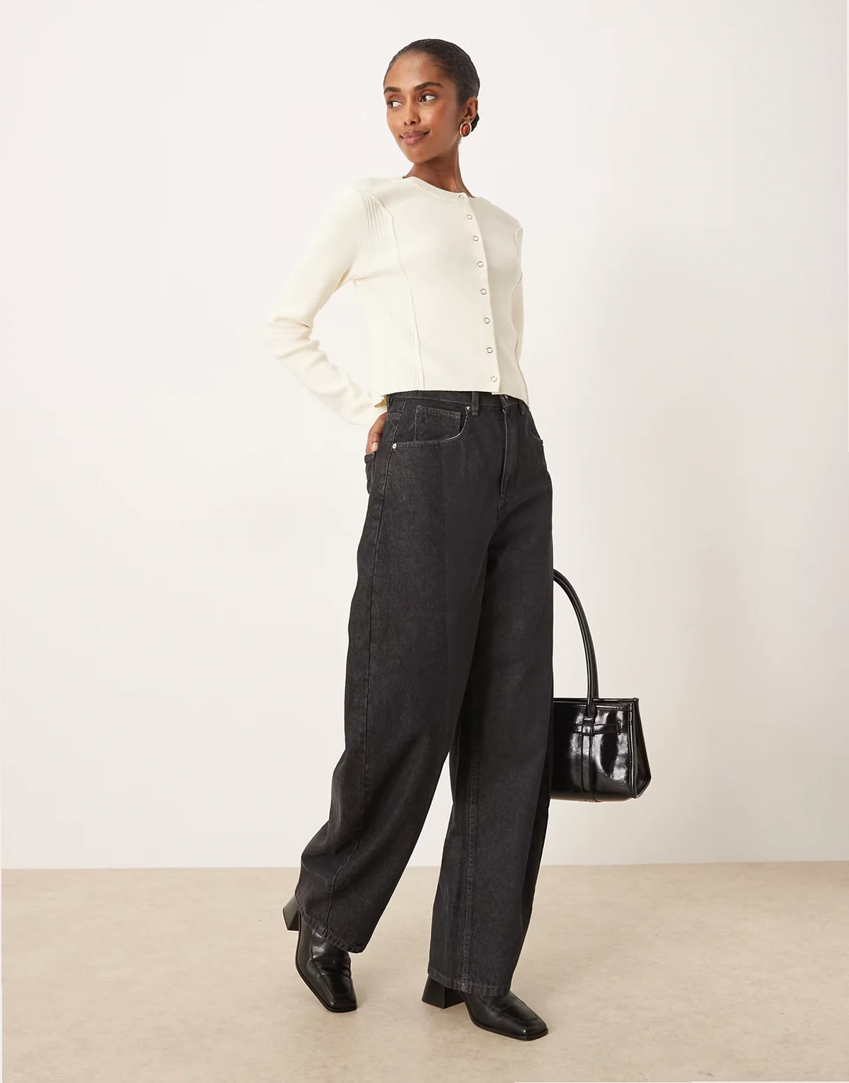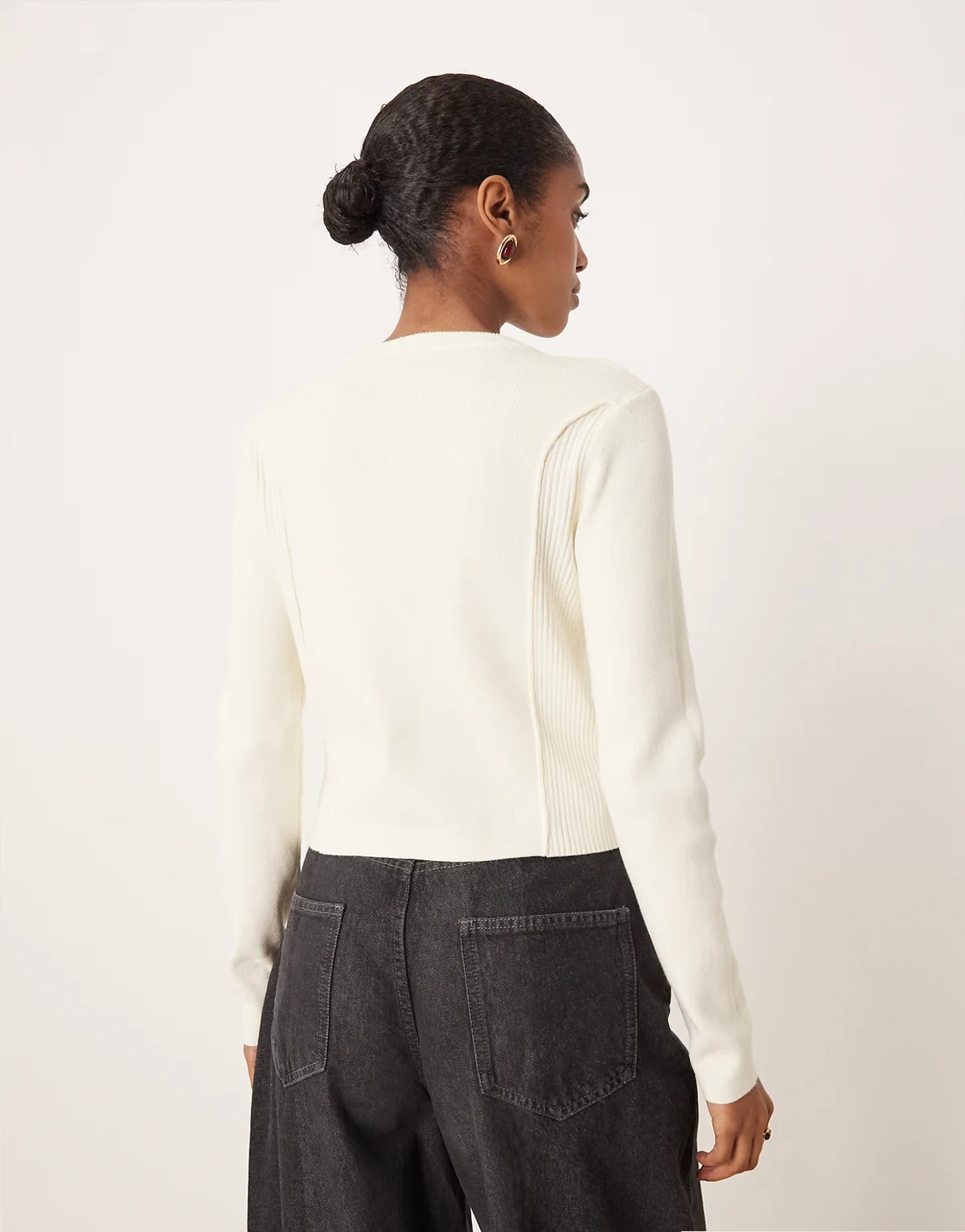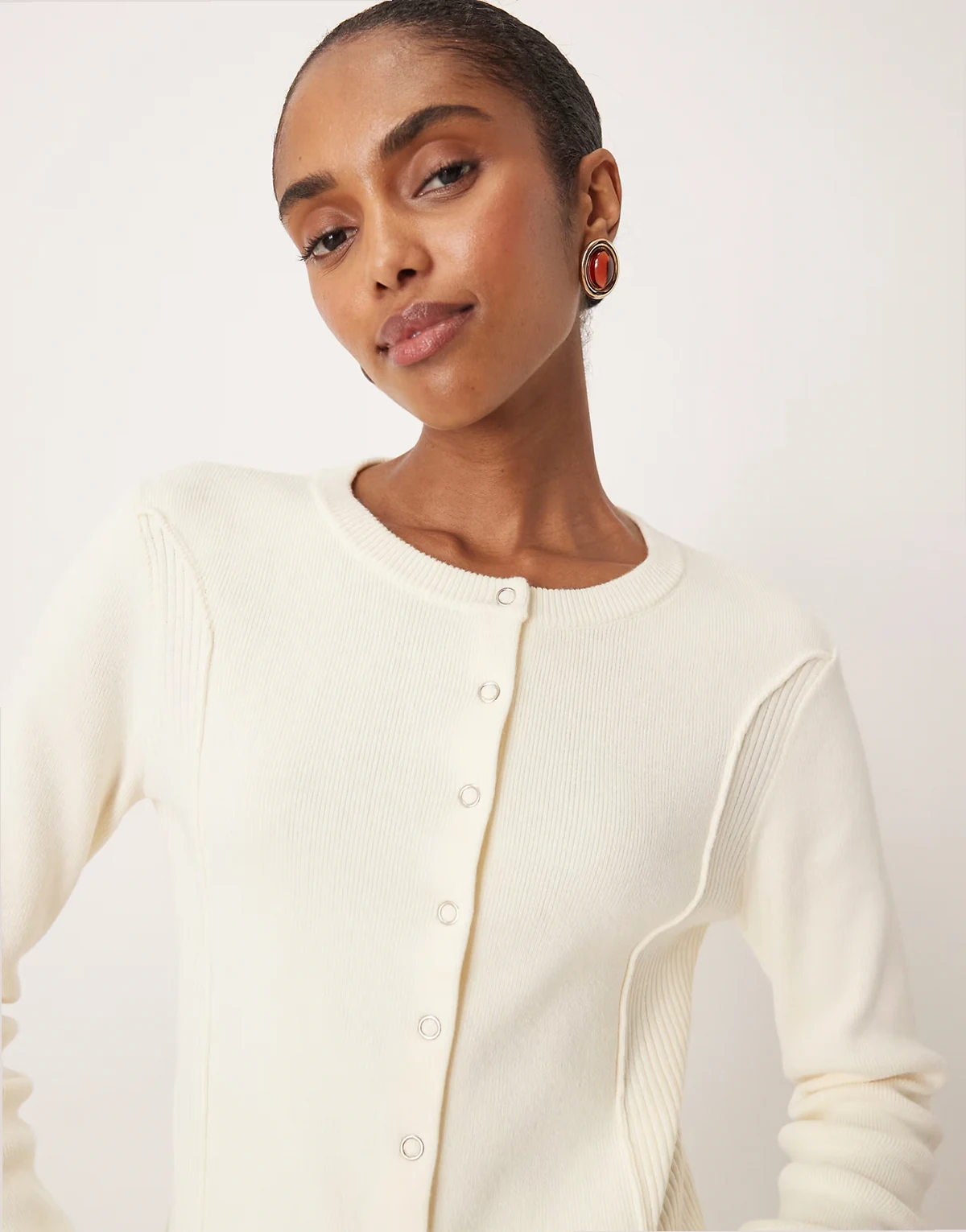 – Strickjacke aus Baumwollmix in Cremeweiß mit Ziernaht