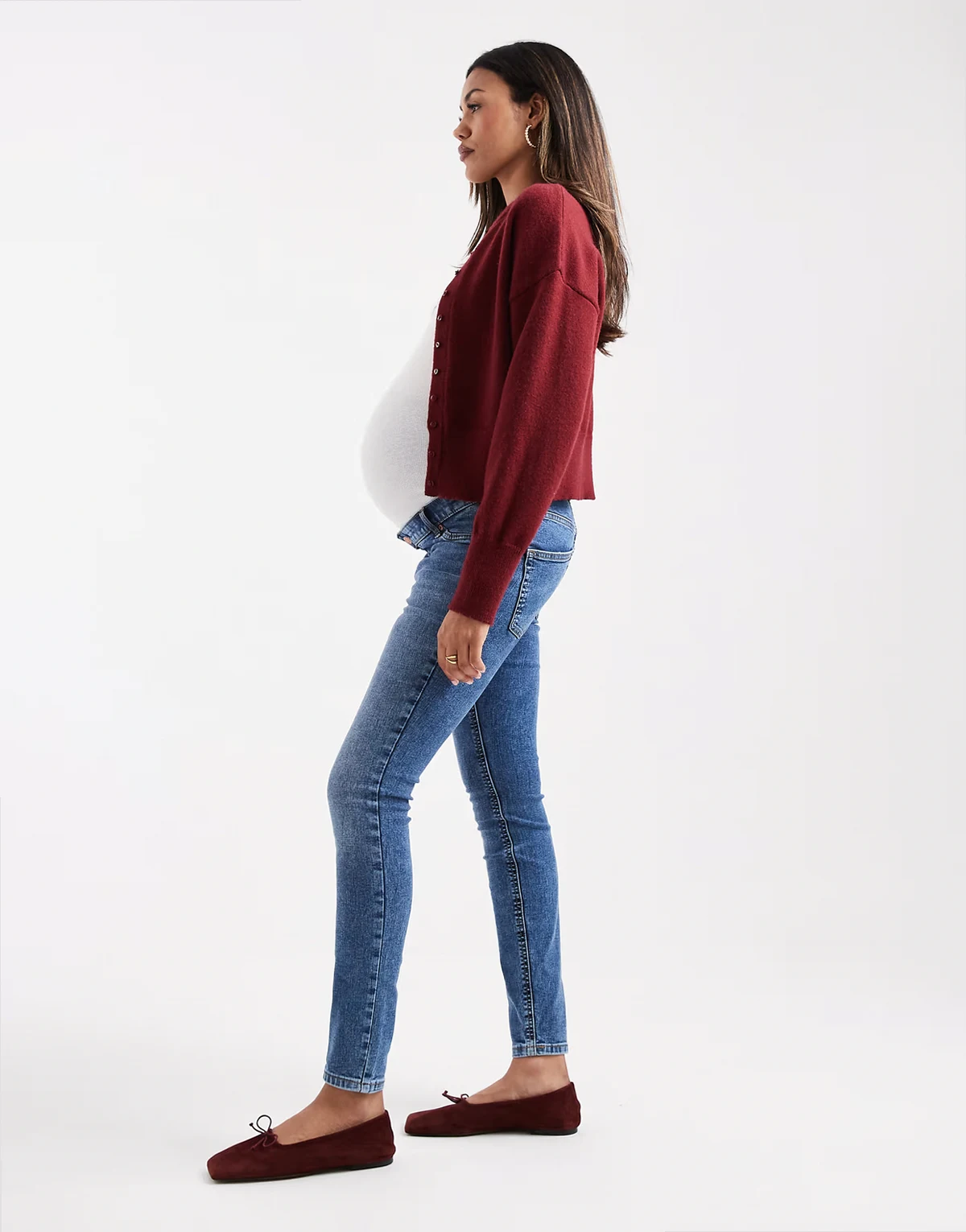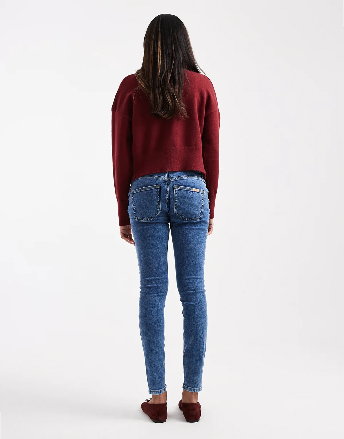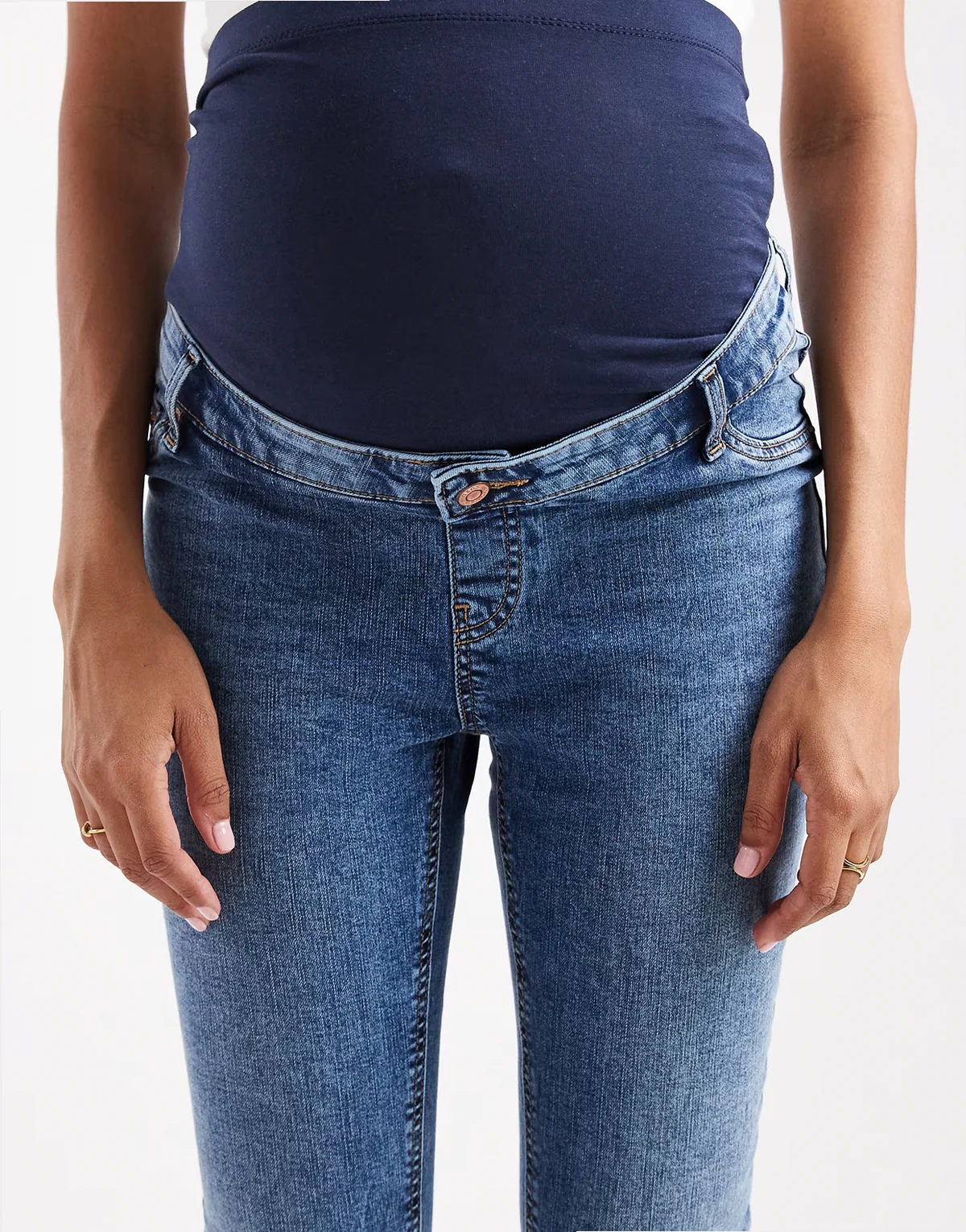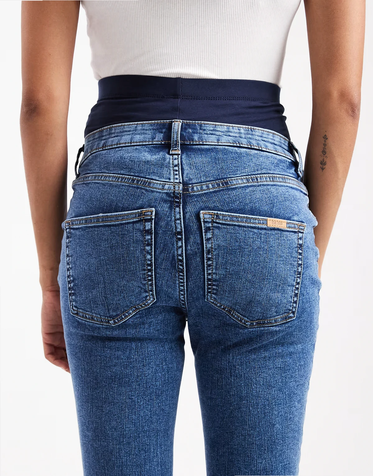Power-Stretch-Jeansstoff: mittelblaue Waschung