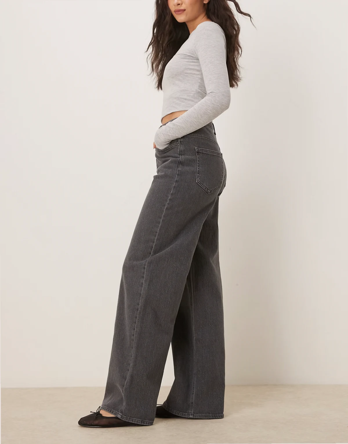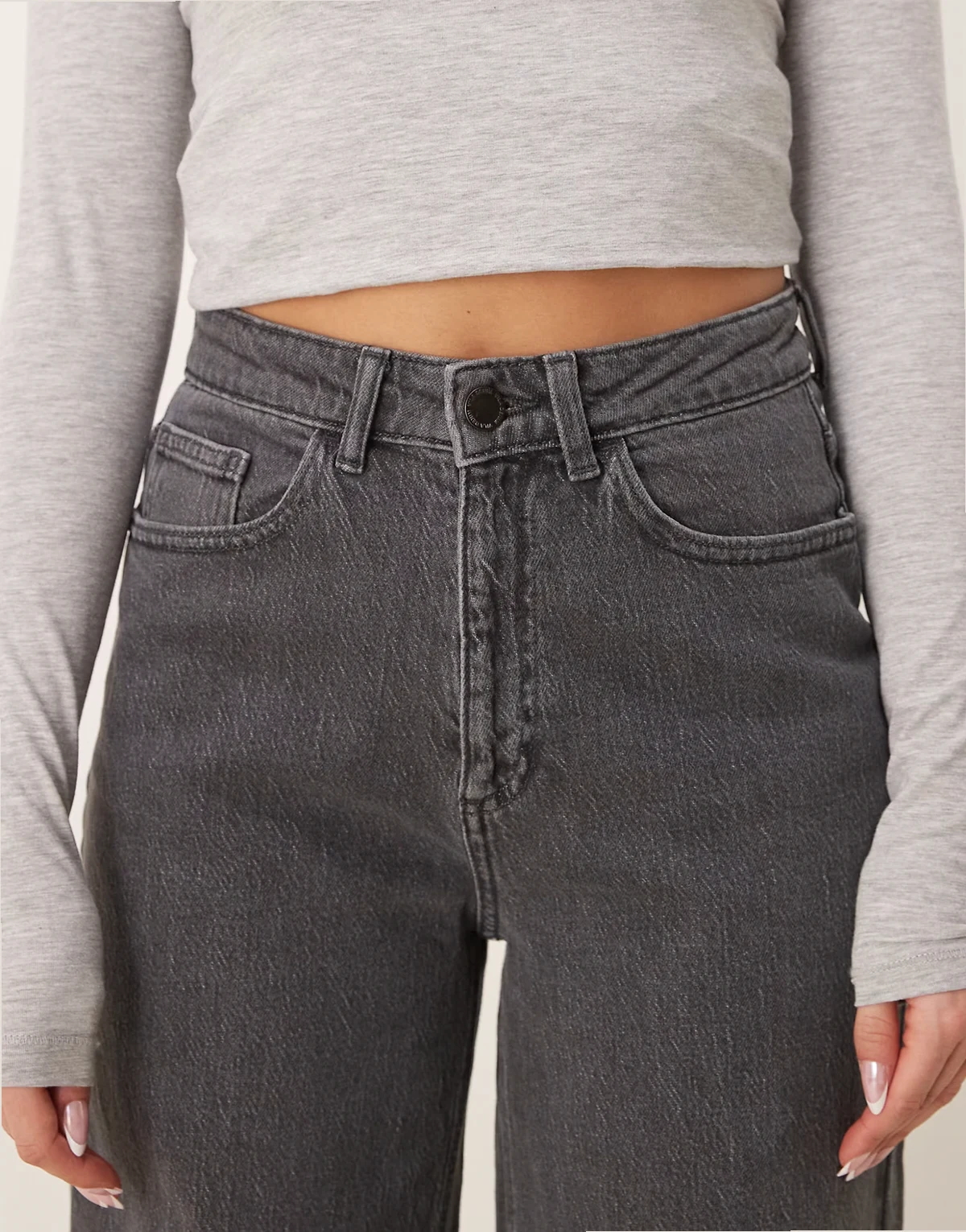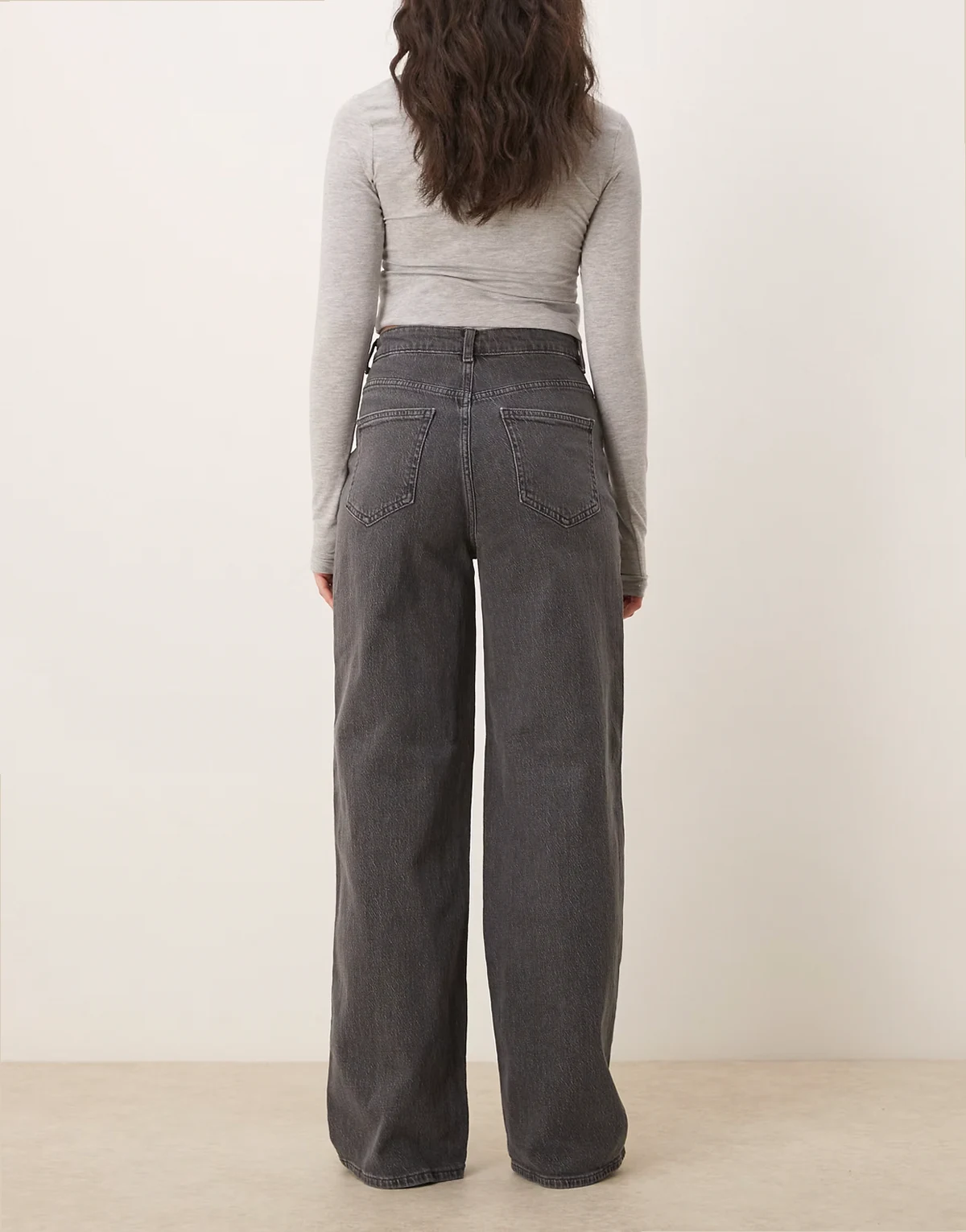 – Freya – Denim-Jeans in Grau mit hoher Taille und weitem Bein
