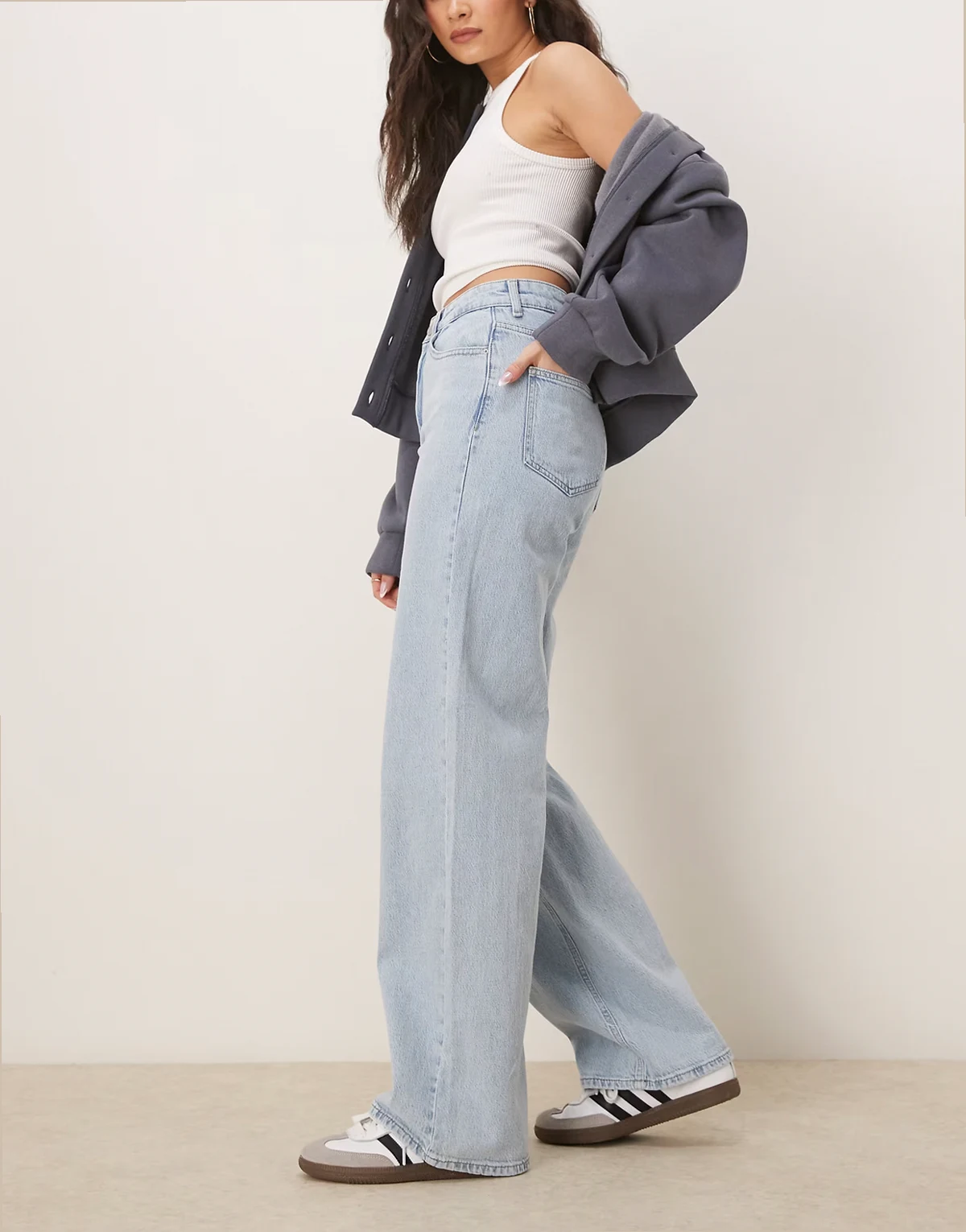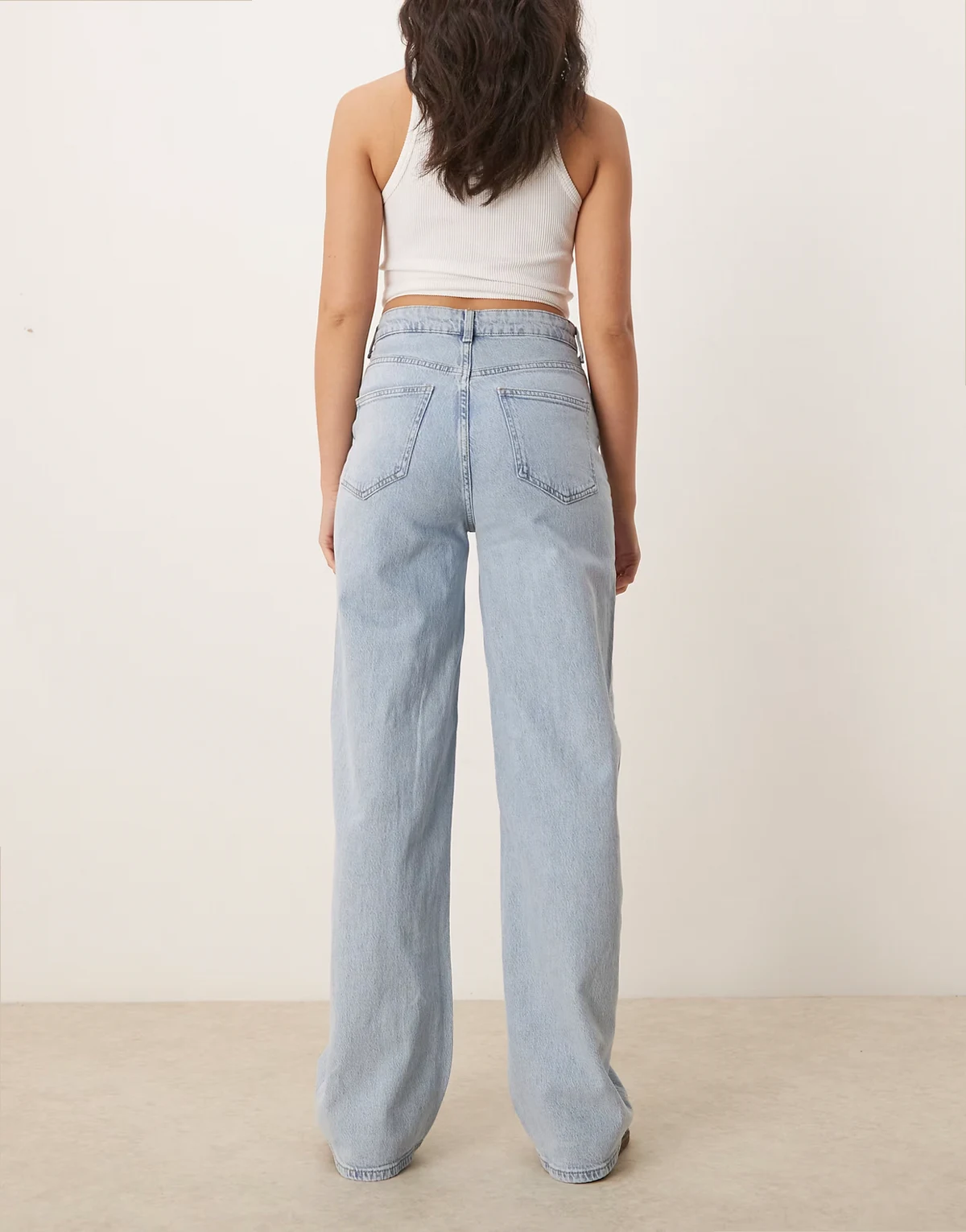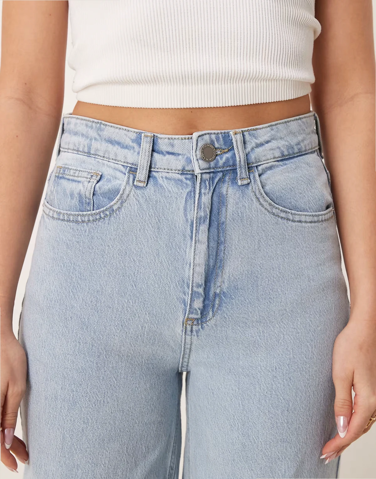 – Denim-Jeans in Hellblau mit hoher Taille und weitem Bein