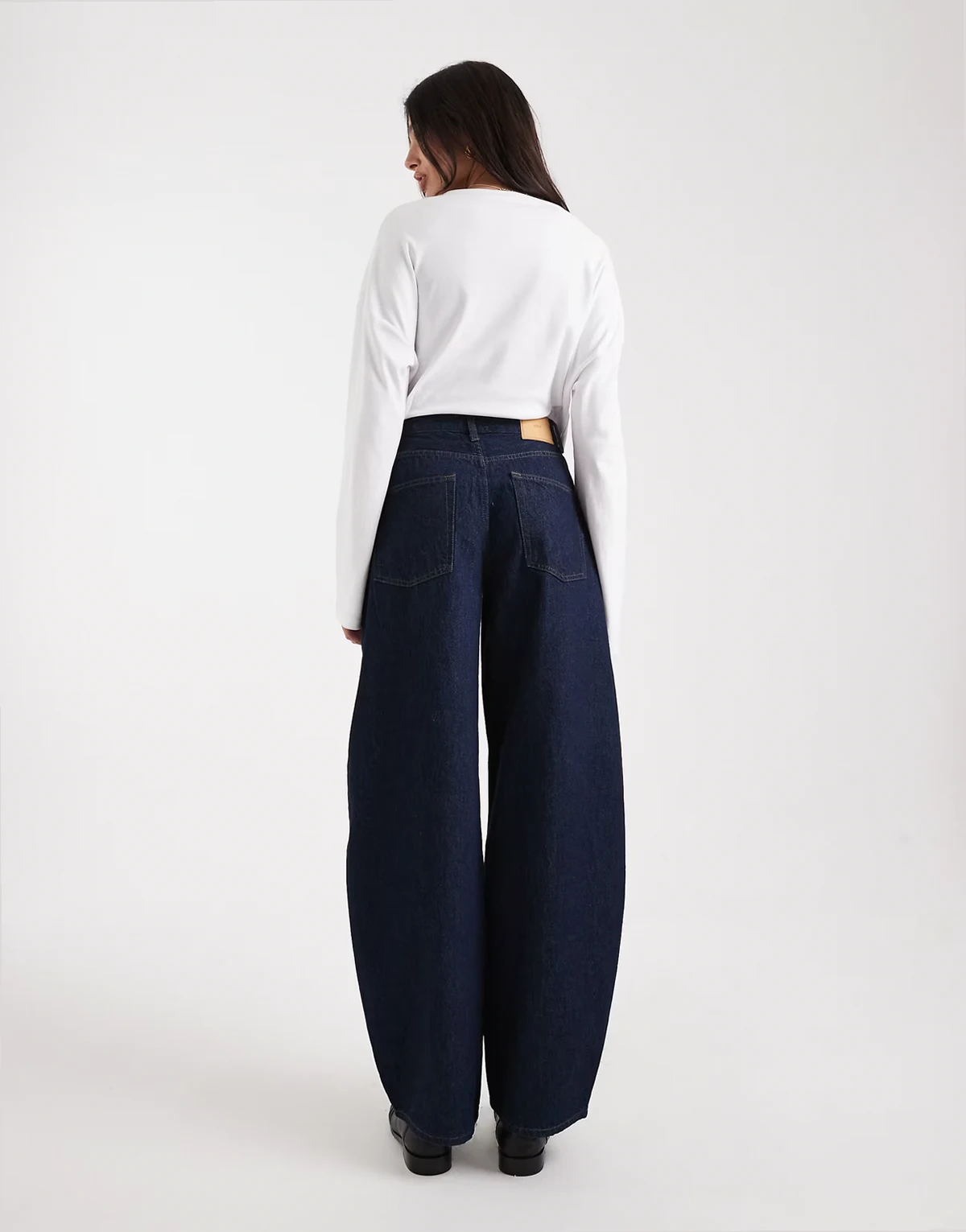 – Taylor – Barrel-Jeans in Dunkelblau mit hohem Bund