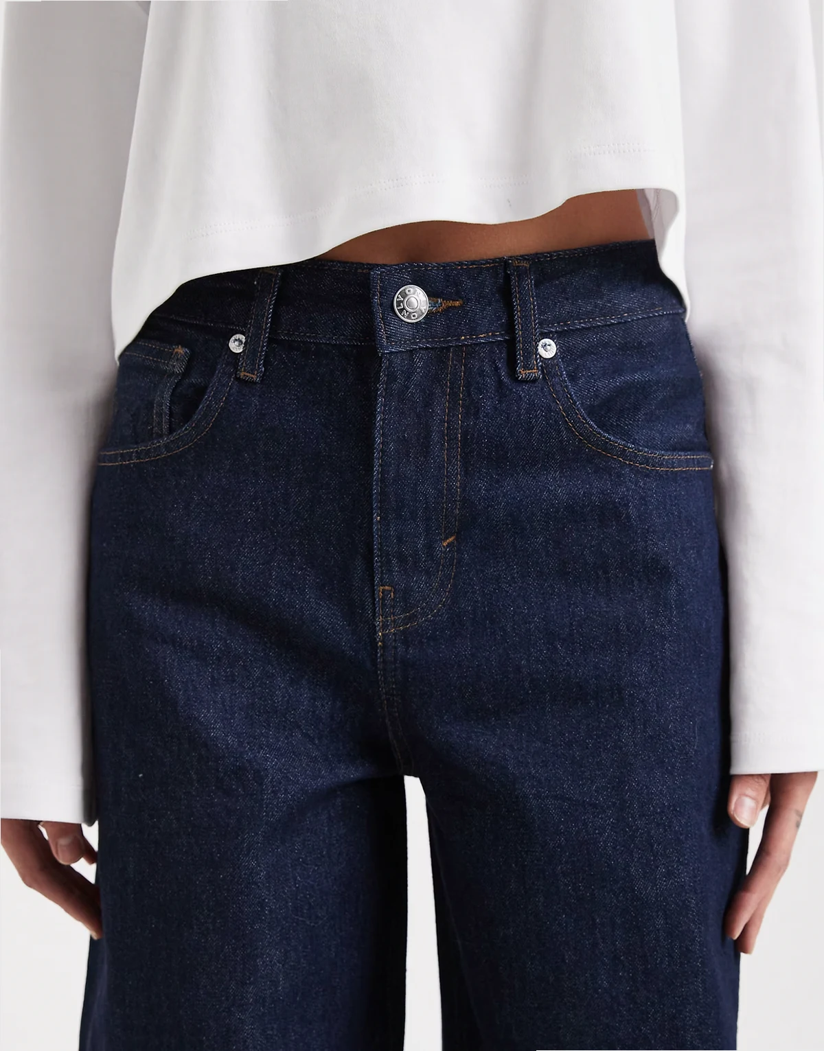 Denim ohne Stretchanteil: dunkelblaue Waschung