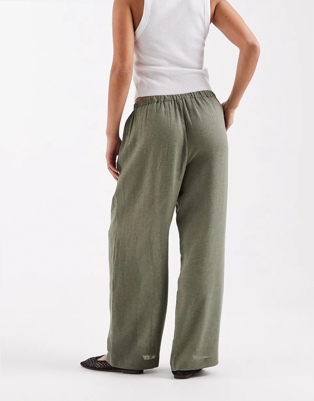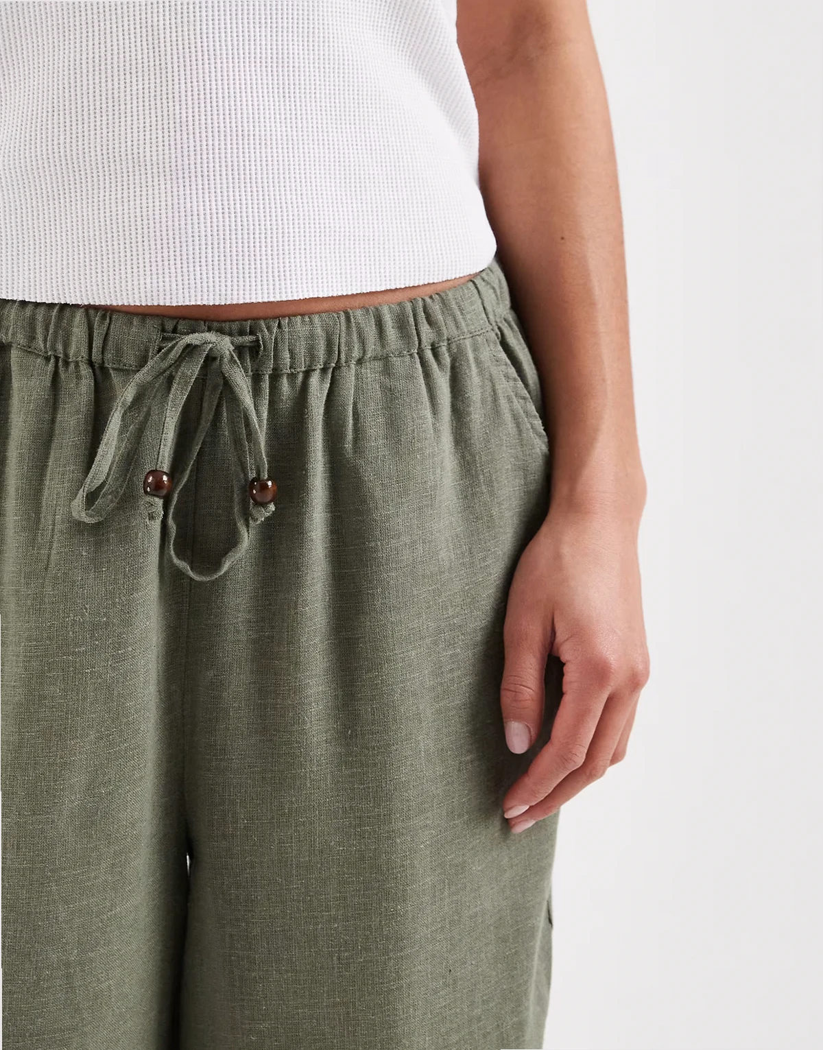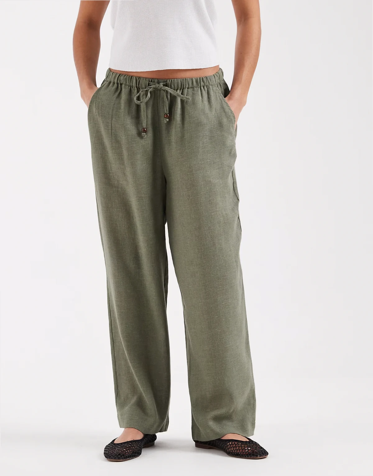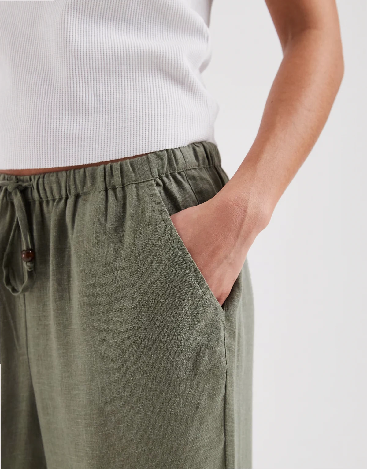– Hose aus Leinenmix in hellem Khaki mit weitem Bein