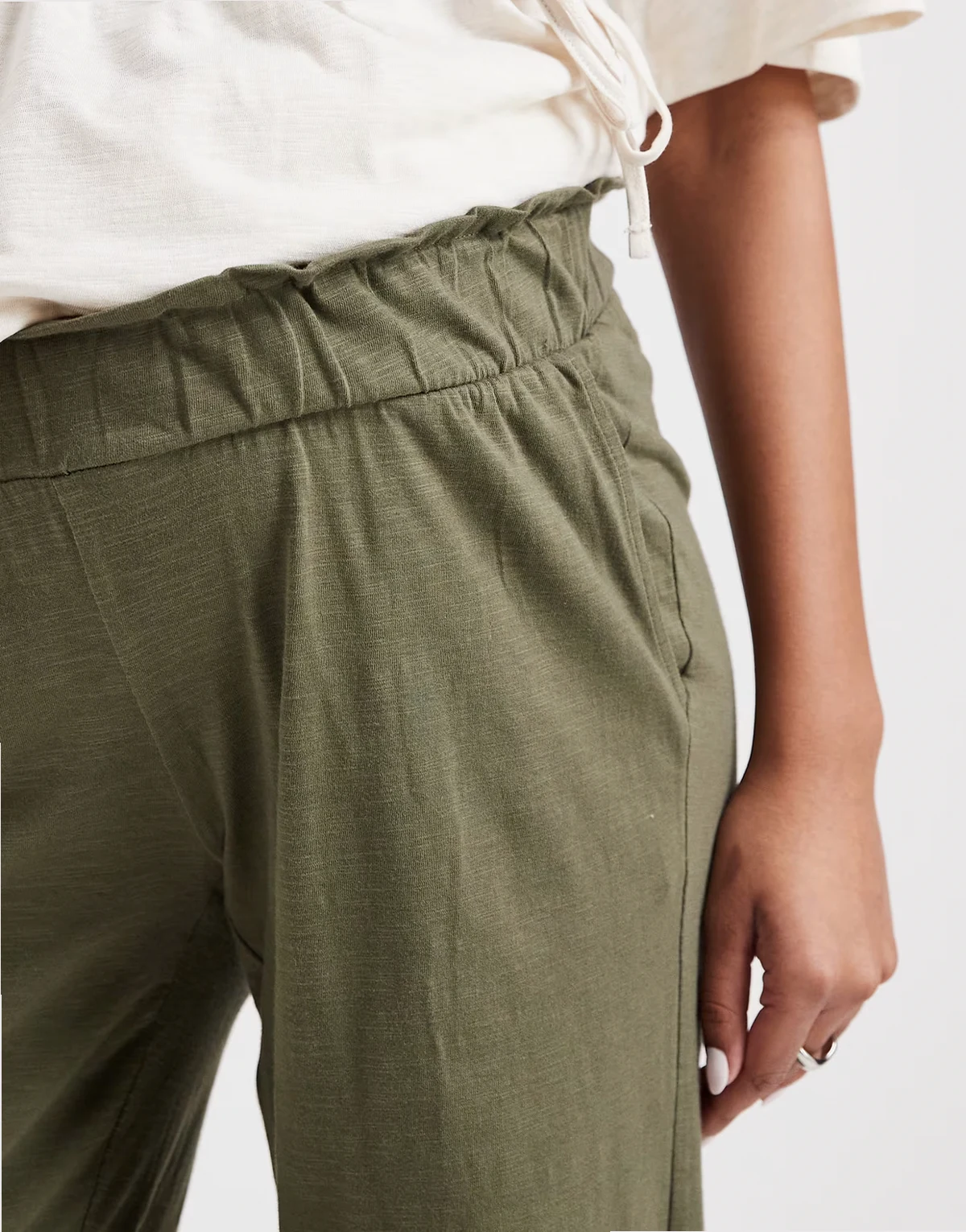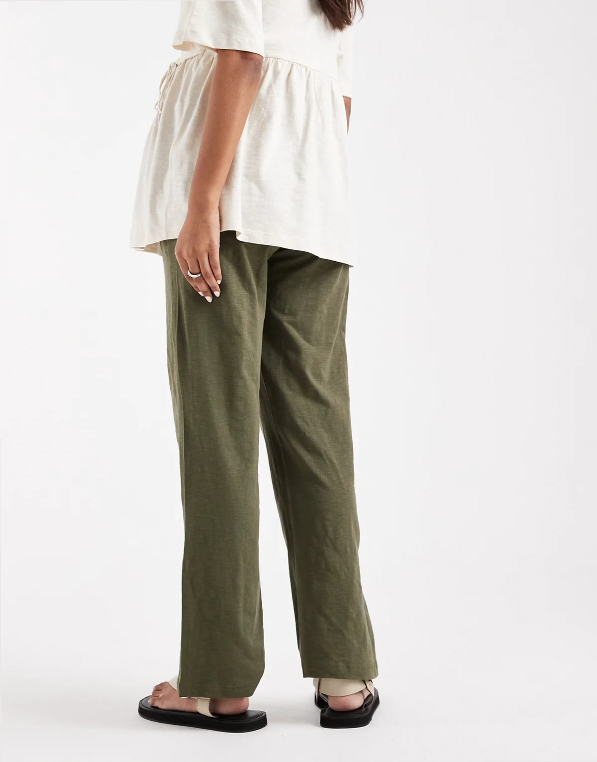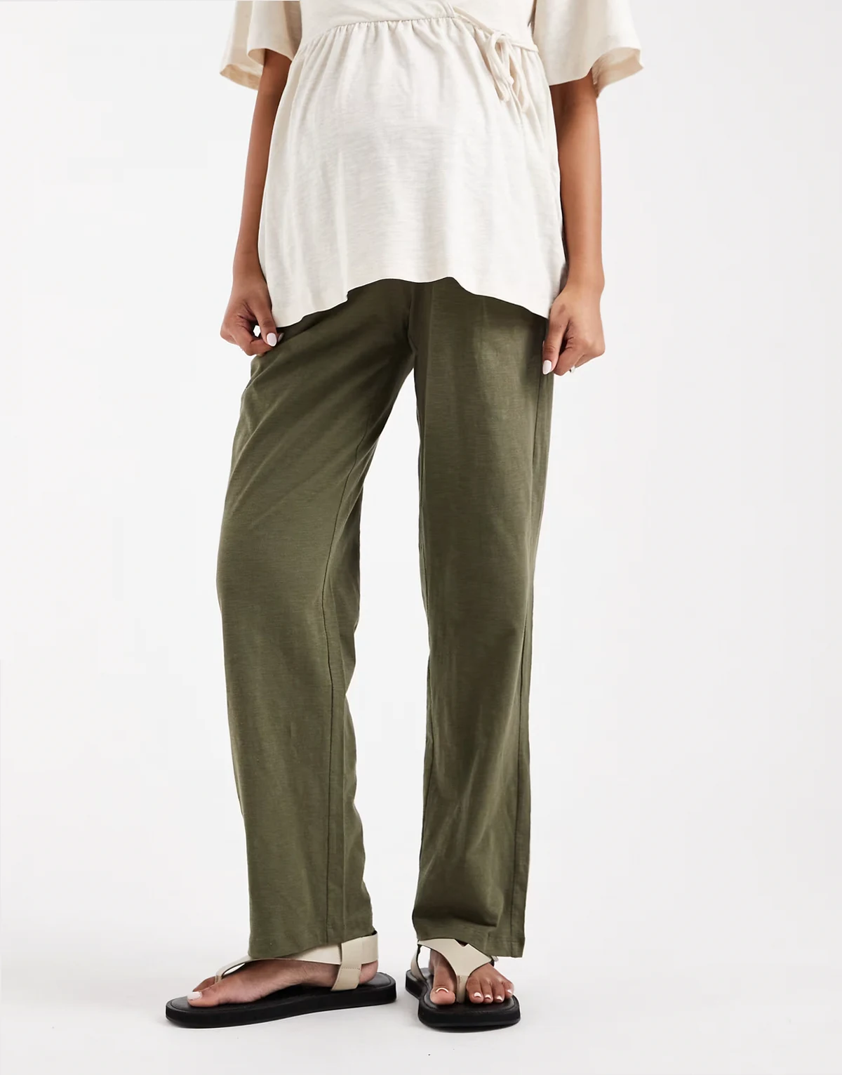 Maternity – Leichte Sommerhose in dunklem Khaki mit weitem Schnitt und Unterbauchbund
