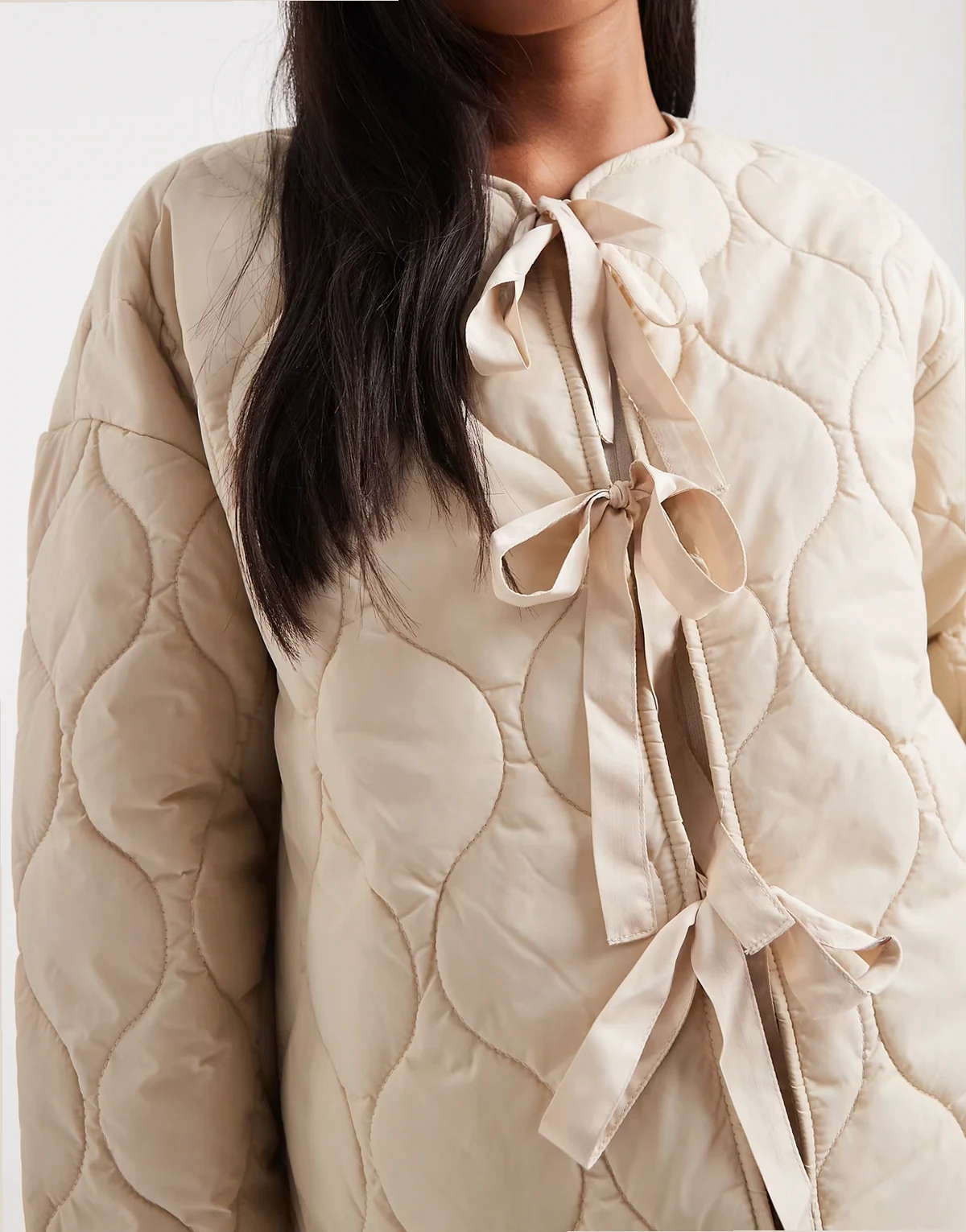 – Steppjacke in Haferbeige mit gebundener Vorderseite