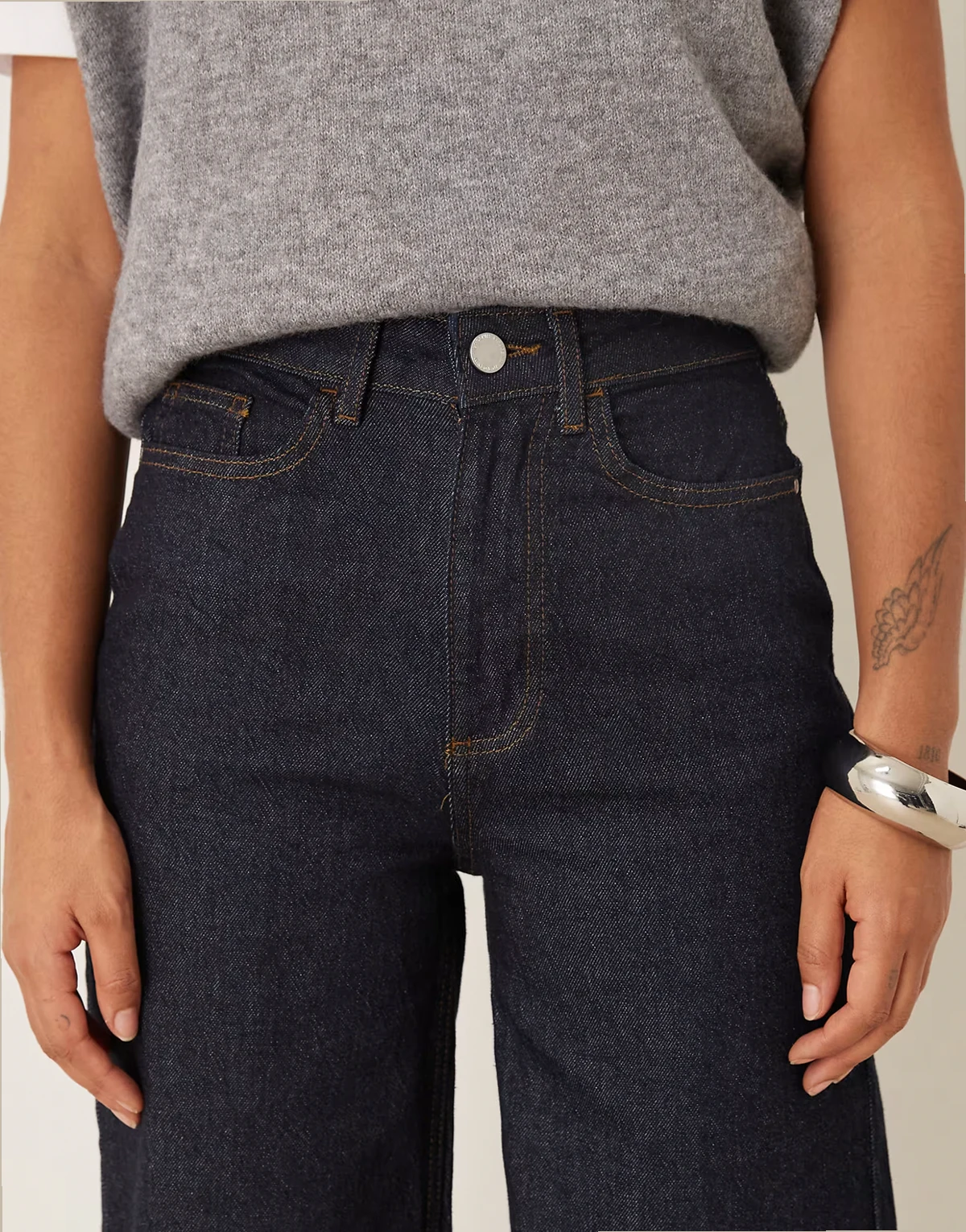 – Freya – Denim-Jeans in Dunkelblau mit hohem Bund und weitem Bein