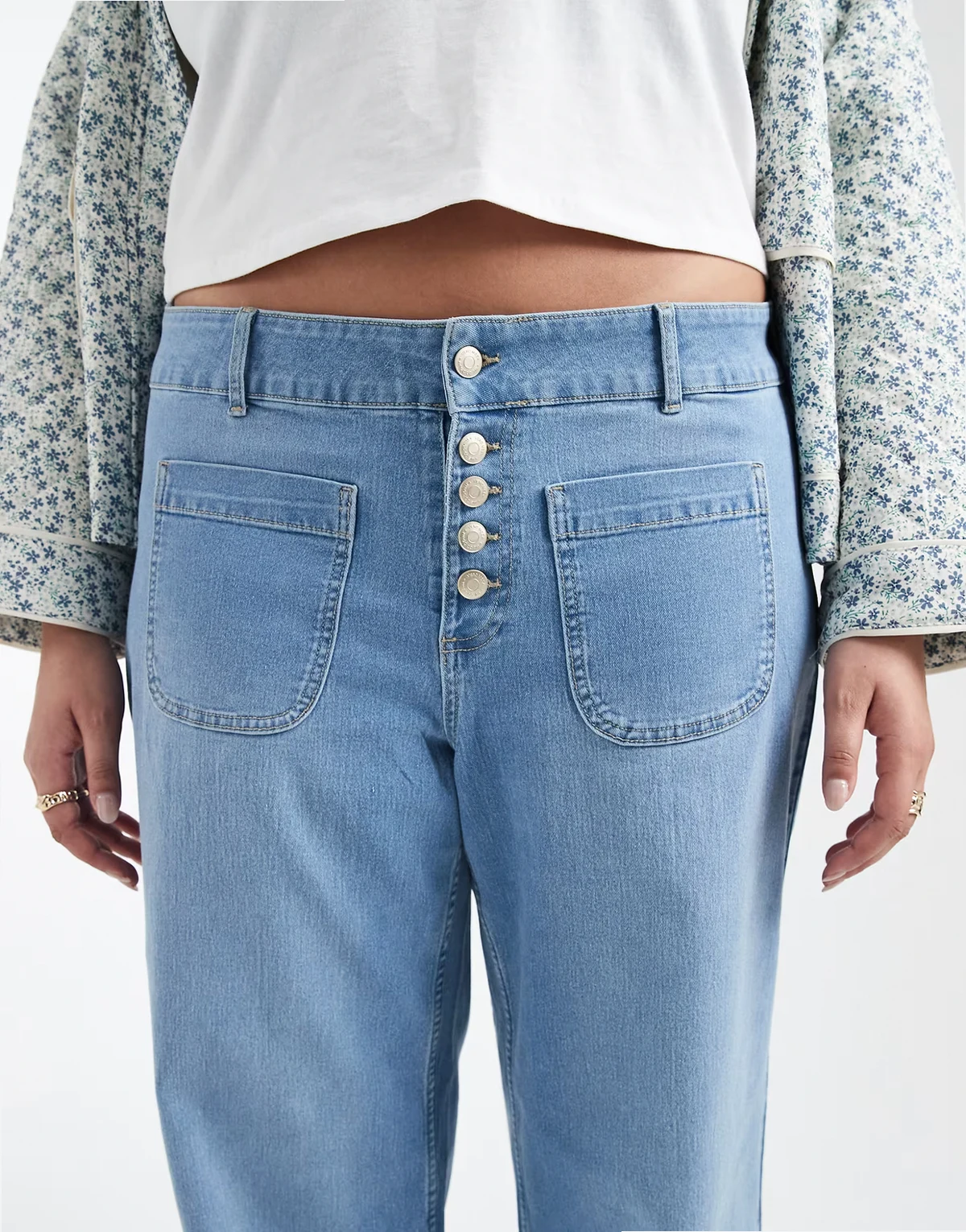 Jeansstoff ohne Stretchanteil: hellblaue Waschung