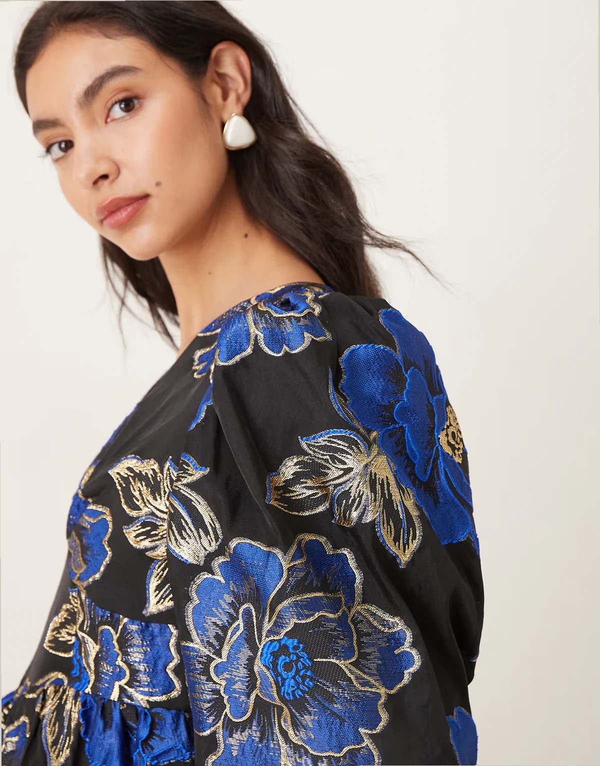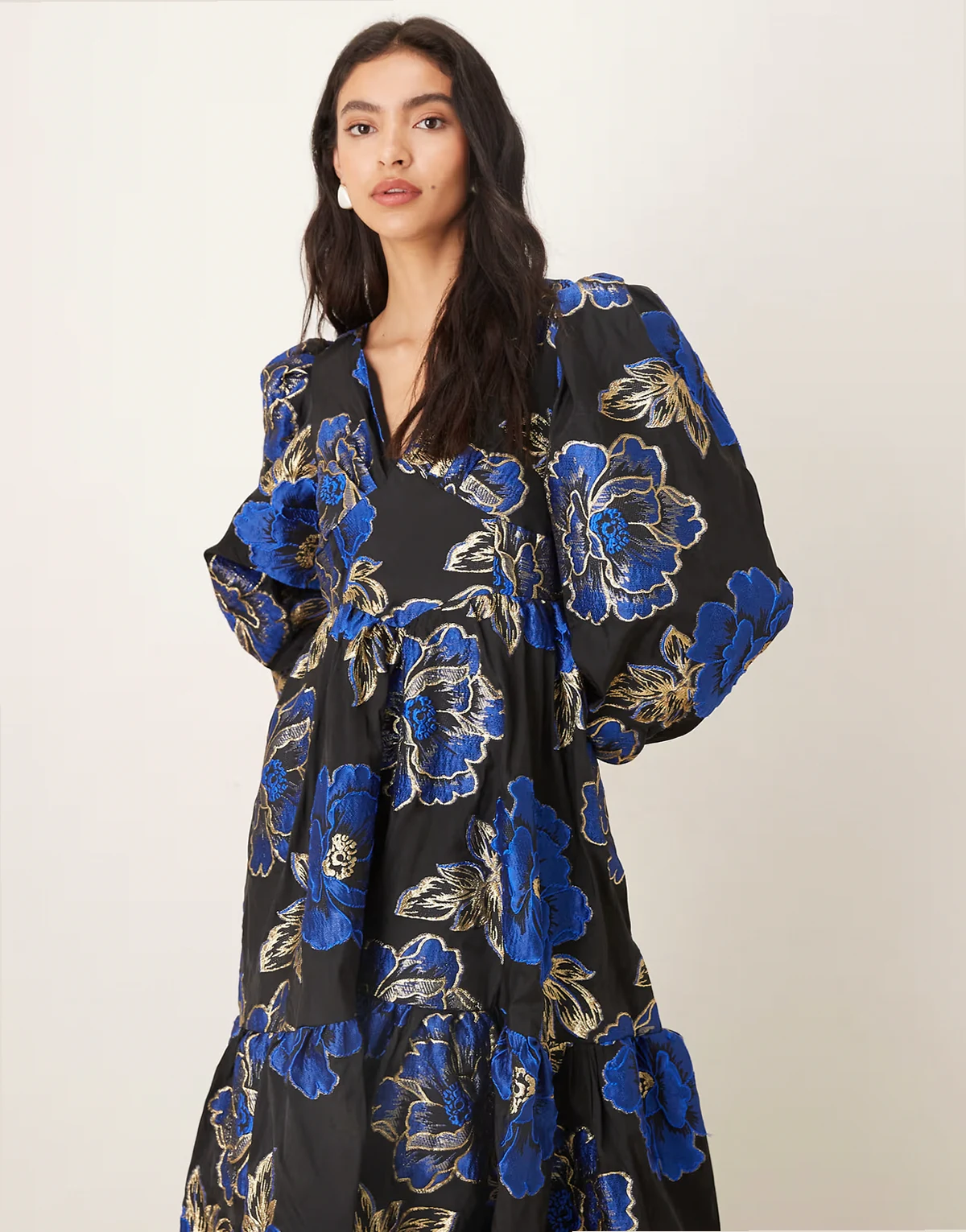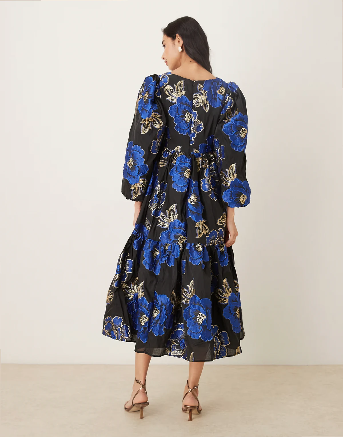 – Blues – Midikleid in Schwarz mit blauem Jacquard-Blumenmuster