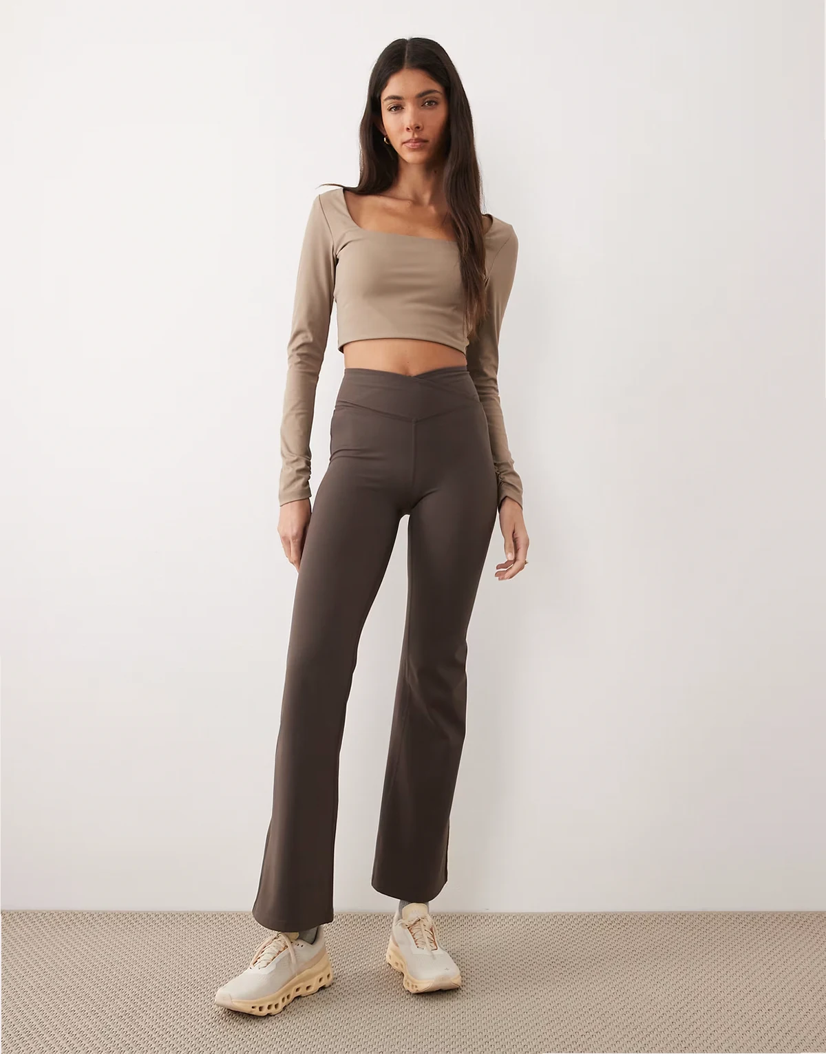 – Weiches, gerafftes Yoga-Trägertop in Mokkabraun