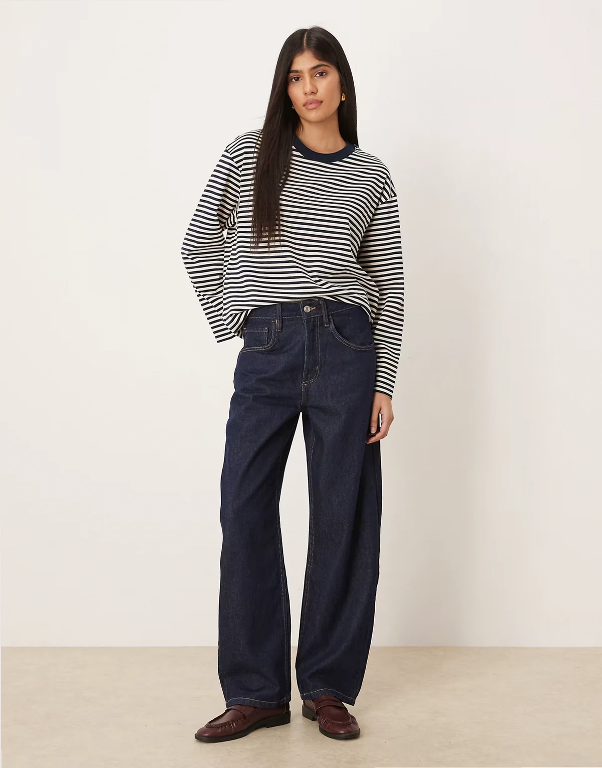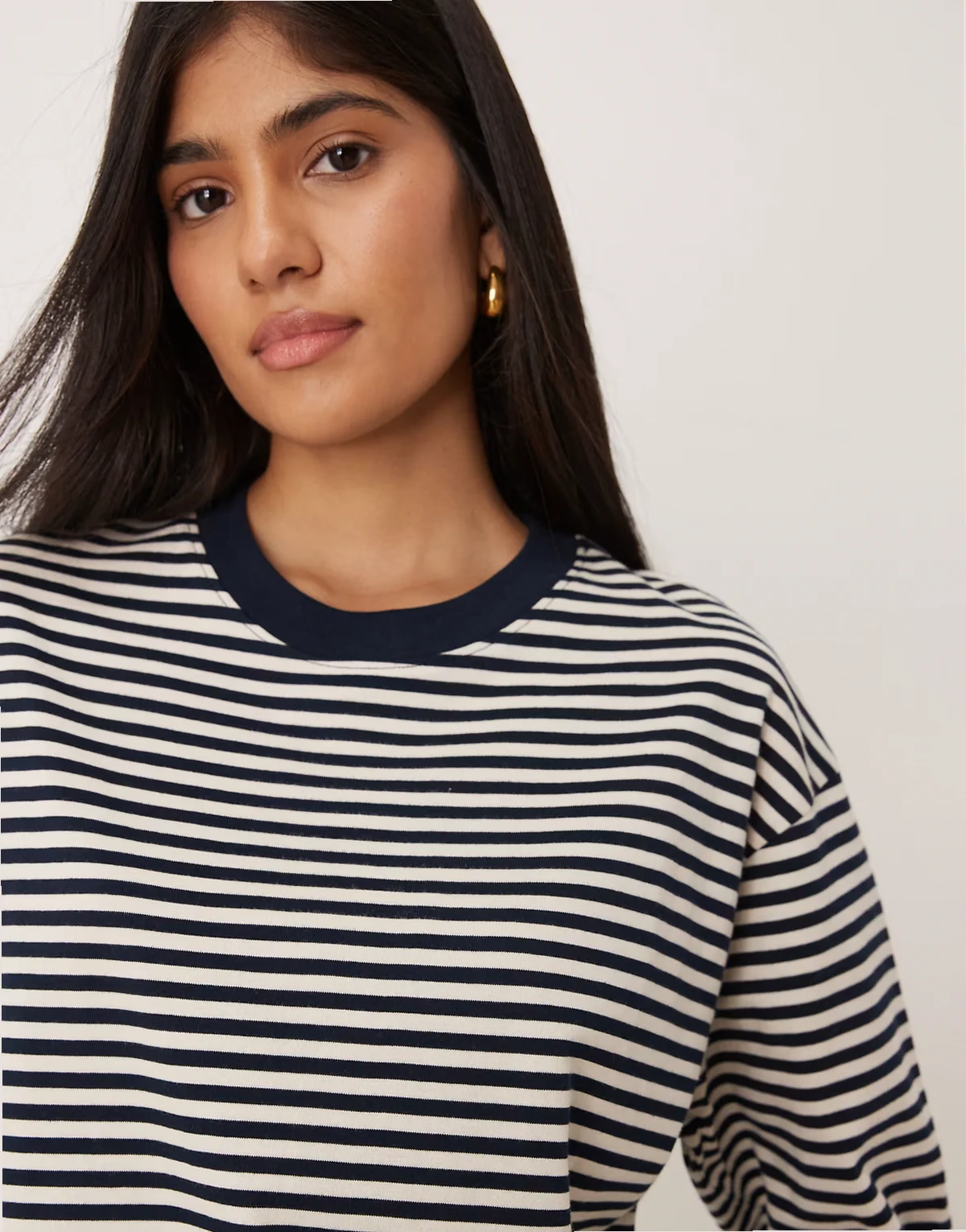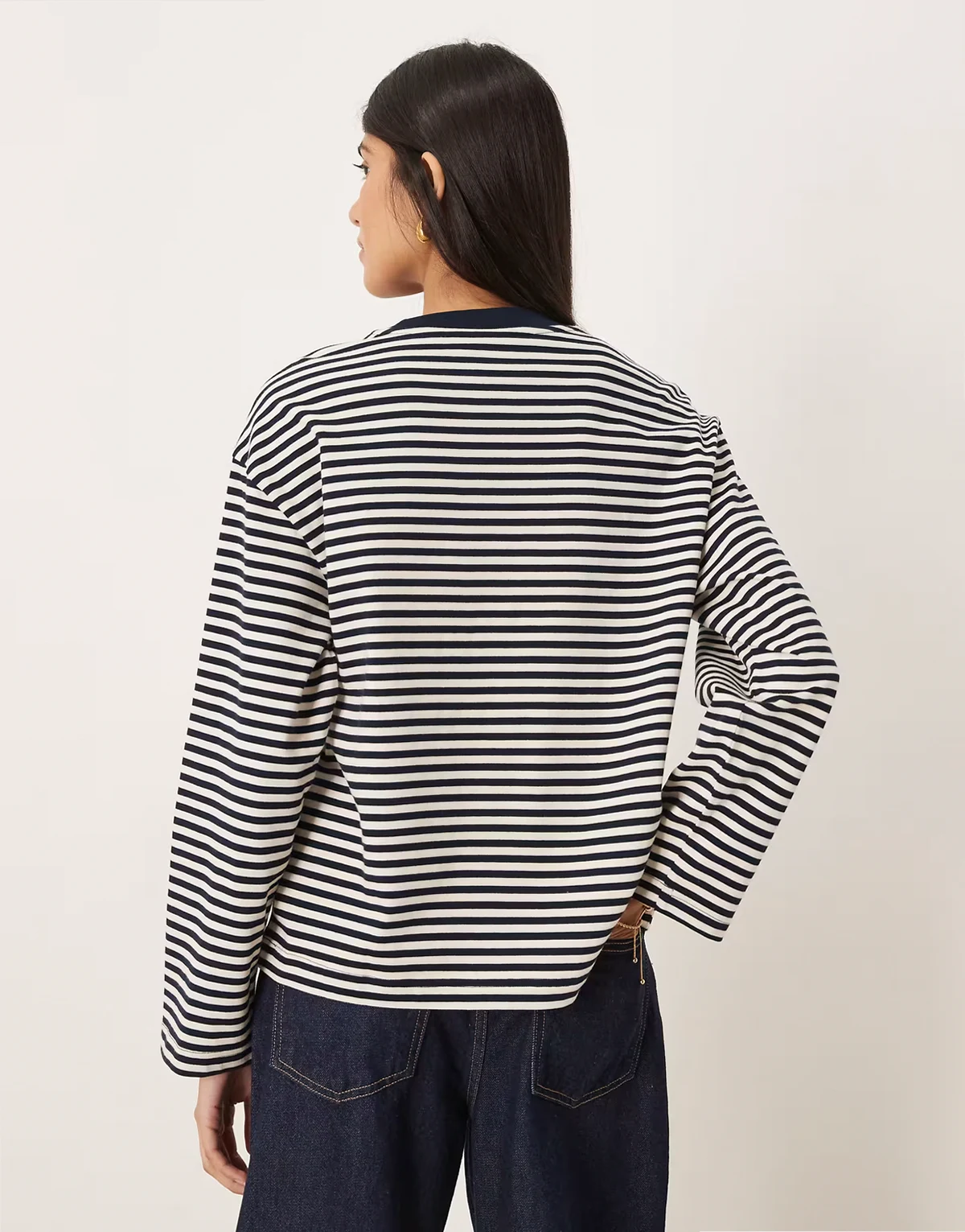 – Langärmliges Basic-Shirt aus reiner Baumwolle in Marineblau und Weiß gestreift