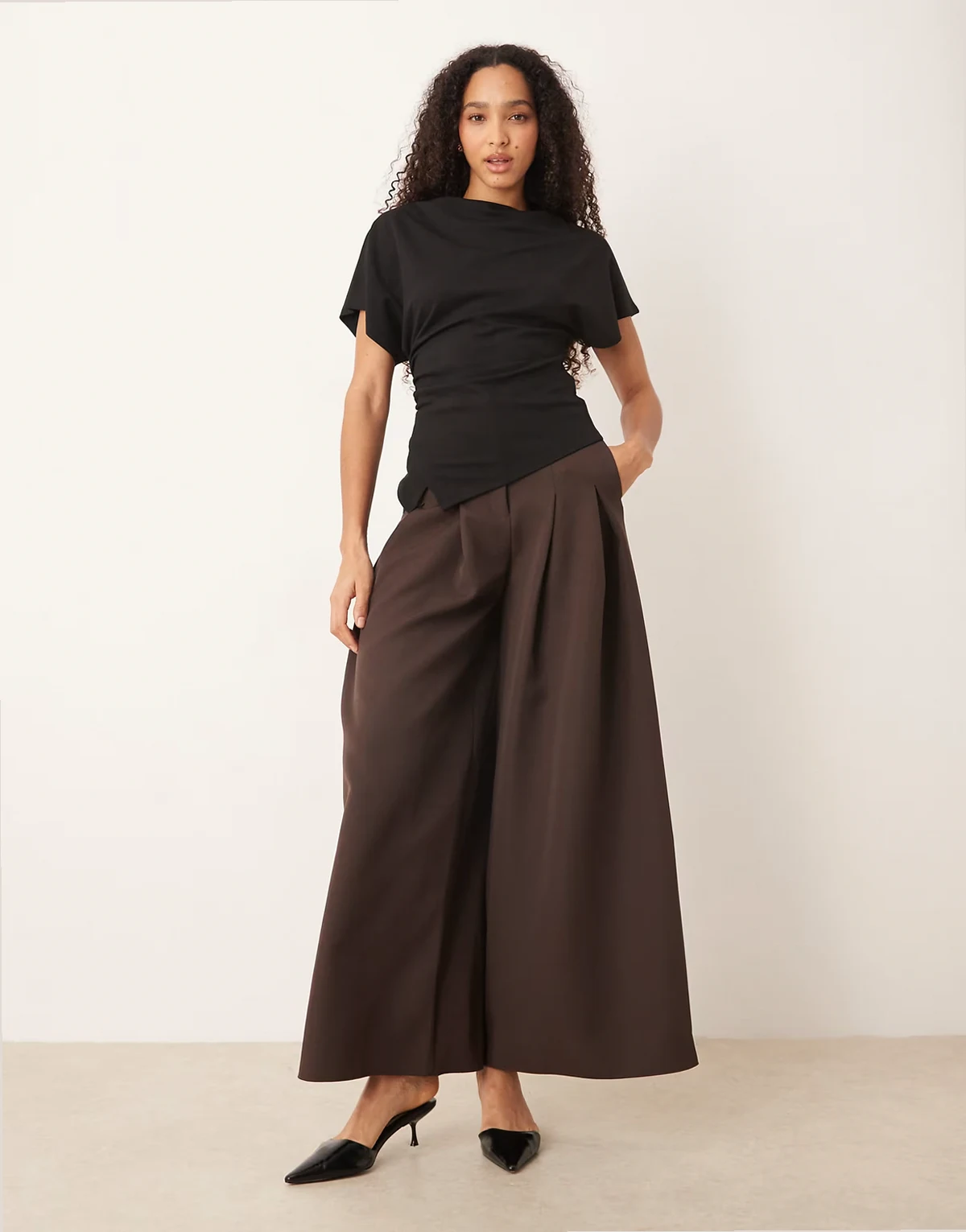 – Asymmetrisches, drapiertes Oberteil in Schwarz