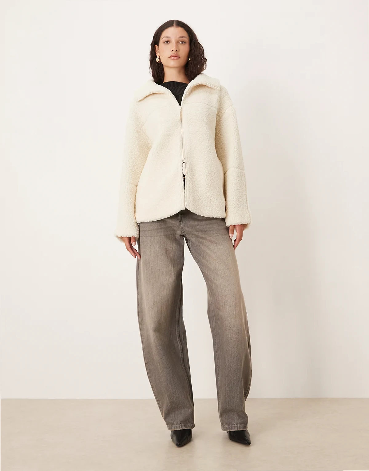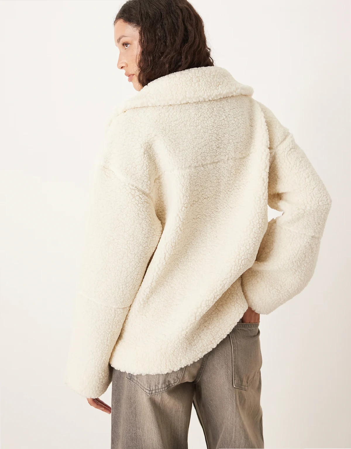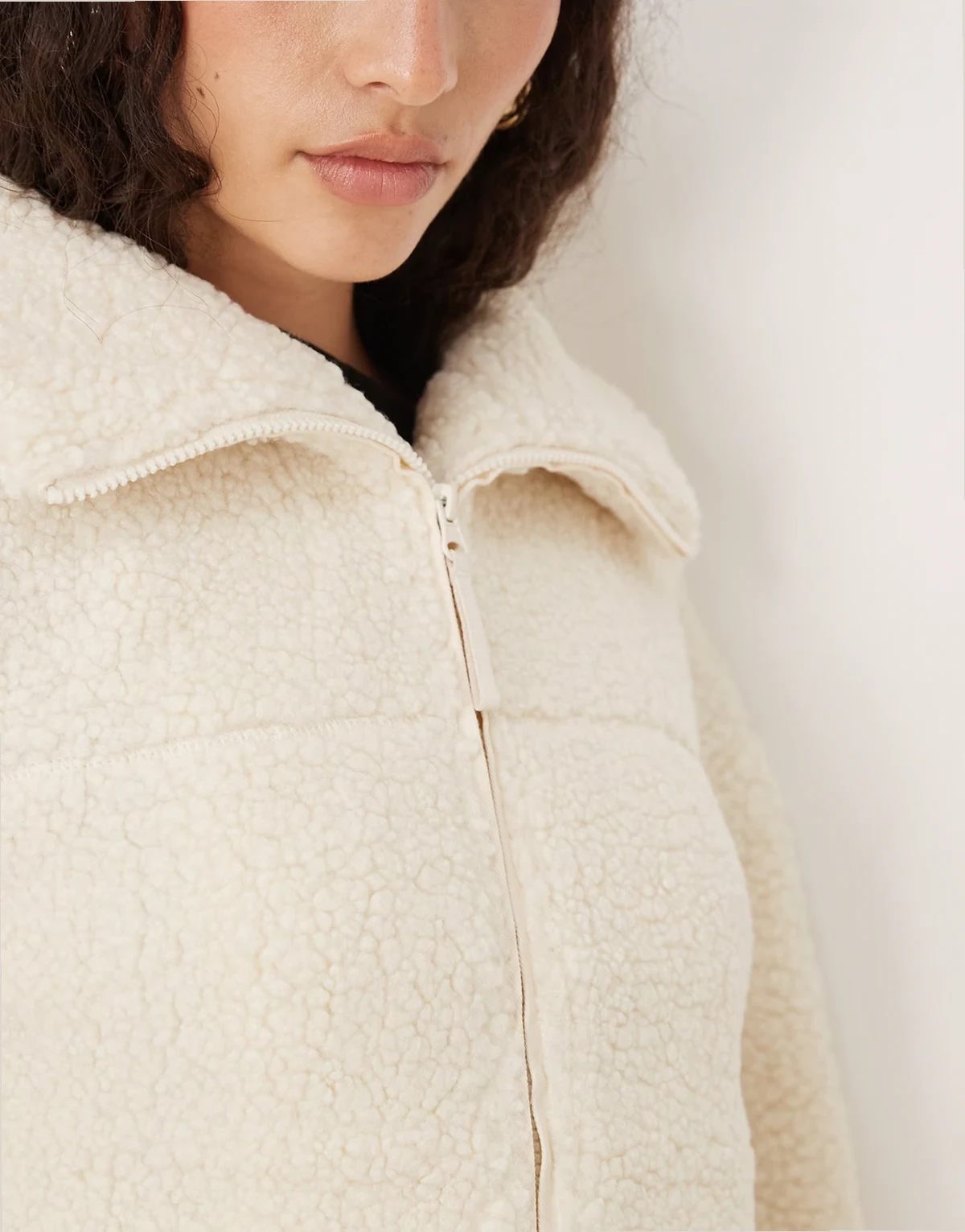 – Hemdjacke aus Teddyfell in Cremeweiß mit Reißverschluss