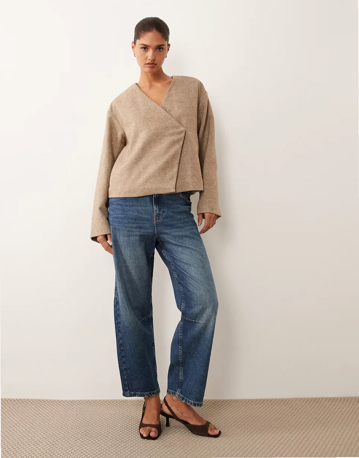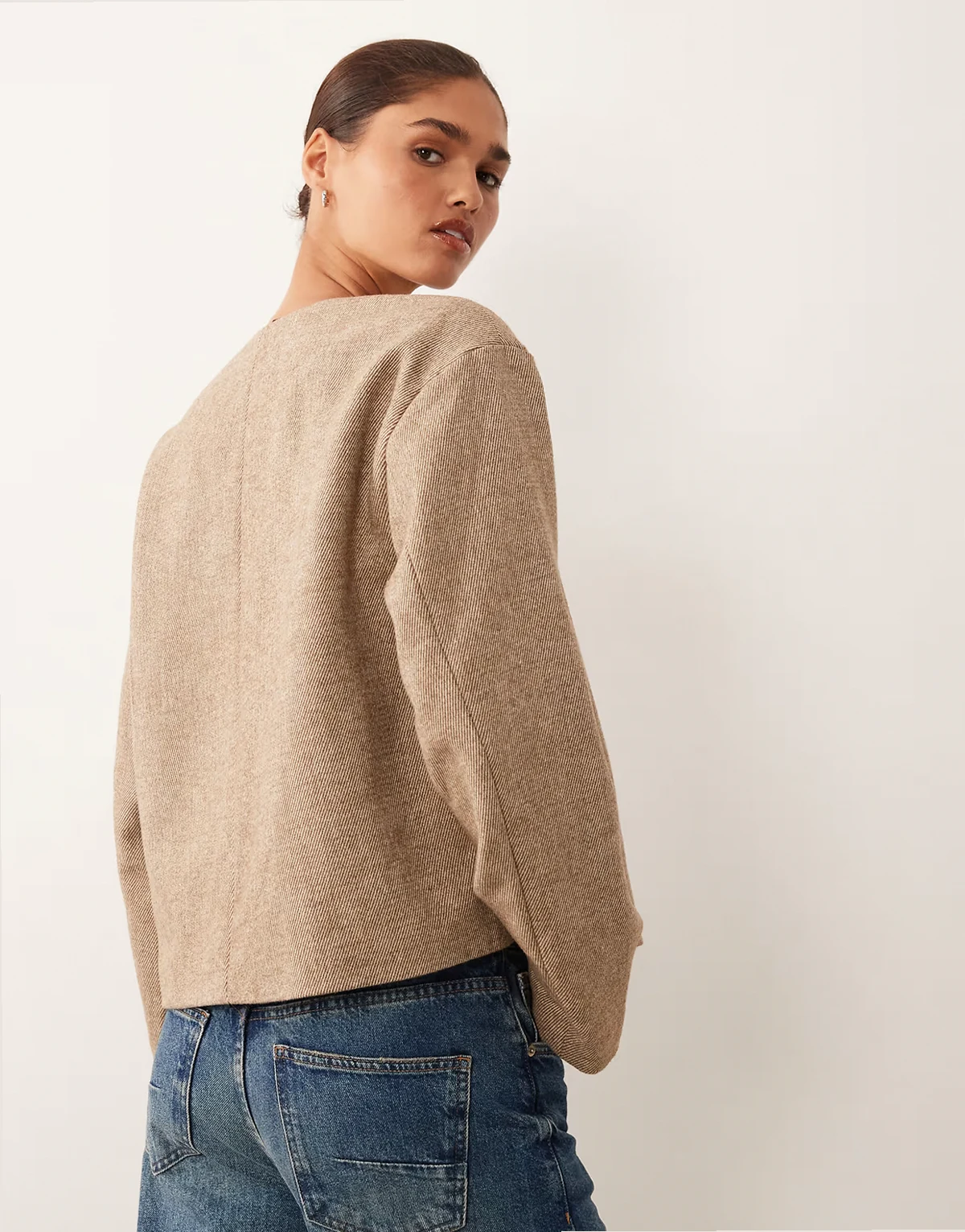 – Kurze Jacke in Toasted Coconut mit asymmetrischem Design