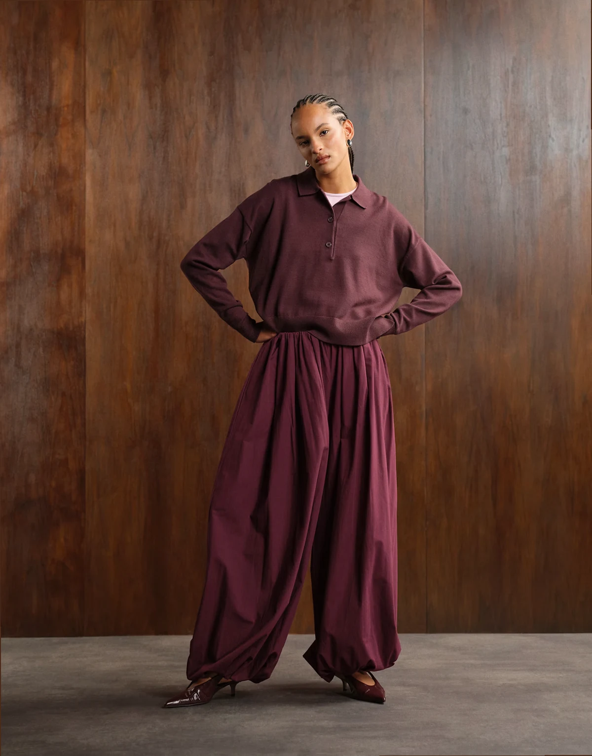 – Ballonhose aus Baumwolle in Pflaume