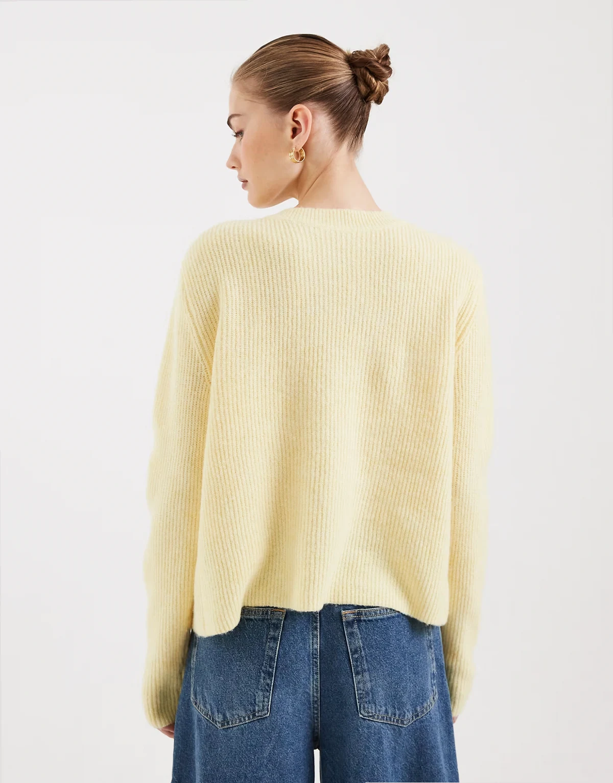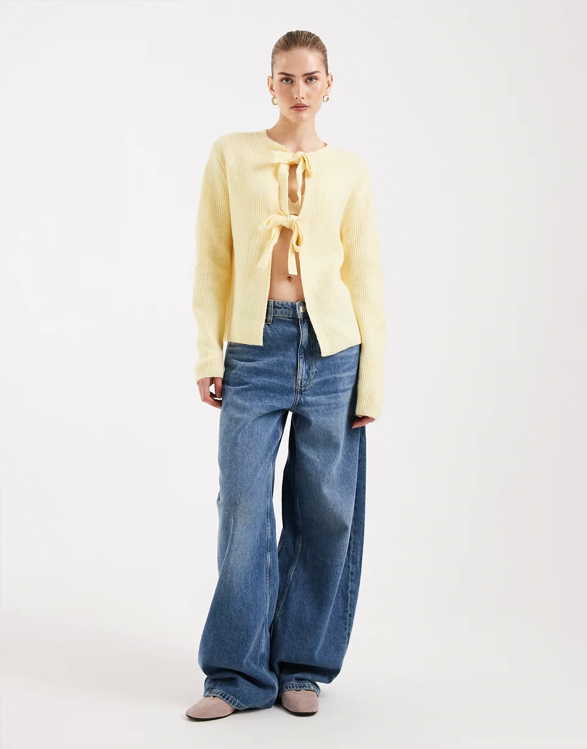 – Wendbare Strickjacke in Blassgelb mit gebundener Vorderseite