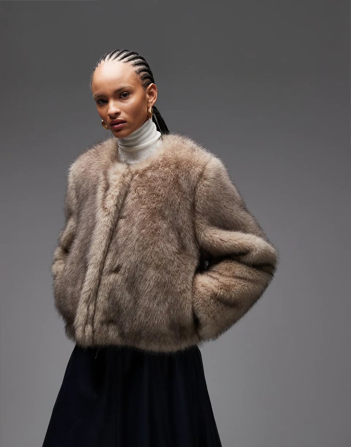 – Cropped-Fit-Jacke aus Kunstpelz in Beige