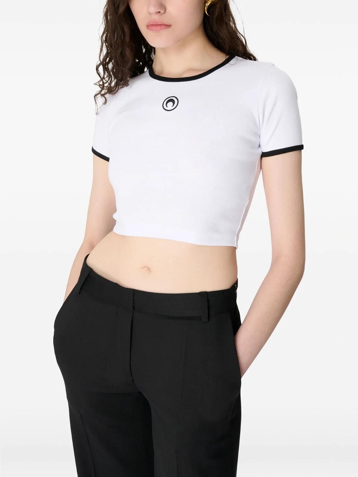 – Schweres, langärmliges kastiges T-Shirt in Schwarz und Weiß mit Streifen