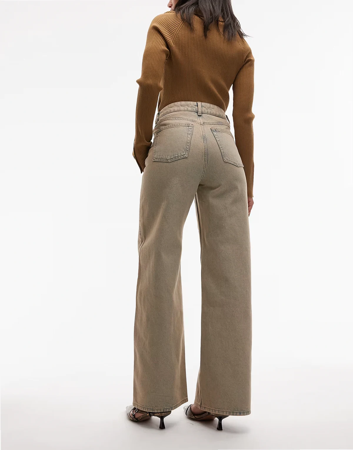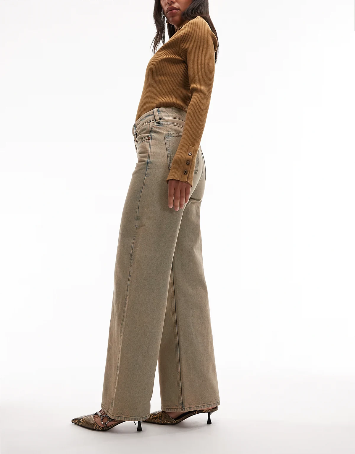 – Gio – Locker geschnittene Jeans in überfärbtem Beige mit mittelhohem Bund und weitem Bein