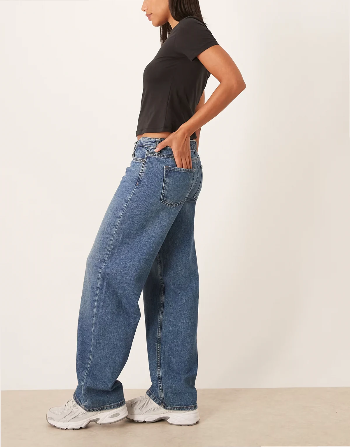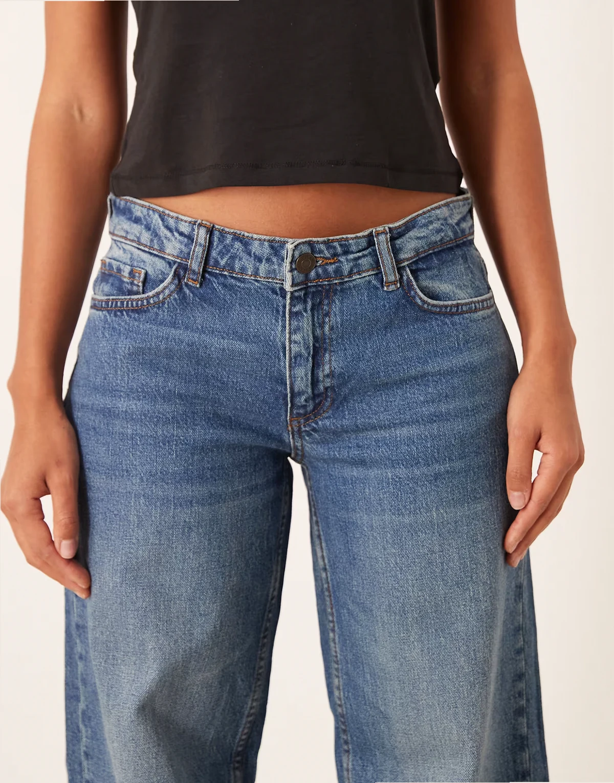 – Jeans in Mittelblau mit geradem Bein und niedrigem Bund